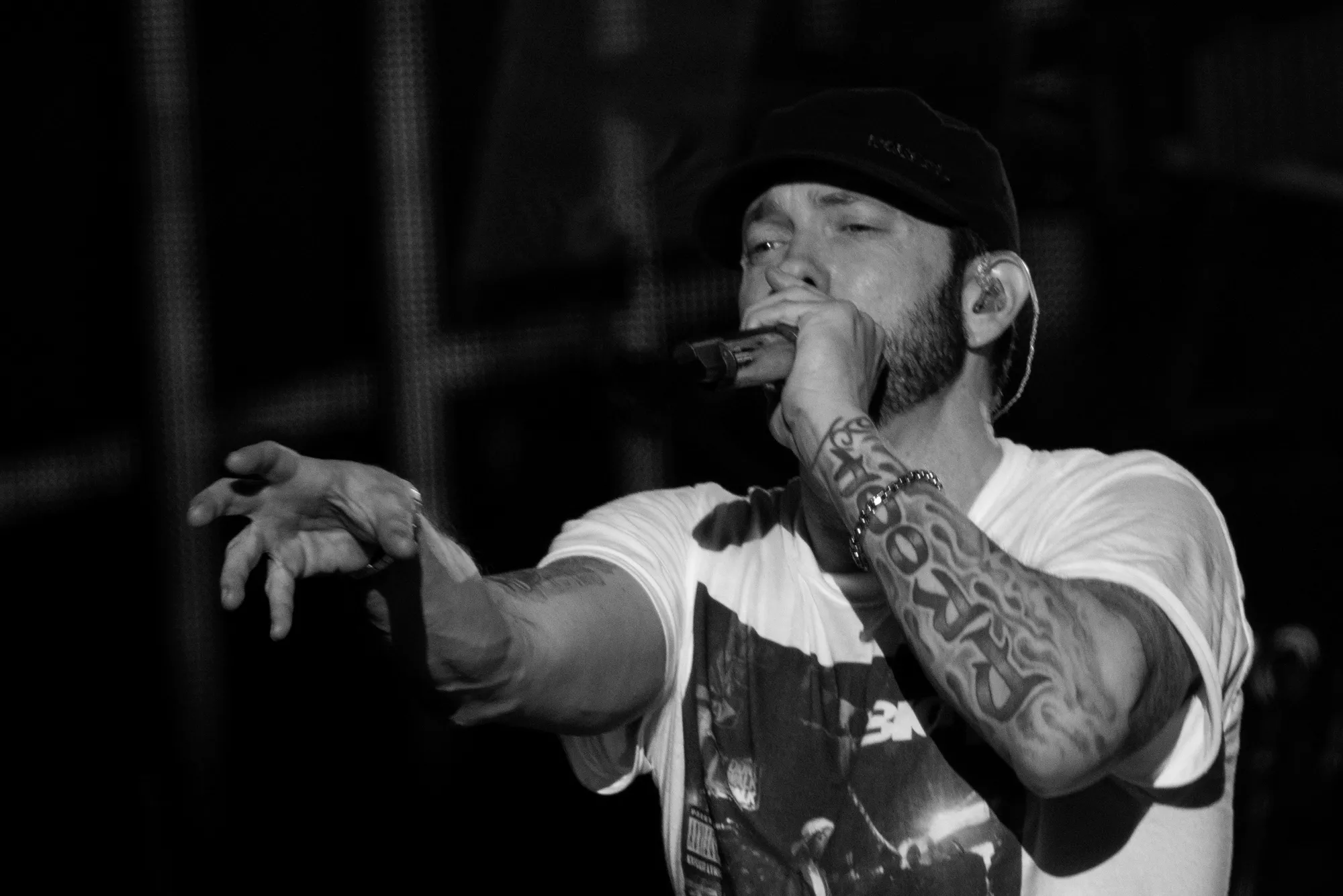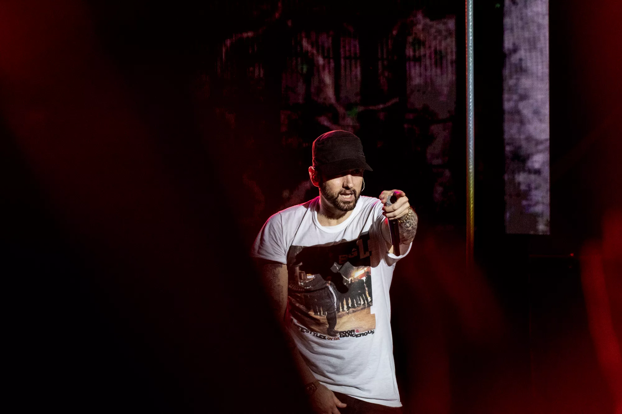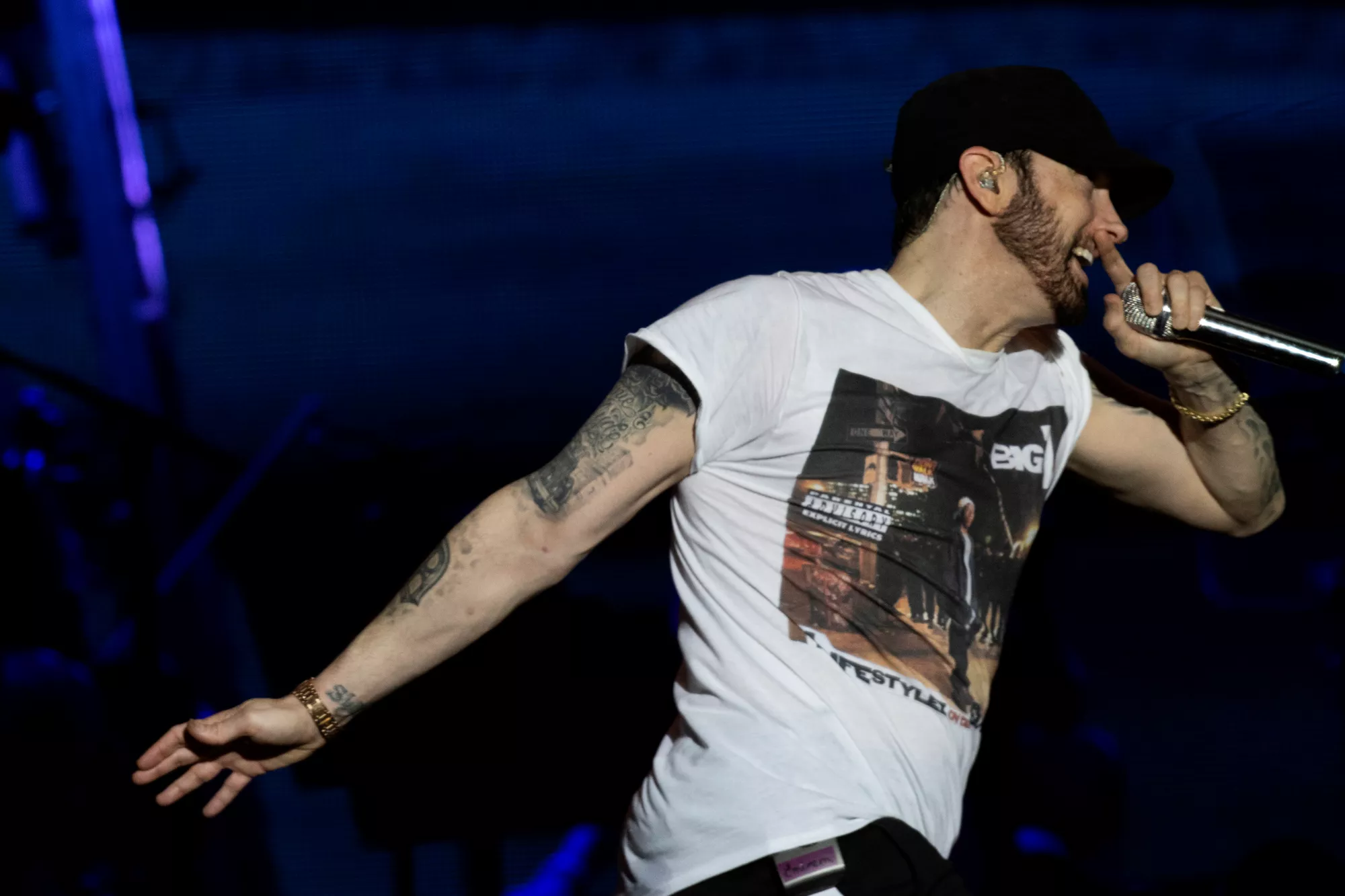 Det eneste, der hang tungere i luften end det ubarmhjertige urinstøv, var forventningen til koncerten 22:30, hvor Marshall Bruce Mathers langt, langt, langt om længe kunne stemple ind på dansk jord og levere The Eminem Show. Der kan skrives bøger
