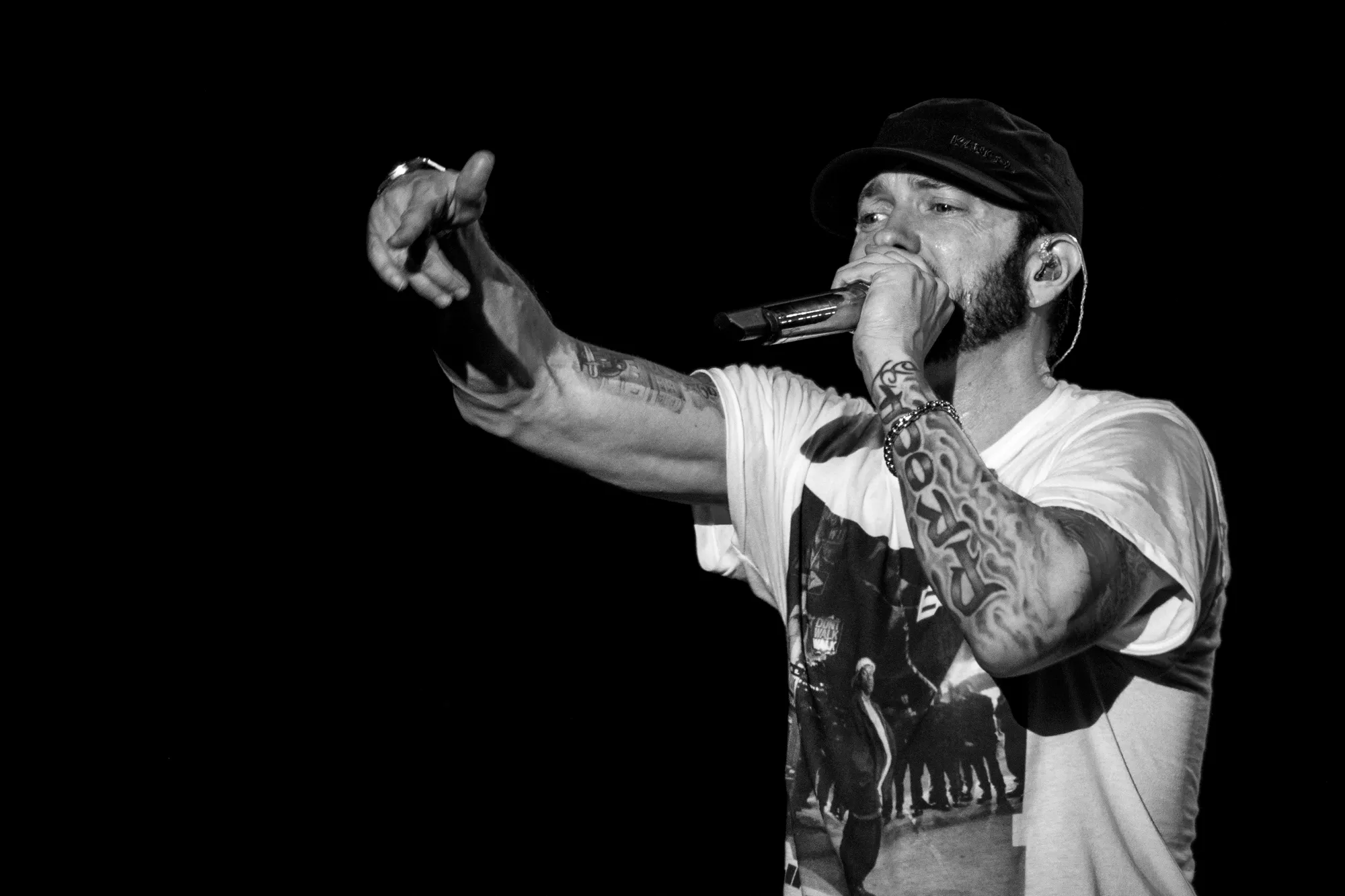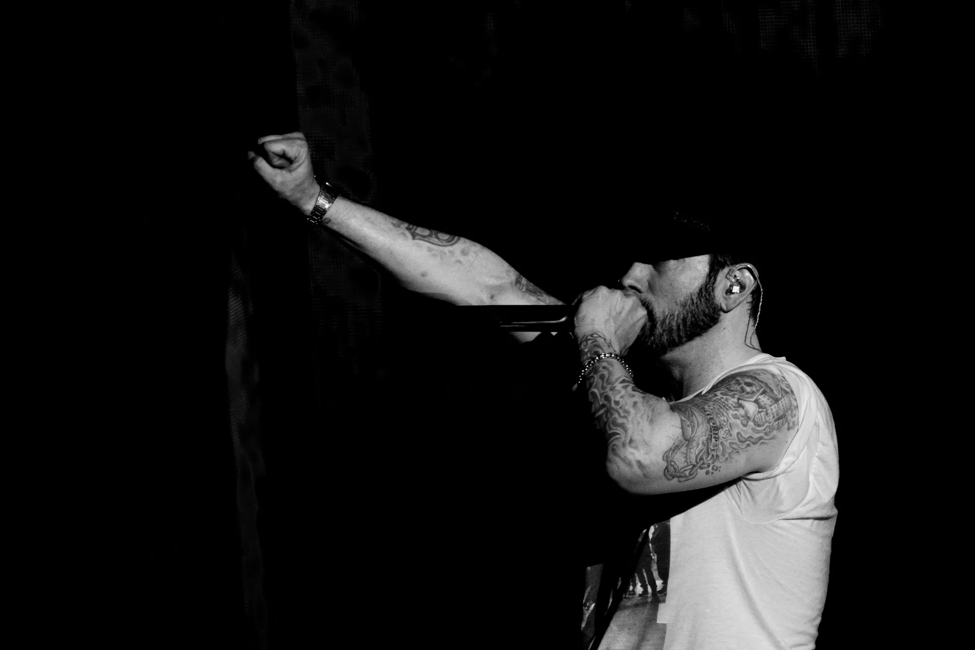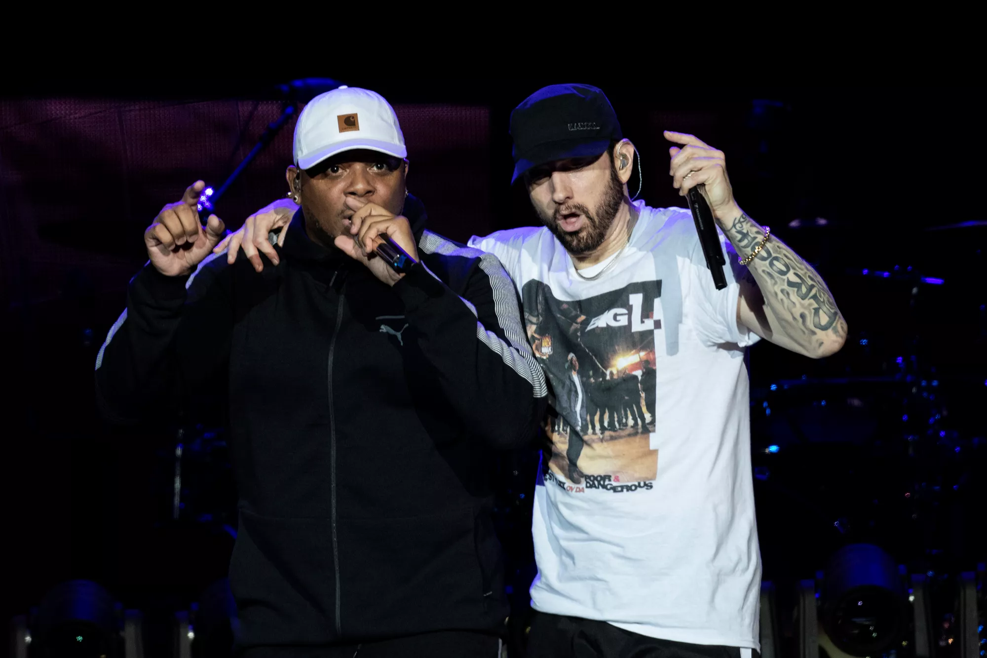 Det eneste, der hang tungere i luften end det ubarmhjertige urinstøv, var forventningen til koncerten 22:30, hvor Marshall Bruce Mathers langt, langt, langt om længe kunne stemple ind på dansk jord og levere The Eminem Show. Der kan skrives bøger