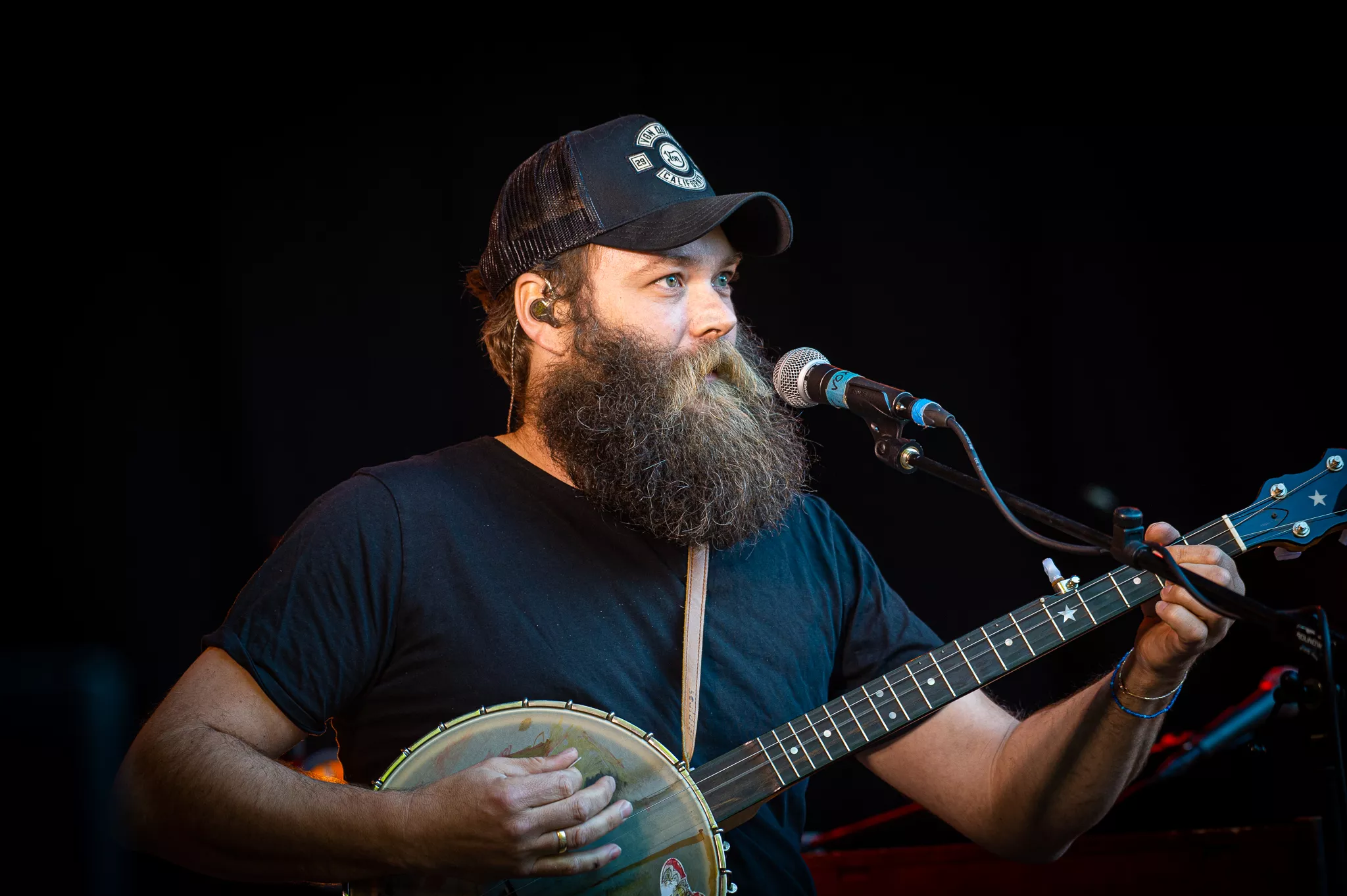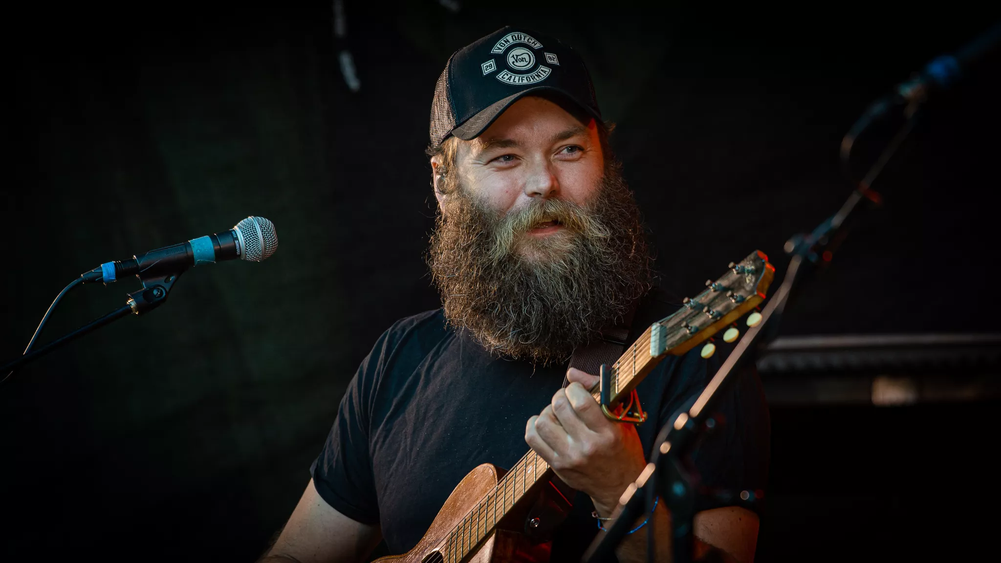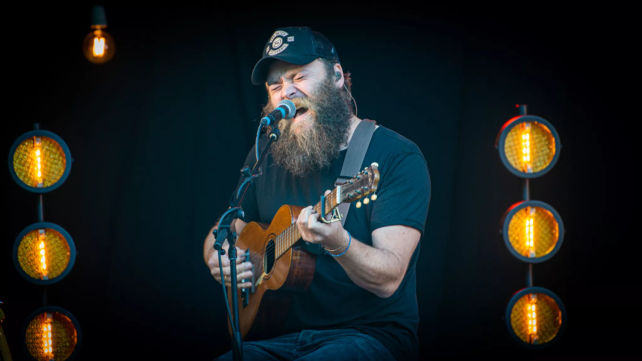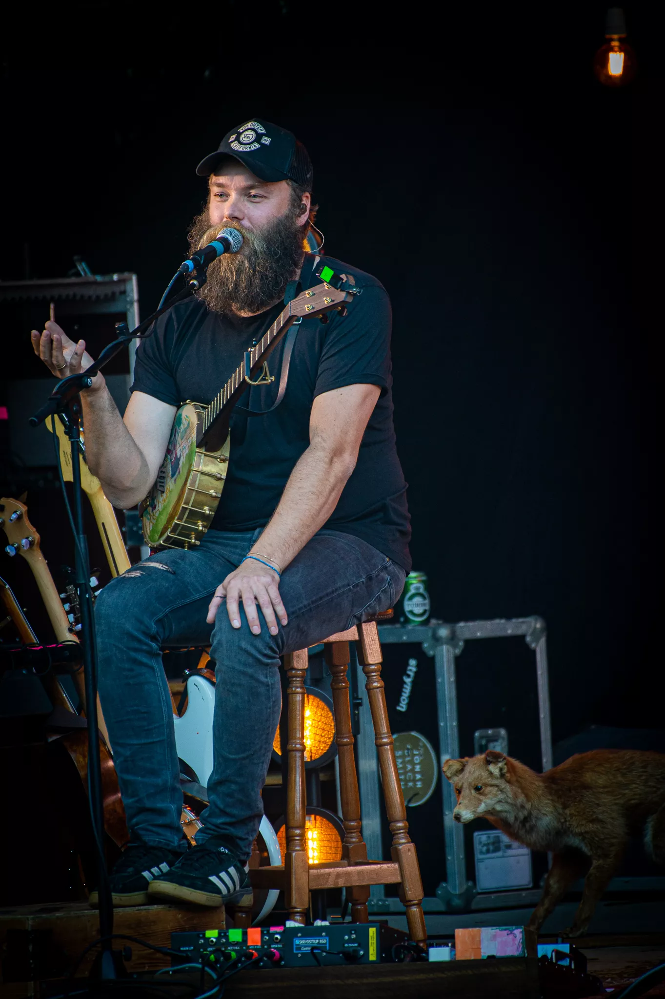Folk- og countrybandet fra Thy, Jonah Blacksmith, gæstede fredag aften ”De Grimmeste Aftner”. Scenen foran de dybgrønne træer skabte rum for en stund på en lun midsommeraften i Brabrand. Dog var bandets vanlige syvmandsbesætning skåret ned til tre.