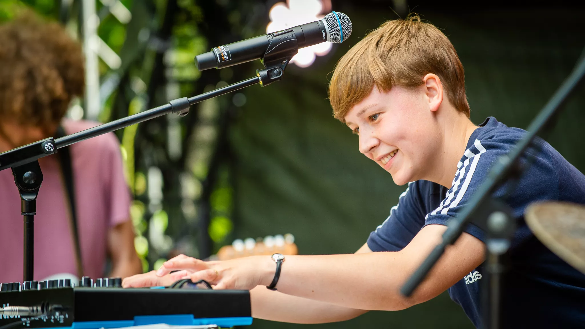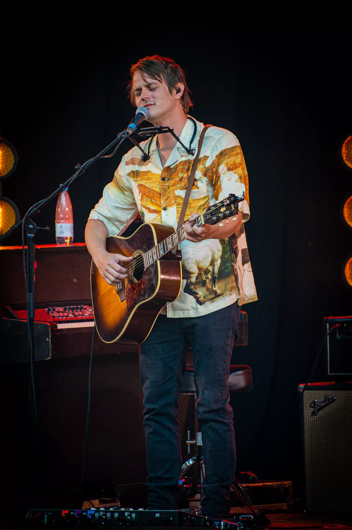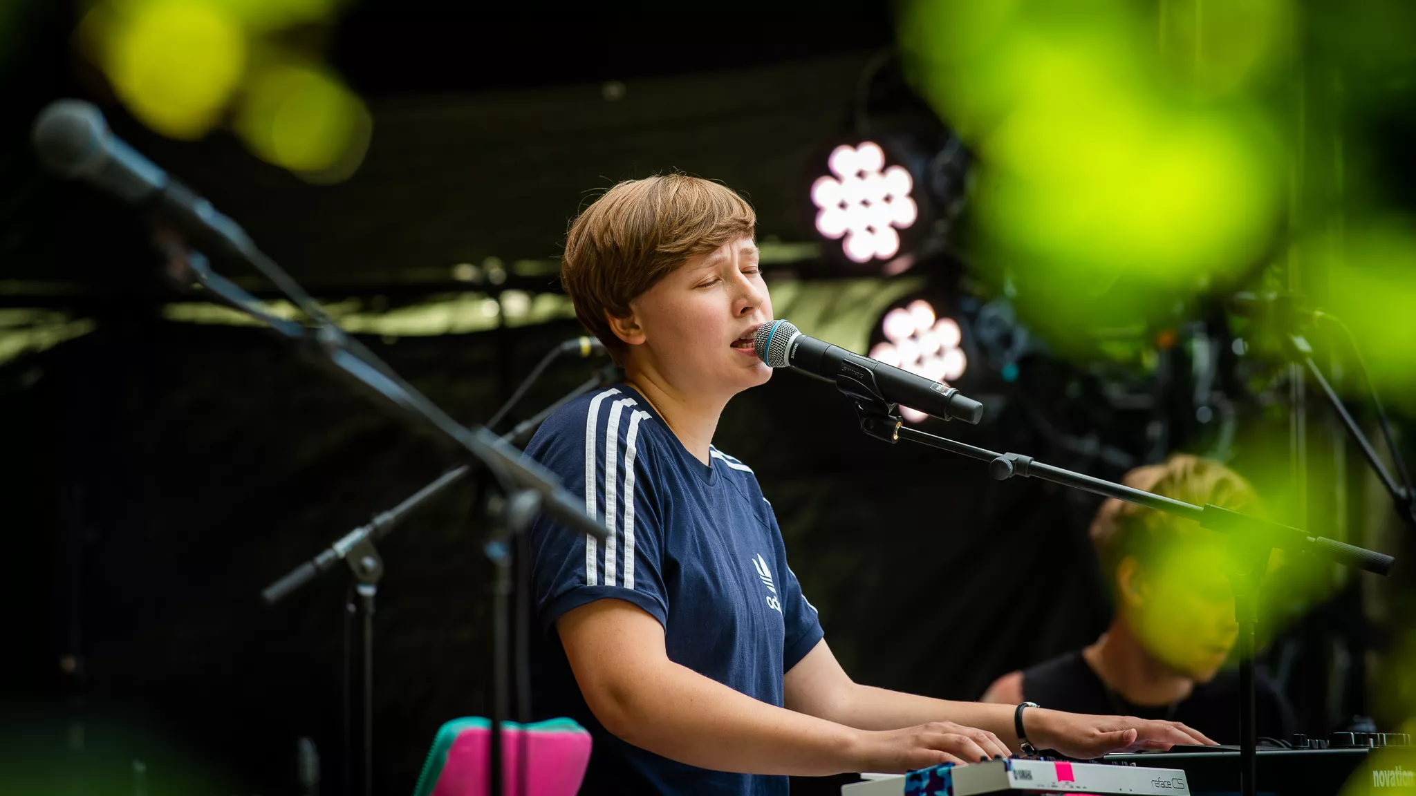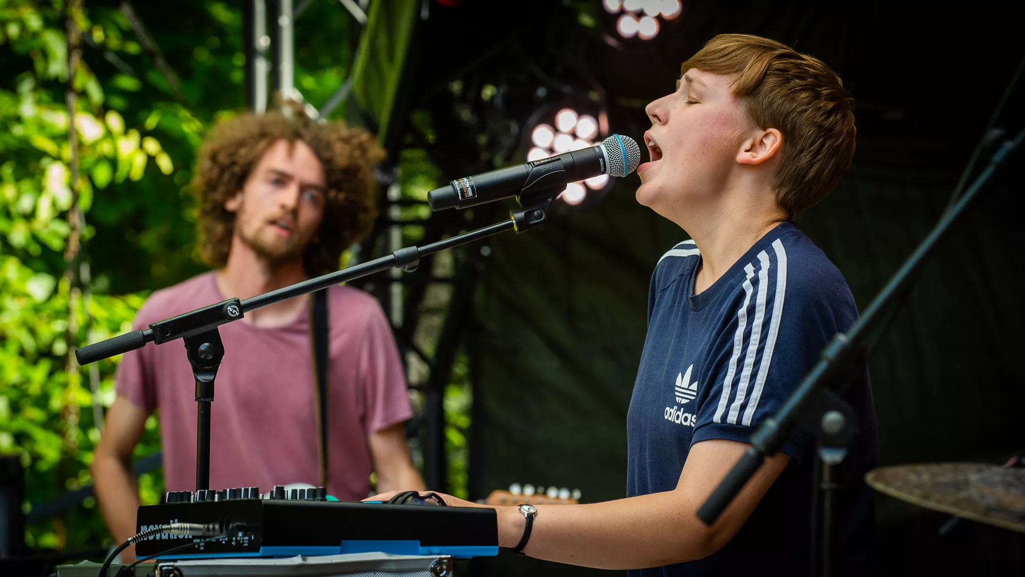 Folk- og countrybandet fra Thy, Jonah Blacksmith, gæstede fredag aften ”De Grimmeste Aftner”. Scenen foran de dybgrønne træer skabte rum for en stund på en lun midsommeraften i Brabrand. Dog var bandets vanlige syvmandsbesætning skåret ned til tre.