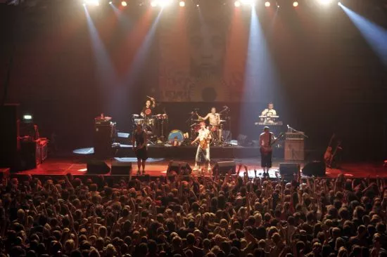 Foran et tændt publikum på en lørdag aften, hvor selv fodboldfolket lige så godt kunne synge på spansk, lå den lige til højrebenet for Manu Chao og hans orkester. Og vanen tro fik den omgående på alle tangenter med opspeedet skarock af den særlige slags, som gør sig så charmerende på studiepladerne,