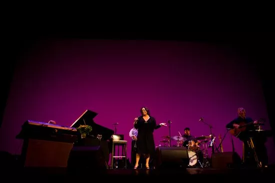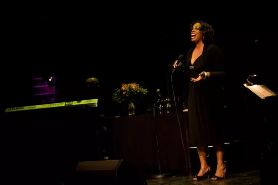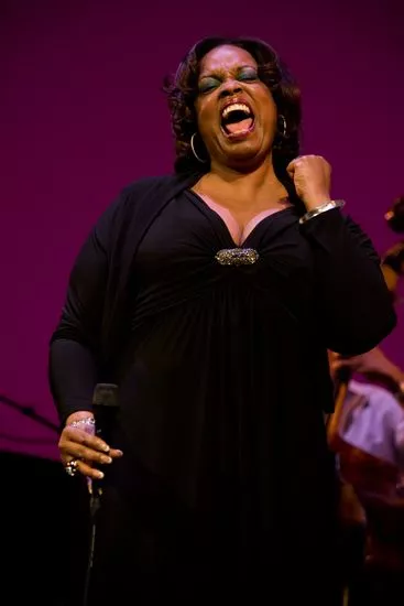 Når man sidder et stykke fra scenekanten, kan man momentant foranlediges til at tro, at det er talkshowdronningen Oprah Winfrey, der er kommet ind på Gl. Scene. Dianne Reeves har nemlig nogenlunde samme kulør, samme alder, samme statur, samme kropssprog, samme aura. Men når Dianne Reeves begynder