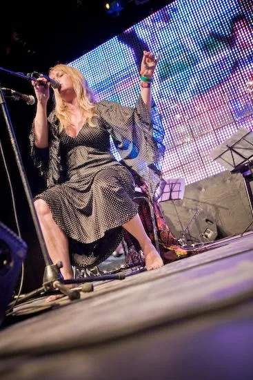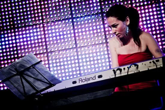 Klokken er 13 denne fredag på Roskilde 08, og Loungen er godt fyldt op for at se Jomi Massage i selskab med Eblis Alvarez, Tanja Zapolski, Stefan Baur og Paulo Villegas Olmos i de afslappede rammer, som scenen tilbyder.