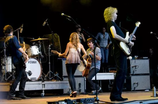 Sheryl Crow og hendes ni mand store band lagde ud med sangen ”A Change Will Do You Good” fra hendes plade fra 1996, der blot bærer hendes eget navn. Derefter fortsatte bandet med sangen ”Shine Over Babylon” fra hendes plade ”Detours”, der udkom tidligere på året. En sang, hun selv fremhæver som den