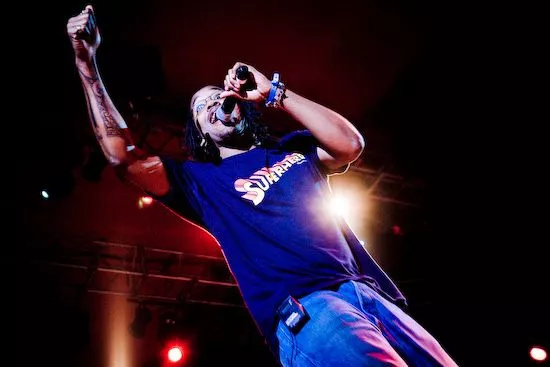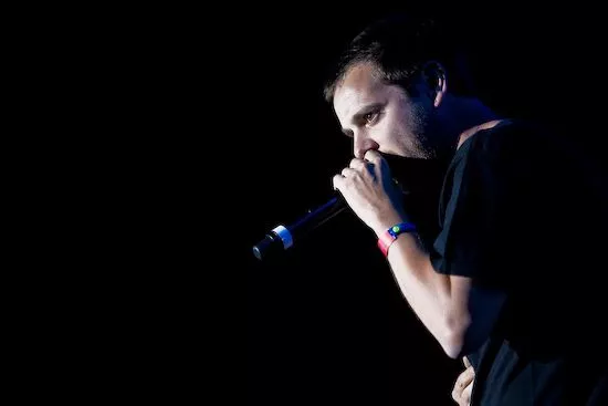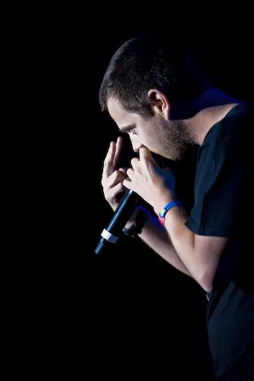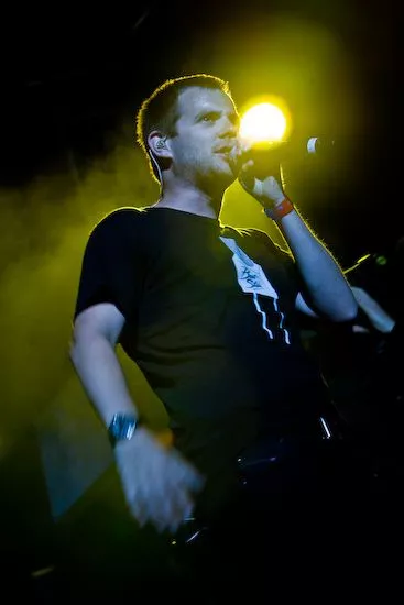 Det var en træt udseende Mike Skinner, som indtog Orange Scene med sit kompetente og veldresserede liveband. Efter en lidt rodet start med ujævne vokalpræstationer, hvor aftenens hovedperson flere gange helt faldt ud og lod den i øvrigt dygtige hypeman klare rim-ærterne, lykkedes det The Streets