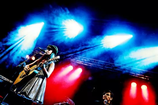 Ifølge Aura bliver hun først rigtig sig selv, når hun træder ind på scenen. Det blev hun, da hun kom alene ind på scenen og inviterede den pænt fyldte sals publikum med ind i sin musikalske stue. Uden dog at kunne tilbyde en sofa. Der trakterede hun gæsterne med egne guitarbaserede numre, der spændte