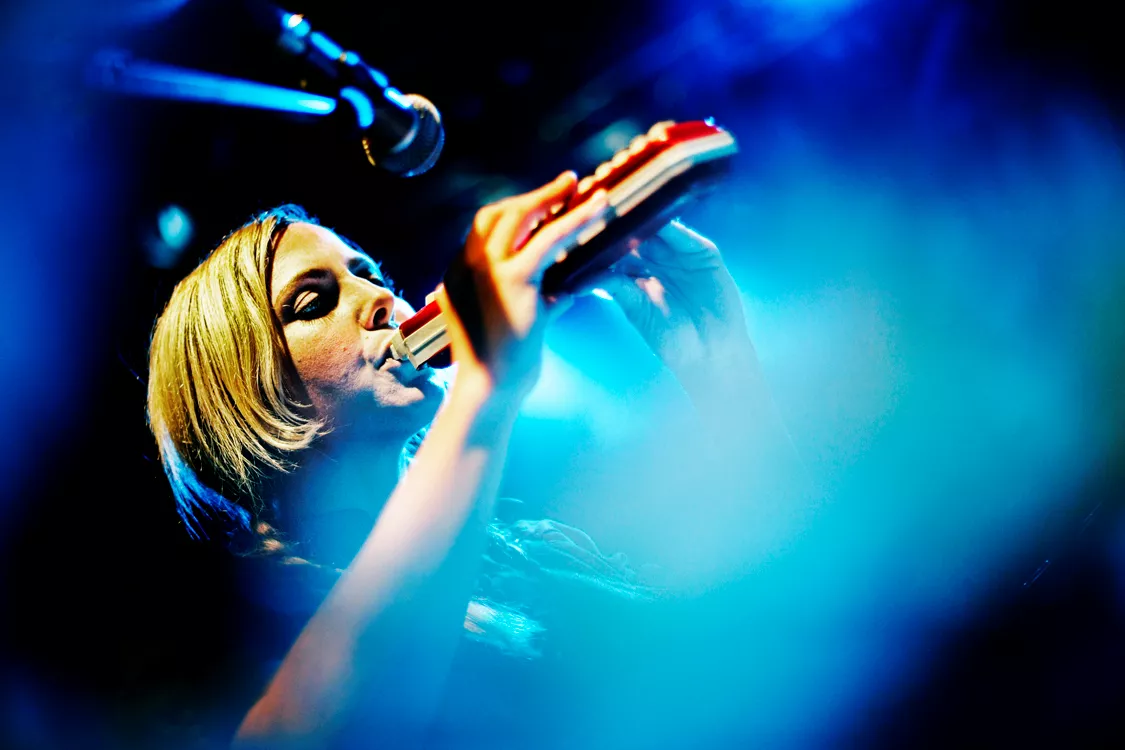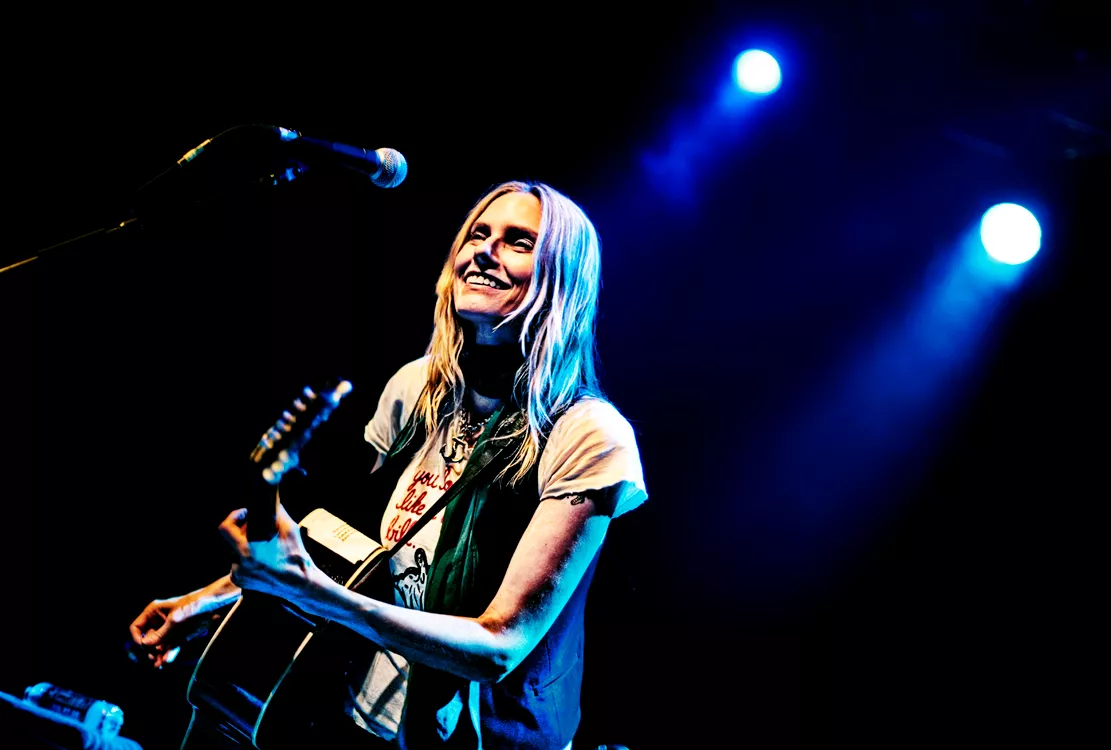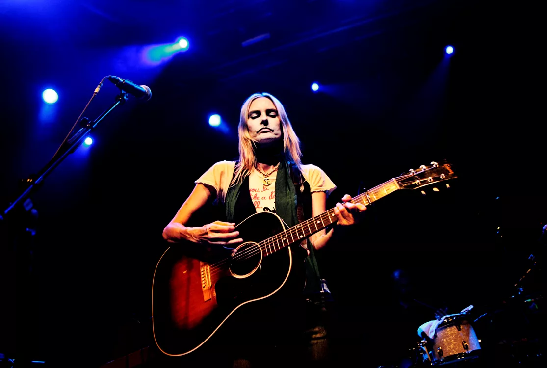 Hun er en spøjs figur, Aimee Mann, som hun står der med sine ultratynde arme, sit spidse ansigt, og de nedadvendte mundvige, der får det til at se ud som om, hun står på scenen under tvang. Men det indtryk forsvinder det sekund, hun ikke længere fordyber sig i sine tekster, og i stedet smilende taler