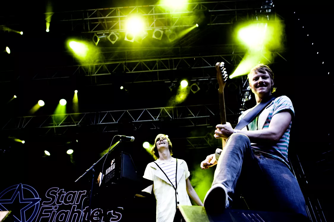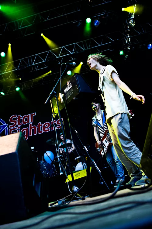 Bodebrixen var dagens syvende og næstsidste bidrag til Starfighters-konkurrencen. Bodebrixen er nok det mest etablerede af de medvirkende orkestre, idet de allerede har udgivet et album og har et nyt på vej (en ny version af debuten), har spillet på festivaler som Roskilde og Spot og har givet en