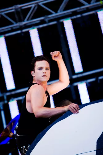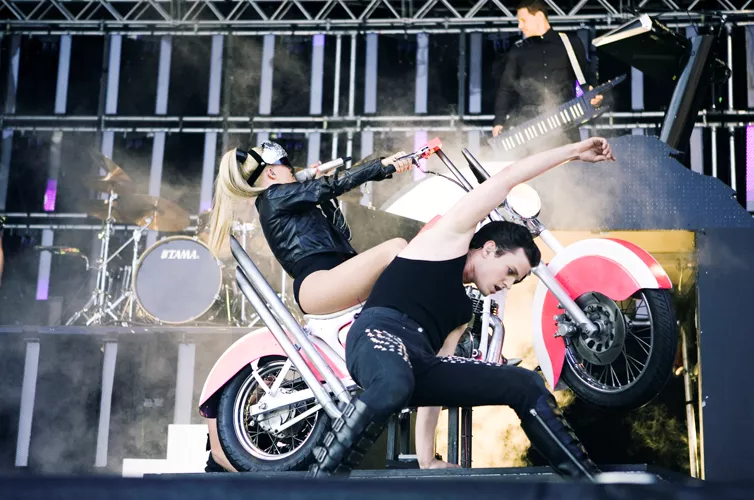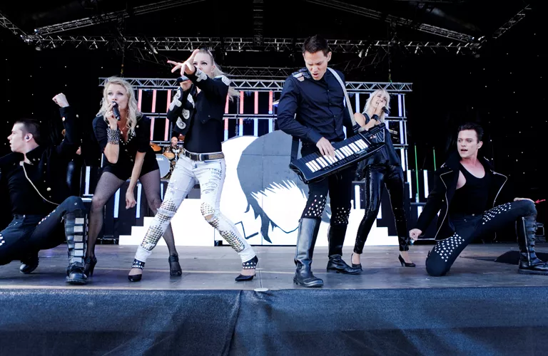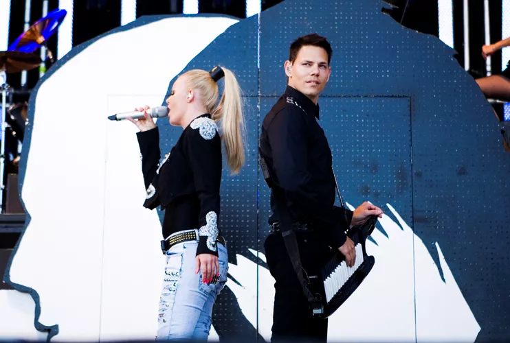 Det var noget af et show, Infernal havde taget med til Esbjerg. Et show, der virkede som et forsvar for euro-dance. Den musik, flere nok kan huske, at de har danset i plateau-gummisko til for efterhånden en del år siden. Som om at vi ikke skulle grine af røg og damp, mandlige dansere, der dansede