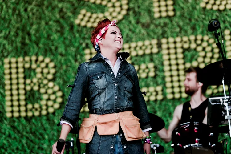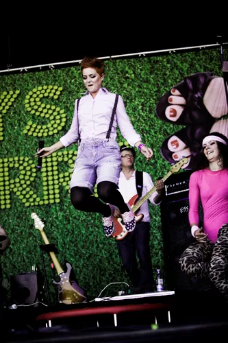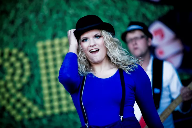 Det er noget af et show, Sys Bjerre efterhånden har med sig. Der er en glad, storcharmerende og dansende korpige, et par danserinder med trampoliner, sangerinderne også fik lov at låne, tre blæsere i shorts, der sad og gassede den i strandstole, når de havde pause, plus det faste fire mand høje band.