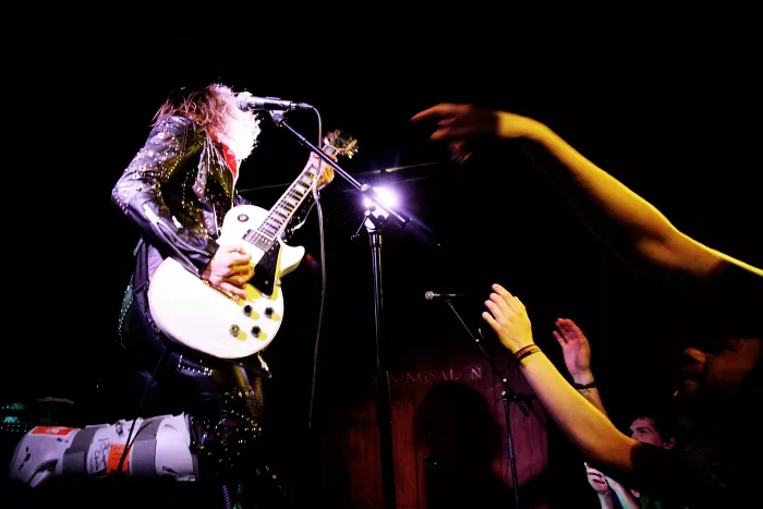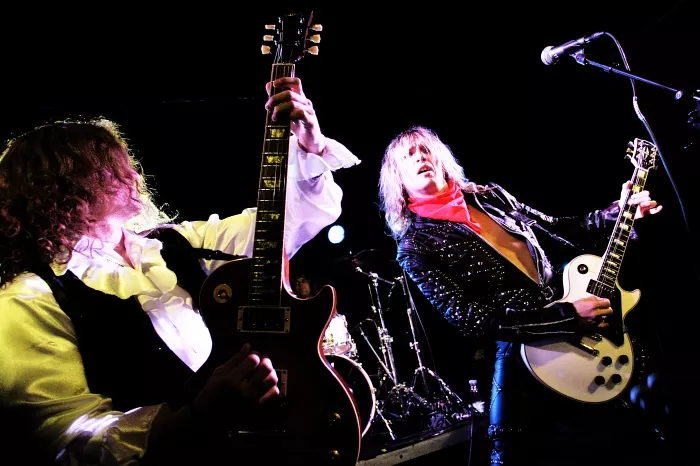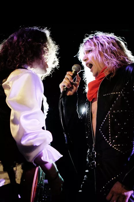 Veloplagt Justin Hawkins førte an for glaminspirerede Hot Leg. Sammen leverede de overbevisende eksempler på både evner og spilleglæde