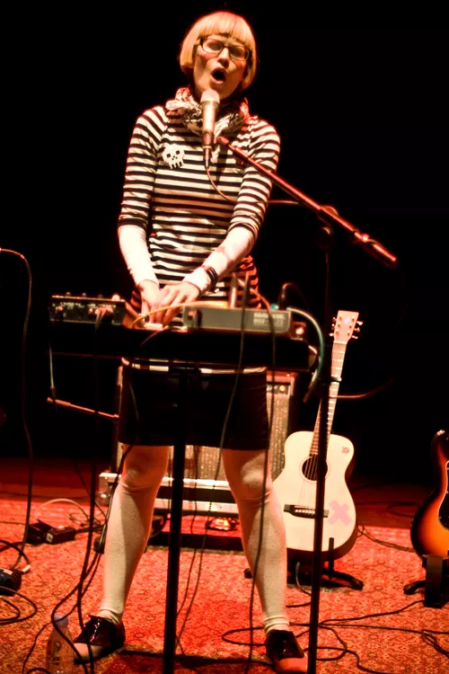 Oslo-jenten Jenny Hval udtrykker sig inden for et organisk elektronisk univers, hvor klokkespil, samples og effekter på hendes kuldegysende høje vokal går hånd i hånd, og til koncerten i Musikhusets Lille Sovesal fik hun hjælp fra Håvard Volden og Kyrre Laastad på et lille percussion-setup og en afart