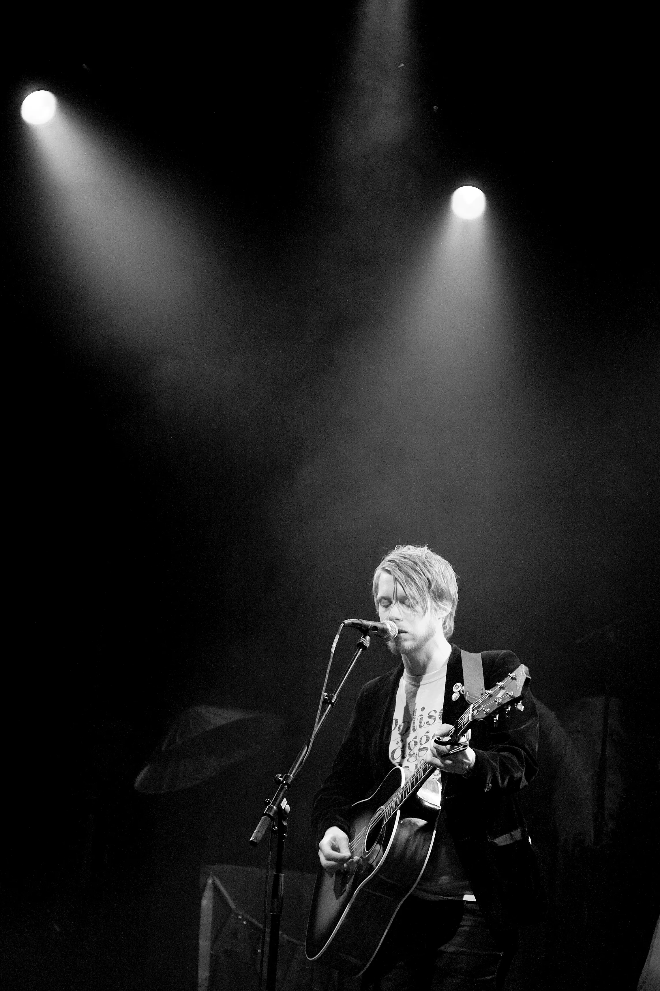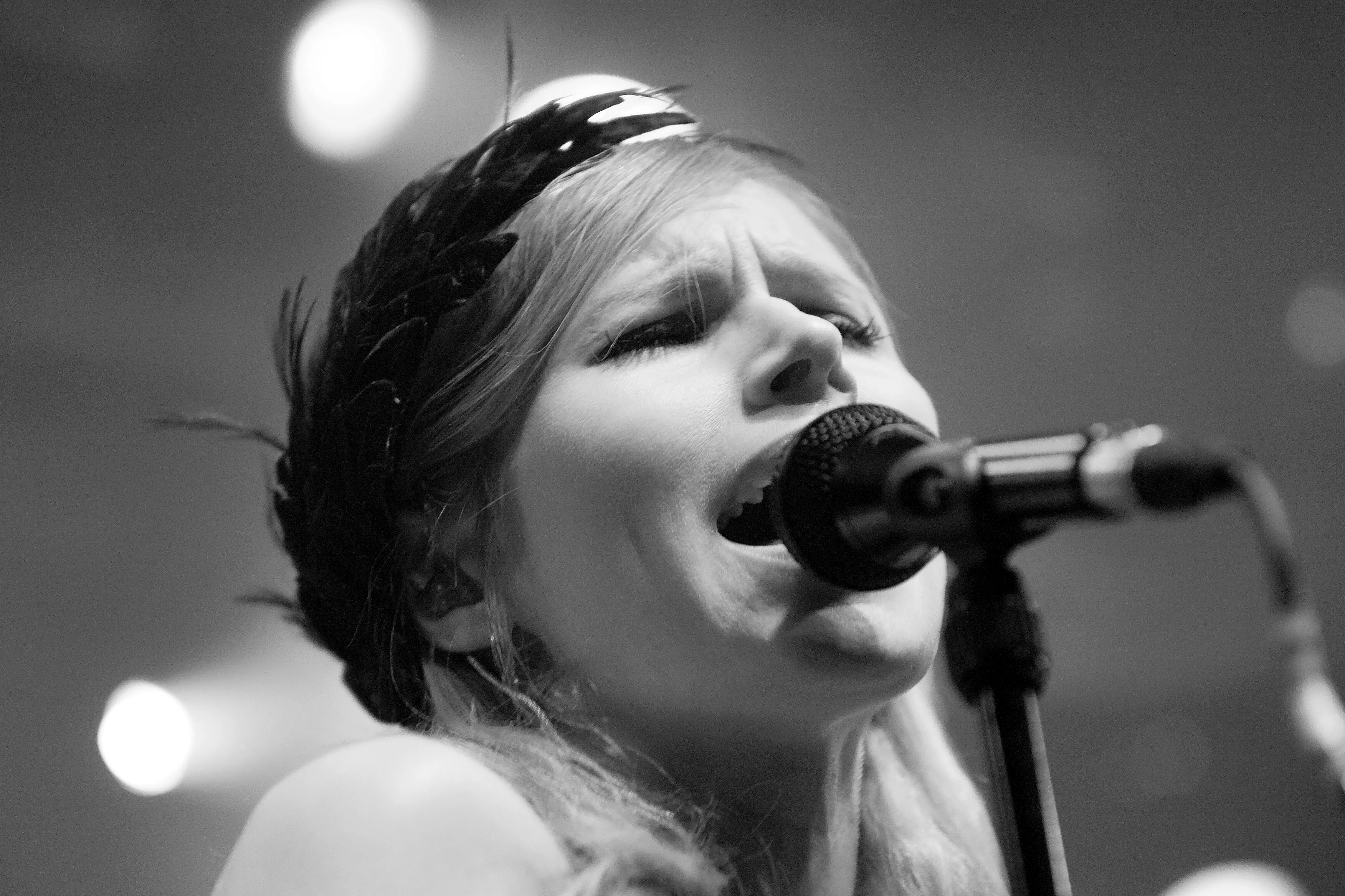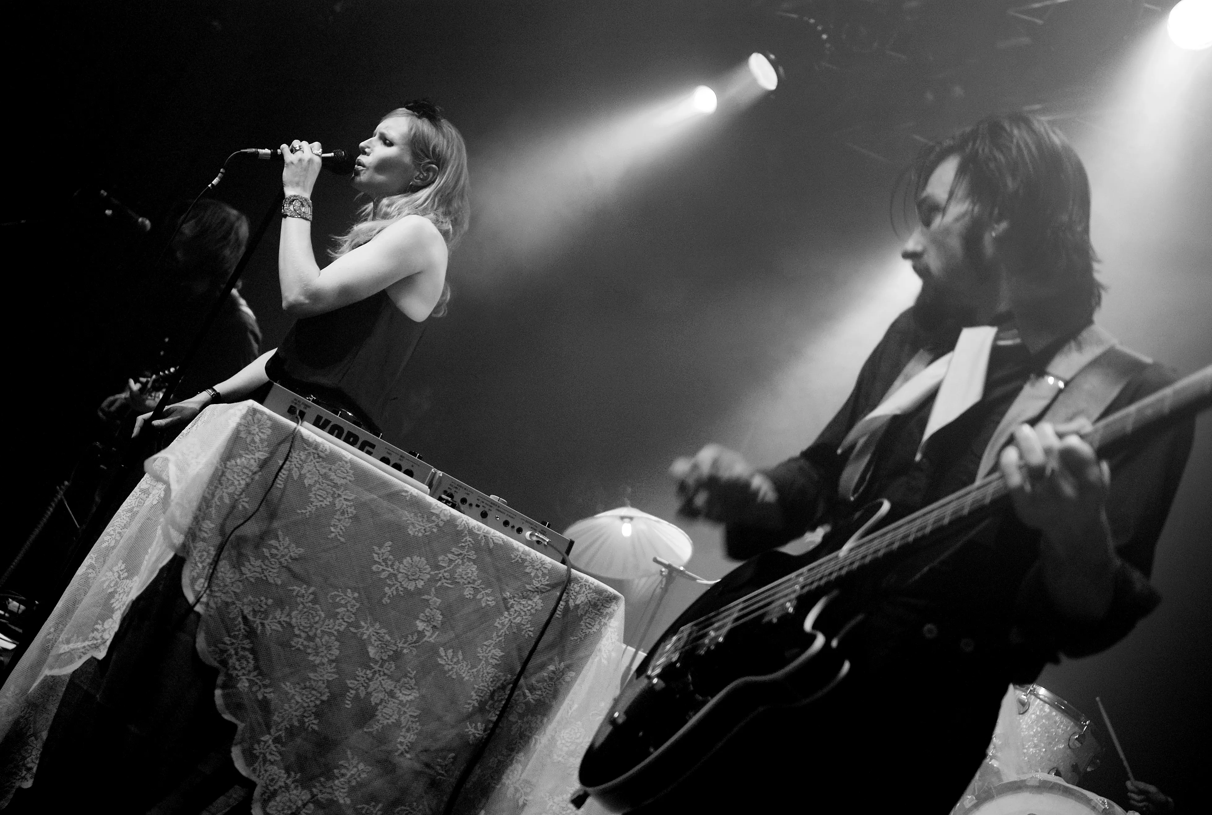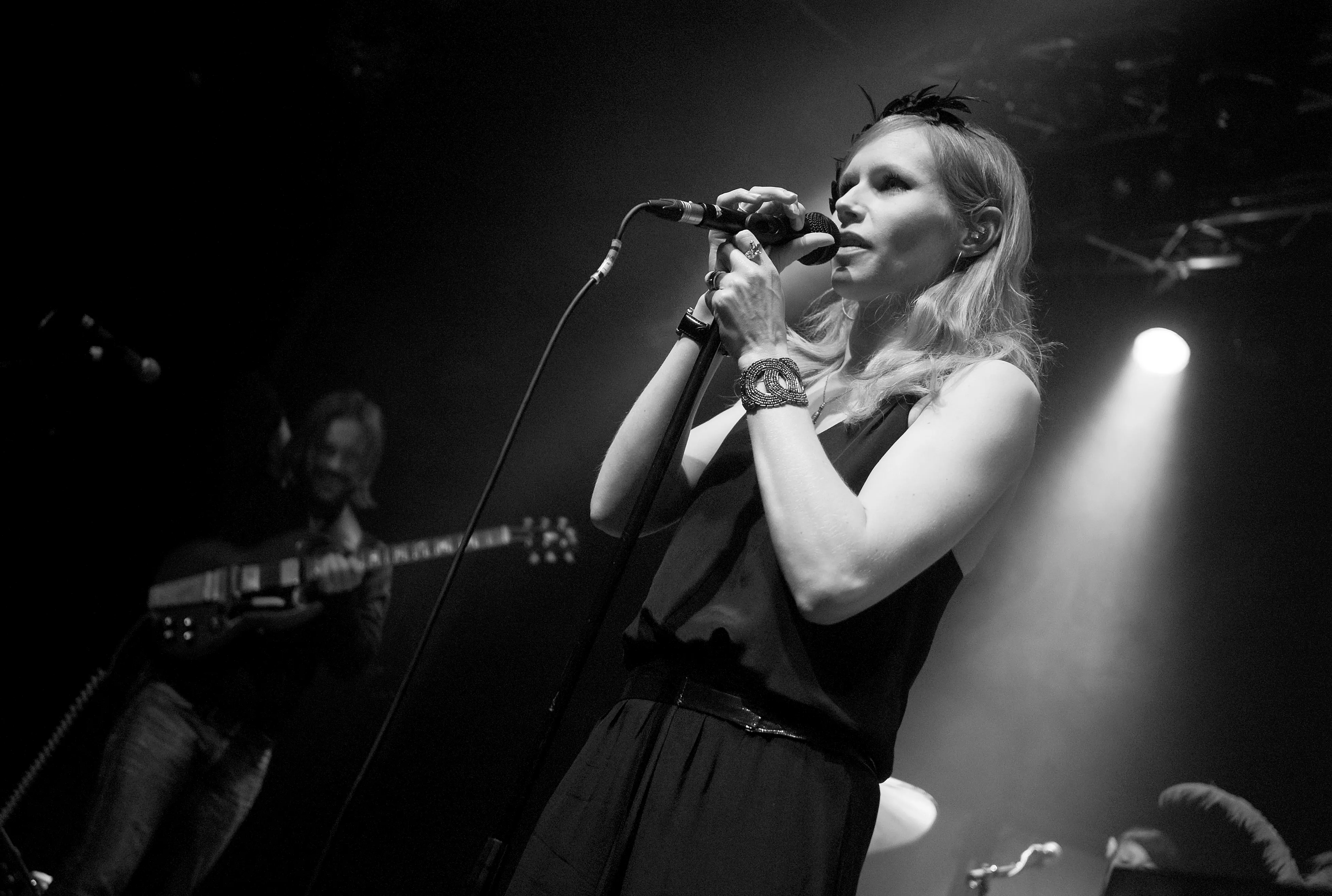 Med svingende arme og knyttede næver åbnede sangerinde Nina Persson koncerten med A Camp på Train. Den spinkle, sortklædte skikkelse med det svenskerblonde hår og de charmerende, dybe smilehuller virkede helt hjemme i den hyggelige opsætning med farvede bord- og guldlamper, men trods det indledende