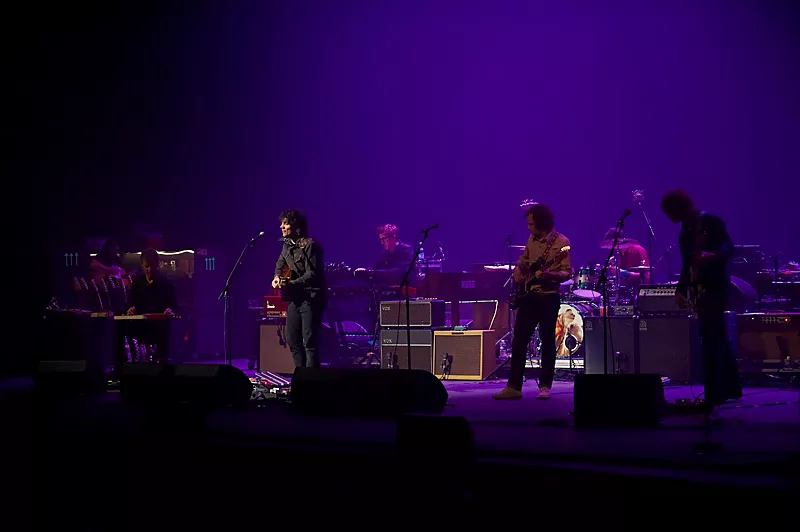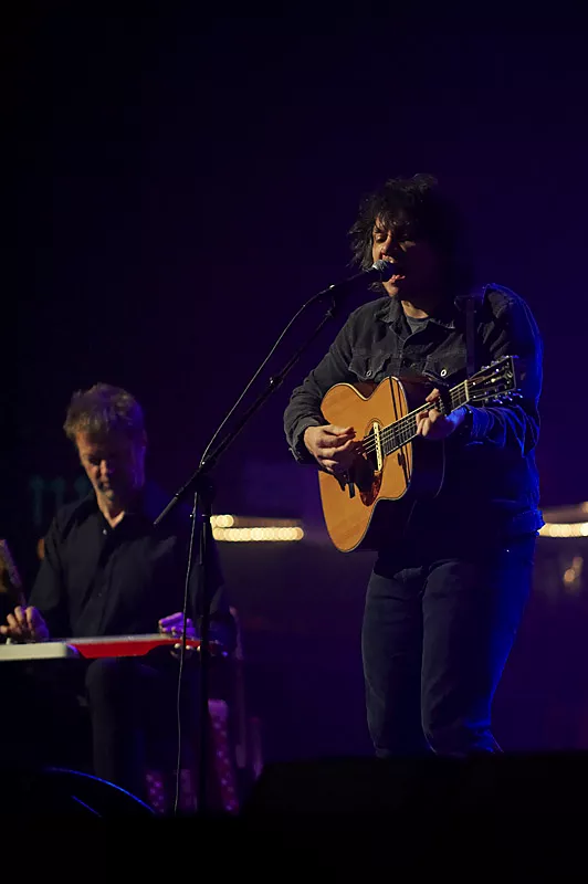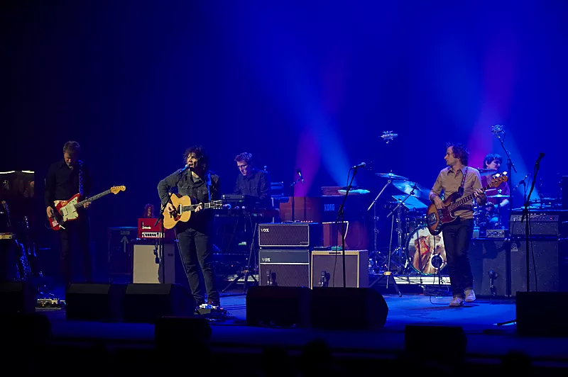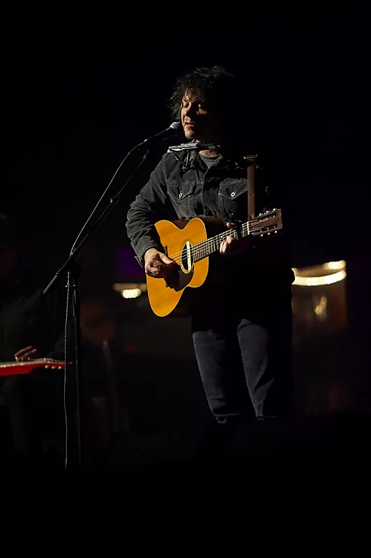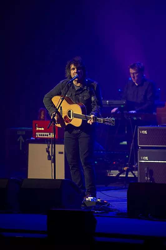 Om det var de fine omgivelser eller det kolde danske vintervejr, der havde sat en skræk i livet på Jeff Tweedy vides ikke. Men det tog i hvert fald ti sange, inden Wilco-frontmanden tøede nok op til at kunne sige hej til sit publikum.