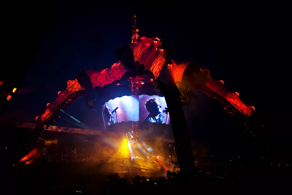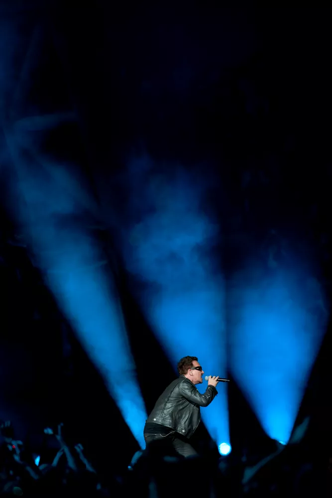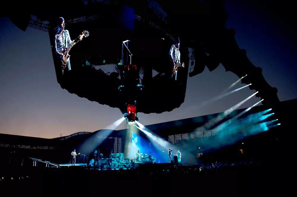Rockhistoriens største er den blevet kaldt, scenen på U2's 360°-turné. Et 50 meter højt firbenet krabbe/raket-lignende monstrum med en blanding af Eiffeltårnet og Sender Freies Berlin på toppen. Og vel med 30-40 meter mellem de enkelte musikere, når den yderste af de to runde scene-cirkler blev