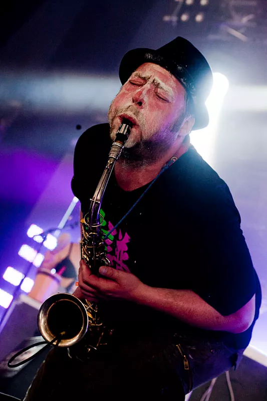Der var godt nok gang i den her over middag på Cosmopolscenen. Teknobeatet ramte uden kompromis, og foran var Kristian Leth assisteret af den danske jazz' store trommemester og showmand, Kresten Osgood, der og i denne version diverterede med vanvidssaxofon og corny keyboards, mens den ene hånd i luften