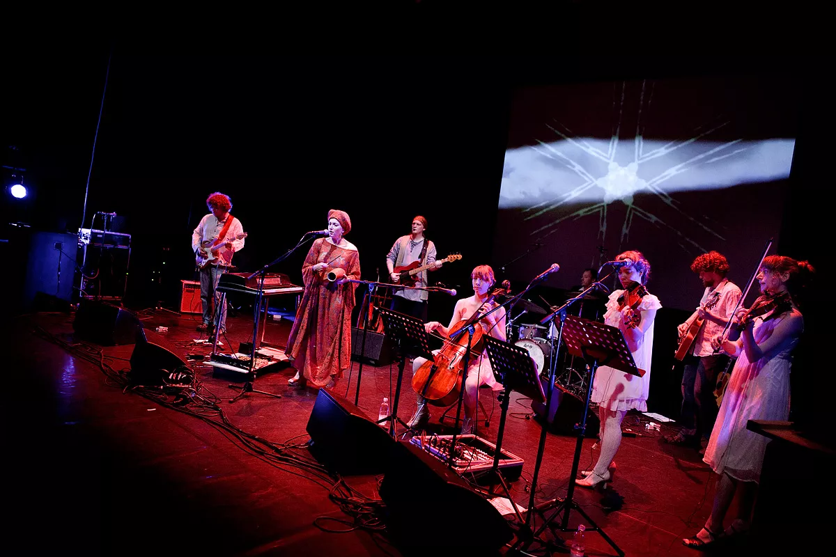 Vi starter i det stille og stemningsmættede hjørne, hvor Thomas Richards letjazzede trommer lægger en fin bund under frontkvinde Ellen Holcks vokal. De to centrale skikkelser ledsages af både akustisk og elektrisk guitar, bas og tre selvudnævnte elverpiger i et strygerensamble af violer og chello.