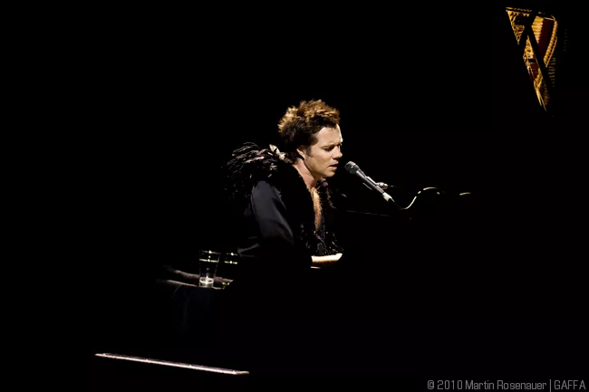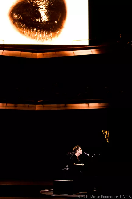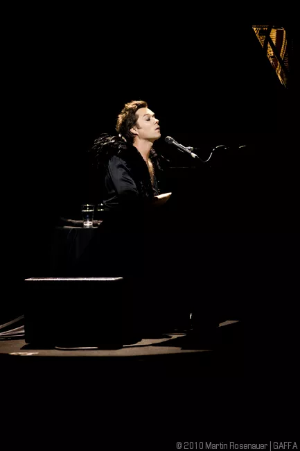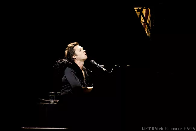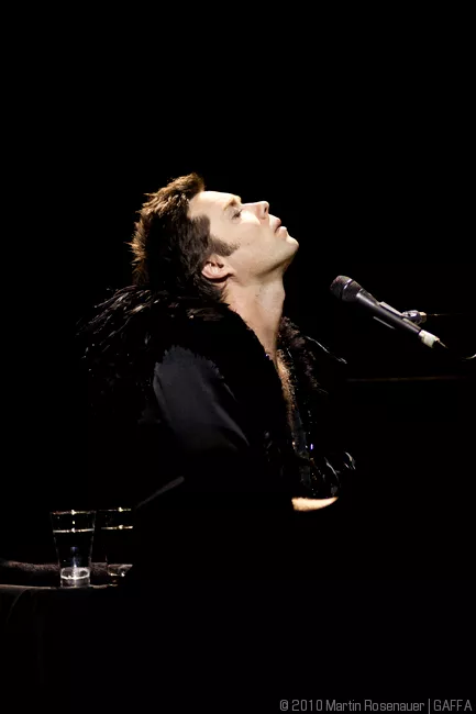 Den står på todelt Rufus Wainwright-solo-koncert denne søndag aften i DRs koncertsal. Midt i salen står et sort flygel, publikum sidder på alle sider af den centralt placerede scene, og det virker som om, at selv de, der sidder på de bagerste rækker, ikke er særligt langt fra aftenens hovedperson.