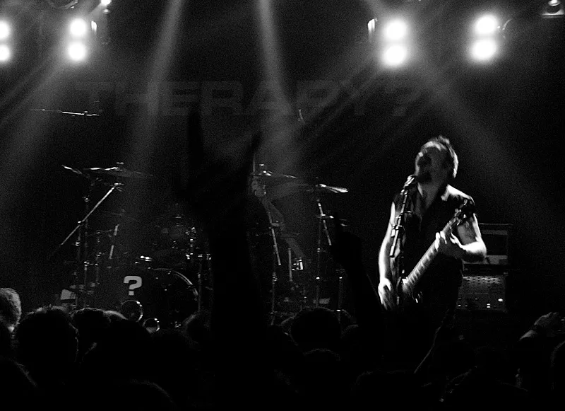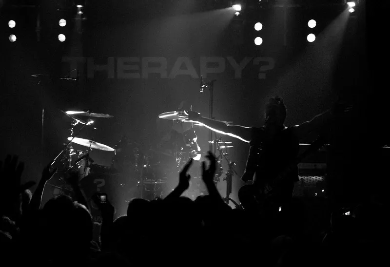 "My girlfriend says that I need help / My boyfriend says I'd be better off dead." Med disse ord starter Therapy? deres koncert. Stilen er lagt.
