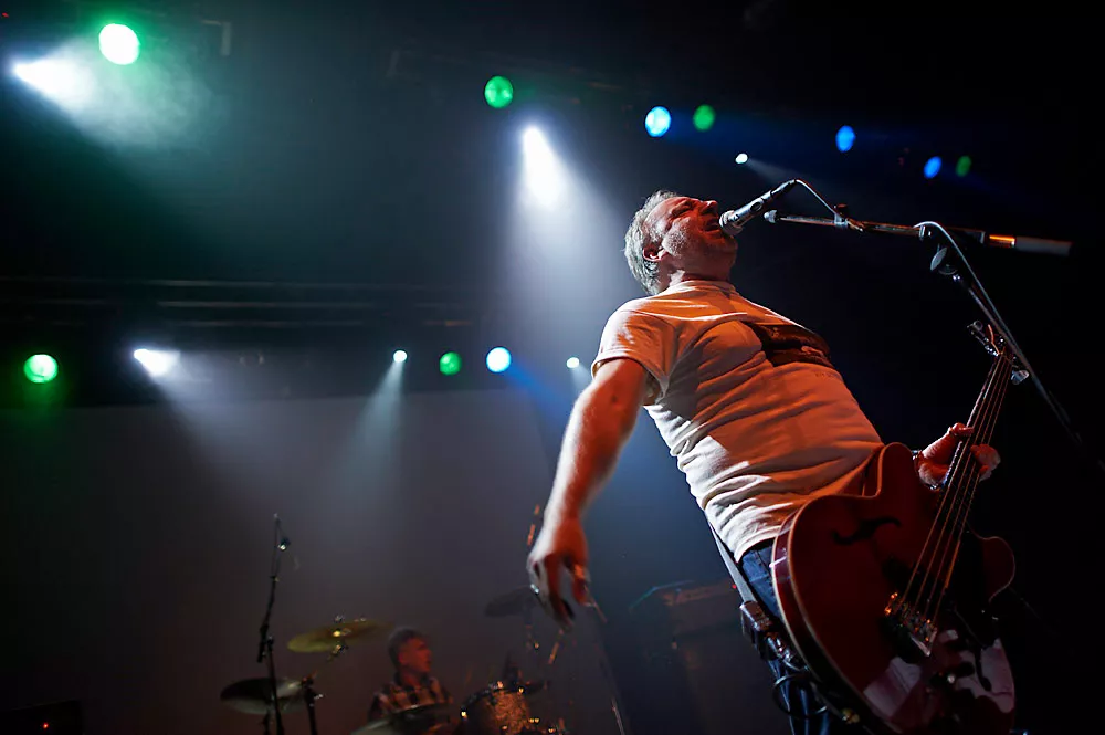 Det hørte vi imidlertid ikke meget til i Amager Bio onsdag aften, hvor den veltrænede bamse var trådt helt i front som sanger. Men lige så god han er til at spille bas, lige så elendig er han som sanger. De fleste af sangene blev simpelthen brølet af lungernes fulde kraft som julemanden på et fodboldstadion.