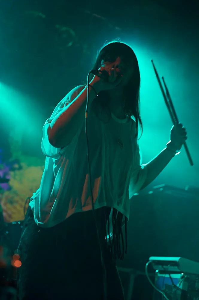 Det suveræne New York-orkester mestrede et helt grundlæggende groove og lange instrumentale trancer, selv på sådan en Lille Vega-mandag hvor publikum ønskede tirsdagen ad helvede til. Rytmikken er drivkraft med tre percussionister, yderligere forstærket af den dansende shaman med et hjemmelavet plasticpose-flag,