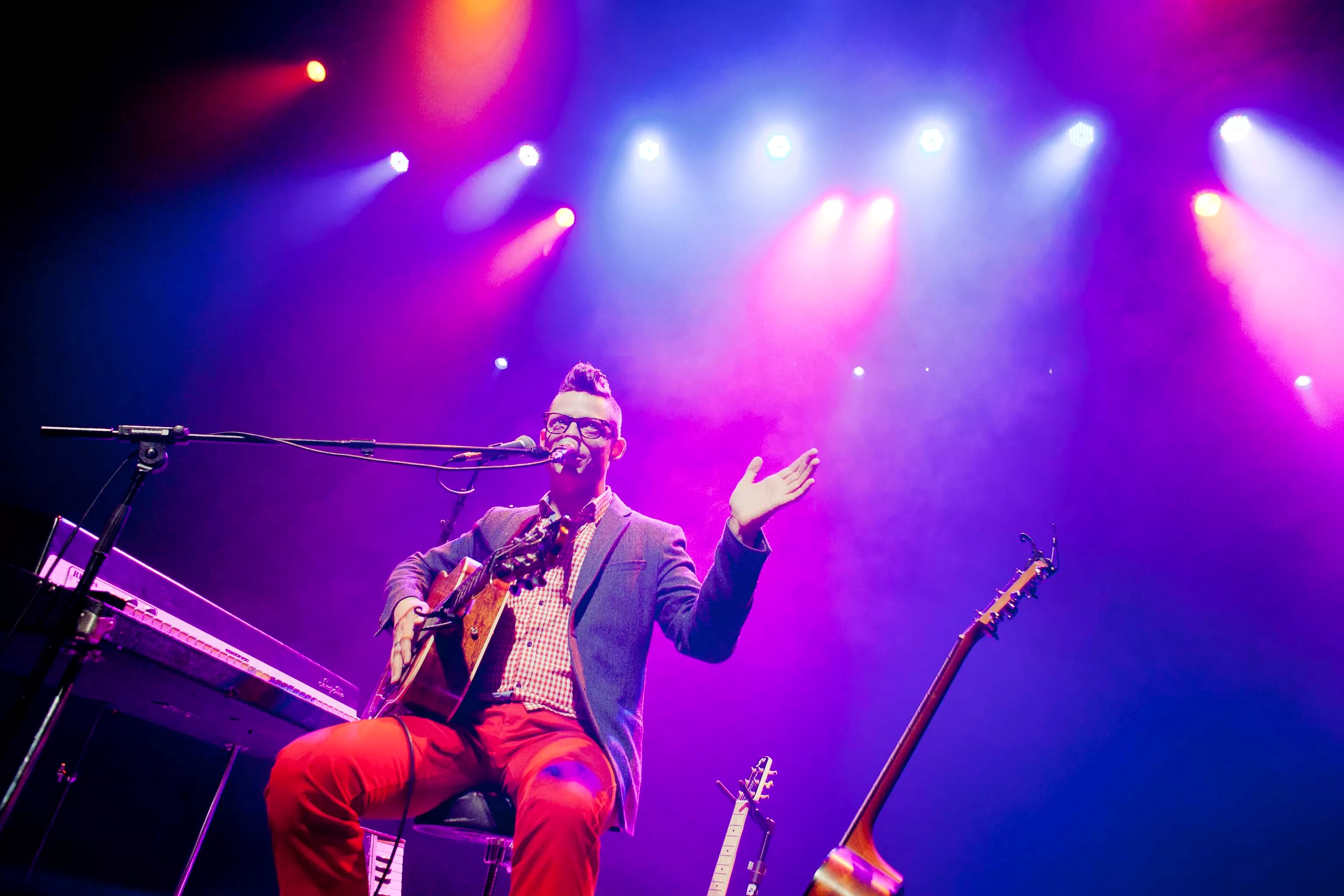 Forud for koncerten er der rundt omkring på Spot Festivalen blevet snakket en del om, hvad dette Bernhoft, med Jarle til fornavn, egentligt er for noget. Første del af svaret får man allerede når man kommer ind i Store Sal og kaster et blik ned på scenen. Her en man vidne til et lille set-up med tre