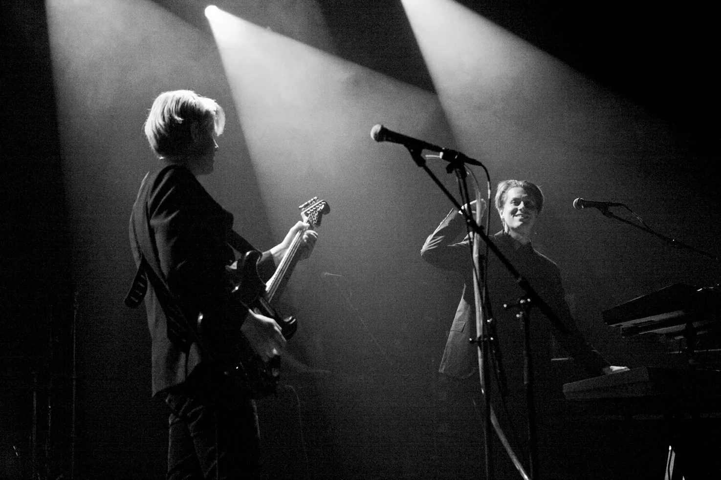 Og der er generelt store armbevægelser og en ukuelig selvsikkerhed over duoen, der ved denne første liveoptræden er udvidet kraftigt i form af kvindelig vokal som kor, bas, trommer, ekstra keyboard og sågar afslutningsvis violin.
