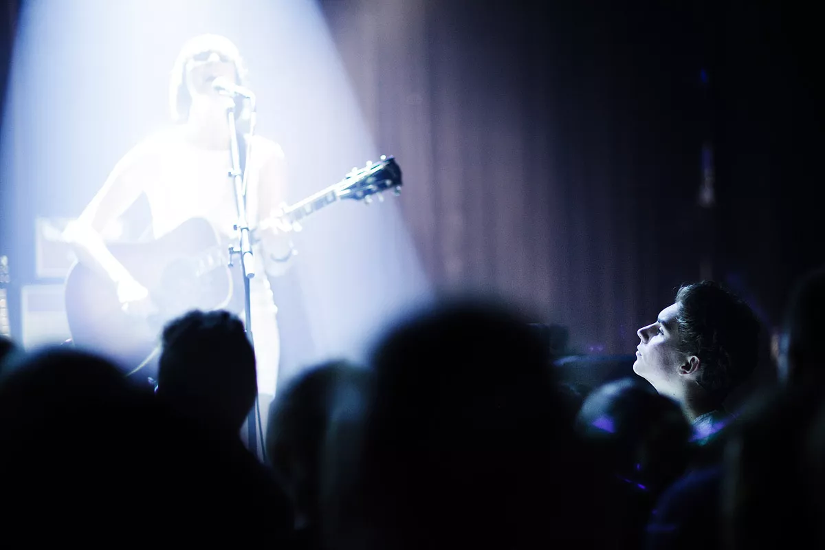 Det starter pinligt. Den lille krampagtige islænding med et talent, der er alt for stort til det lille land mod nord, står på scenen og skutter sig i en grå skjorte. Han virker nervøs, klør sig hele tiden på armen, som om han er bange for folks reaktion på, at han snart åbner munden. Og så begynder
