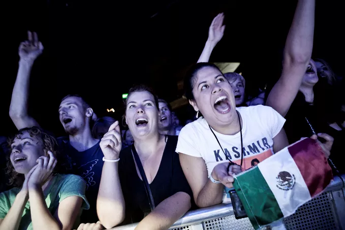 Bandet var sikkert ved at skodde den sidste smøg, drikke ud og fælleskramme cirka fem minutter før koncerten, da den sammenstuvede, forventningsfulde publikumsmasse første gang rammes af gåsehud. P3, der står bag koncerten og i øvrigt sender den i radioen torsdag aften, fylder højttalerne med et sammenklip