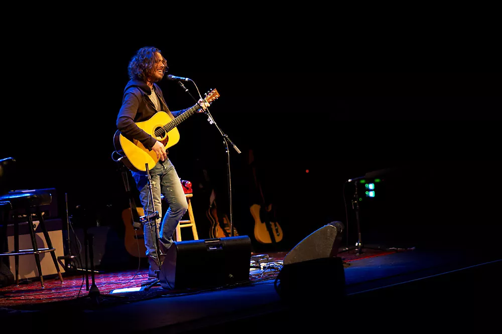 "Hvad skal jeg spille først?" Chris Cornell spørger salen, som med det samme kaster det ene ønske efter det andet tilbage. "Billie Jean!", "Seasons!", "Like A Stone!", og det bliver det sidste, Audioslave-nummeret fra bandets debutalbum, som åbner aftenens koncert. Den melankolske ballade præsenterer