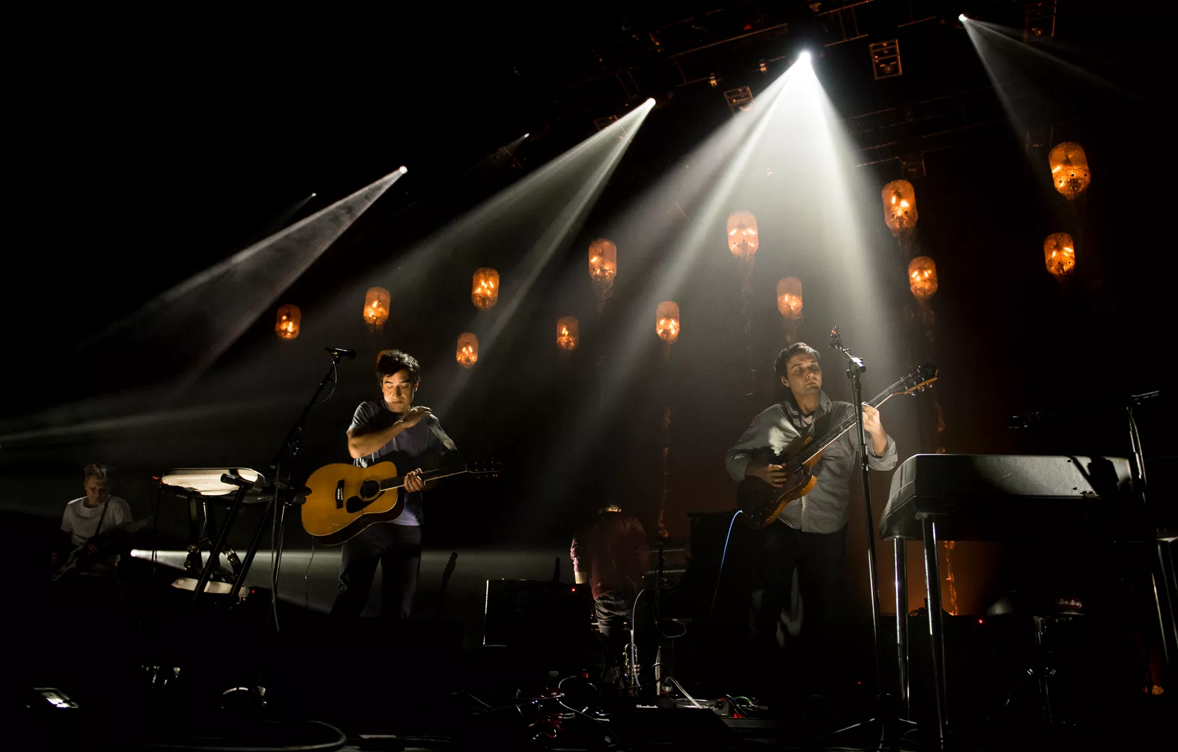 "It's going to be a full on light show", fortalte Ed Droste, da undertegnede interviewede Grizzly Bear tidligere på året. Det var en mild underdrivelse. Falconer Salen var under koncerten med selv samme gruppe indhyllet med omvendte bøjelignende tingester som baggrund, hvor en glødepære gav en malende