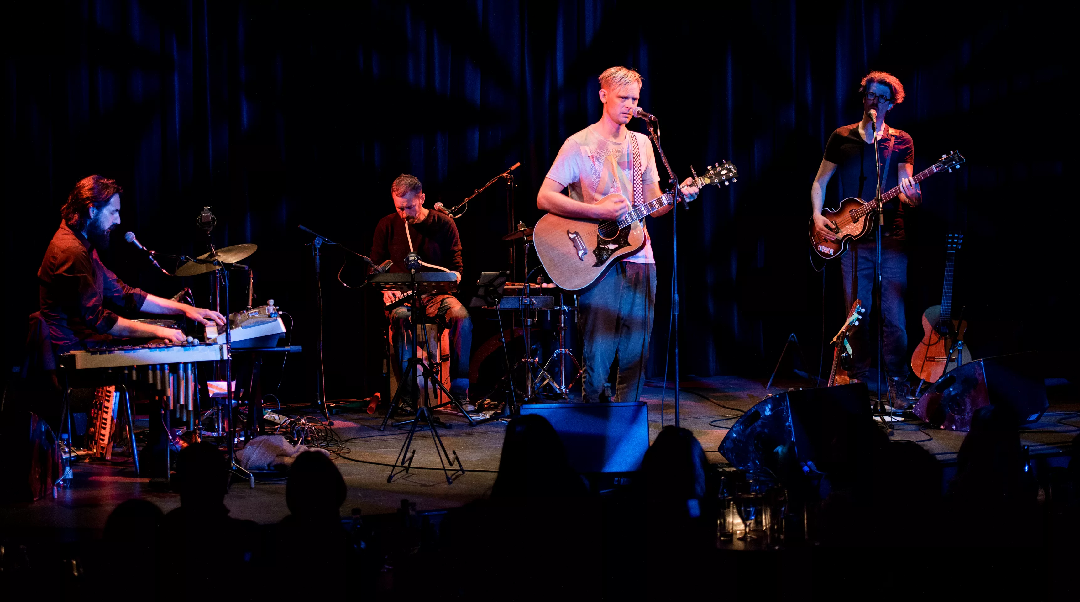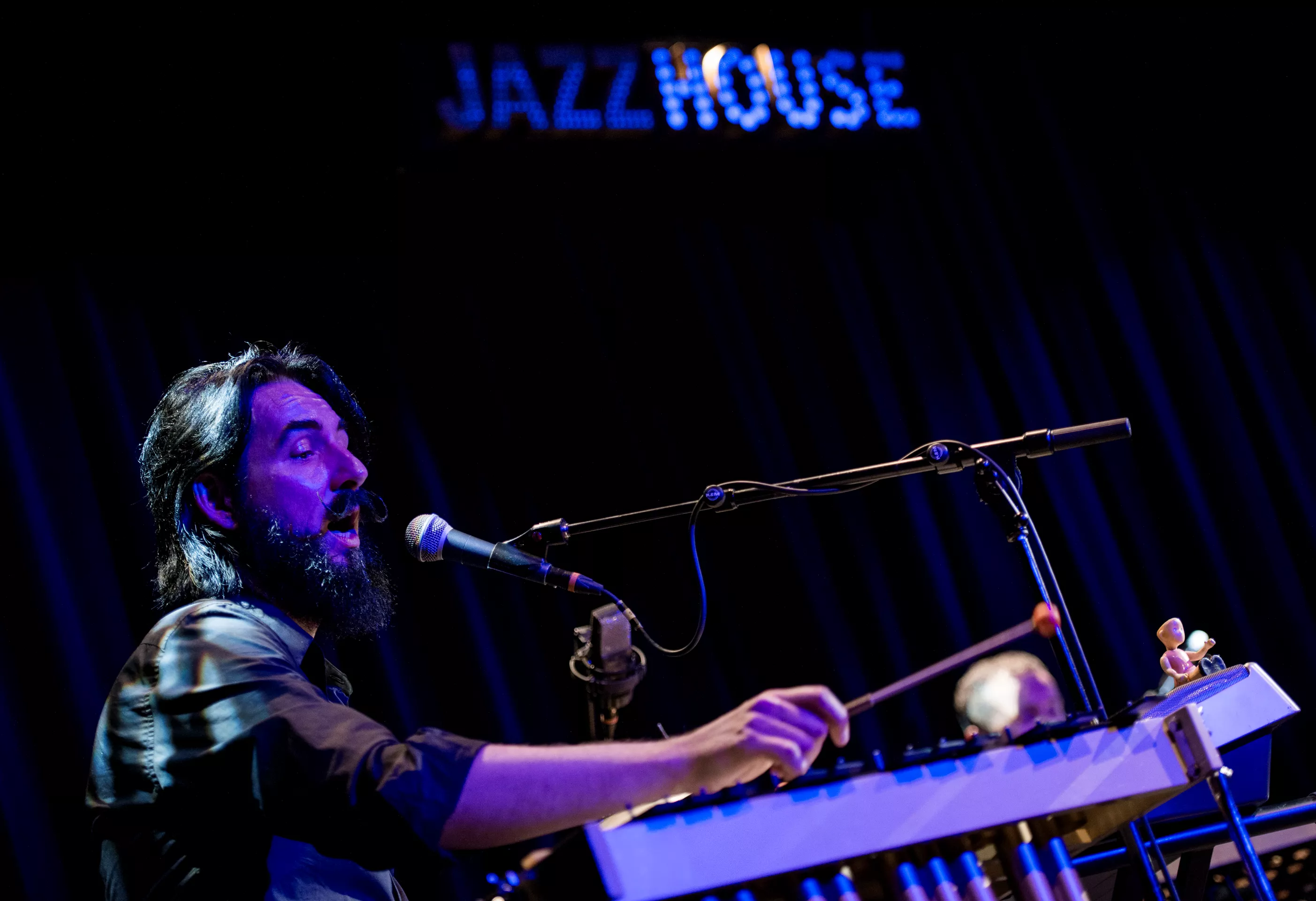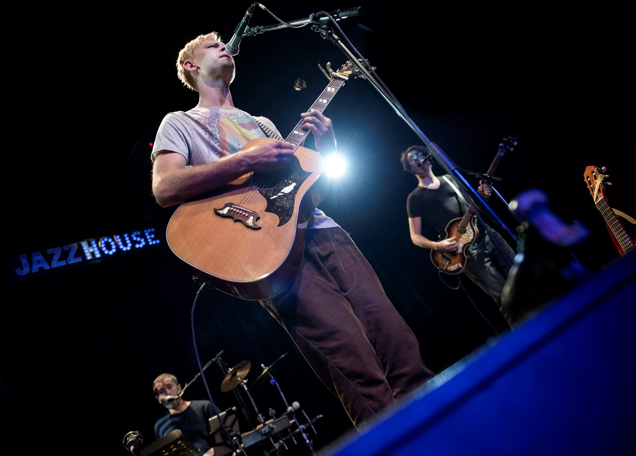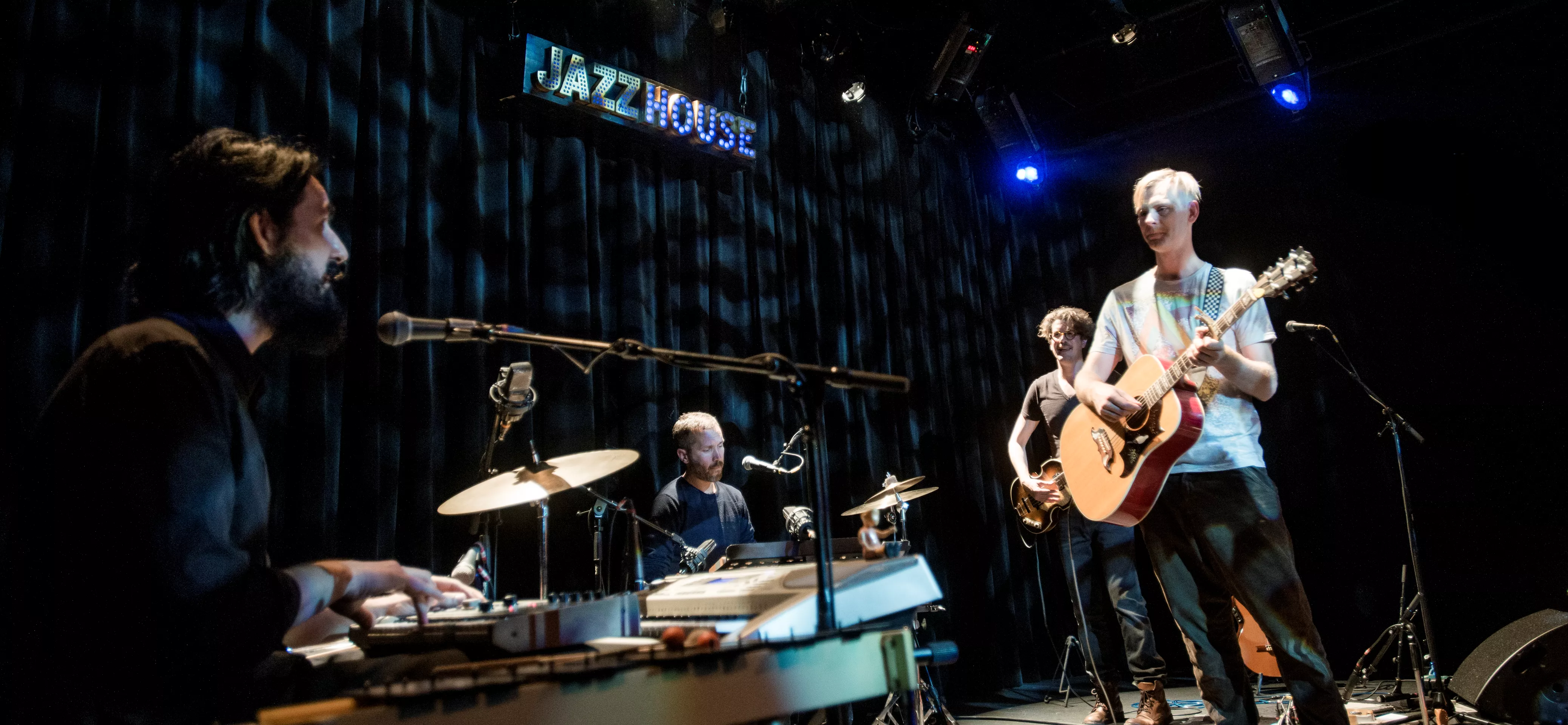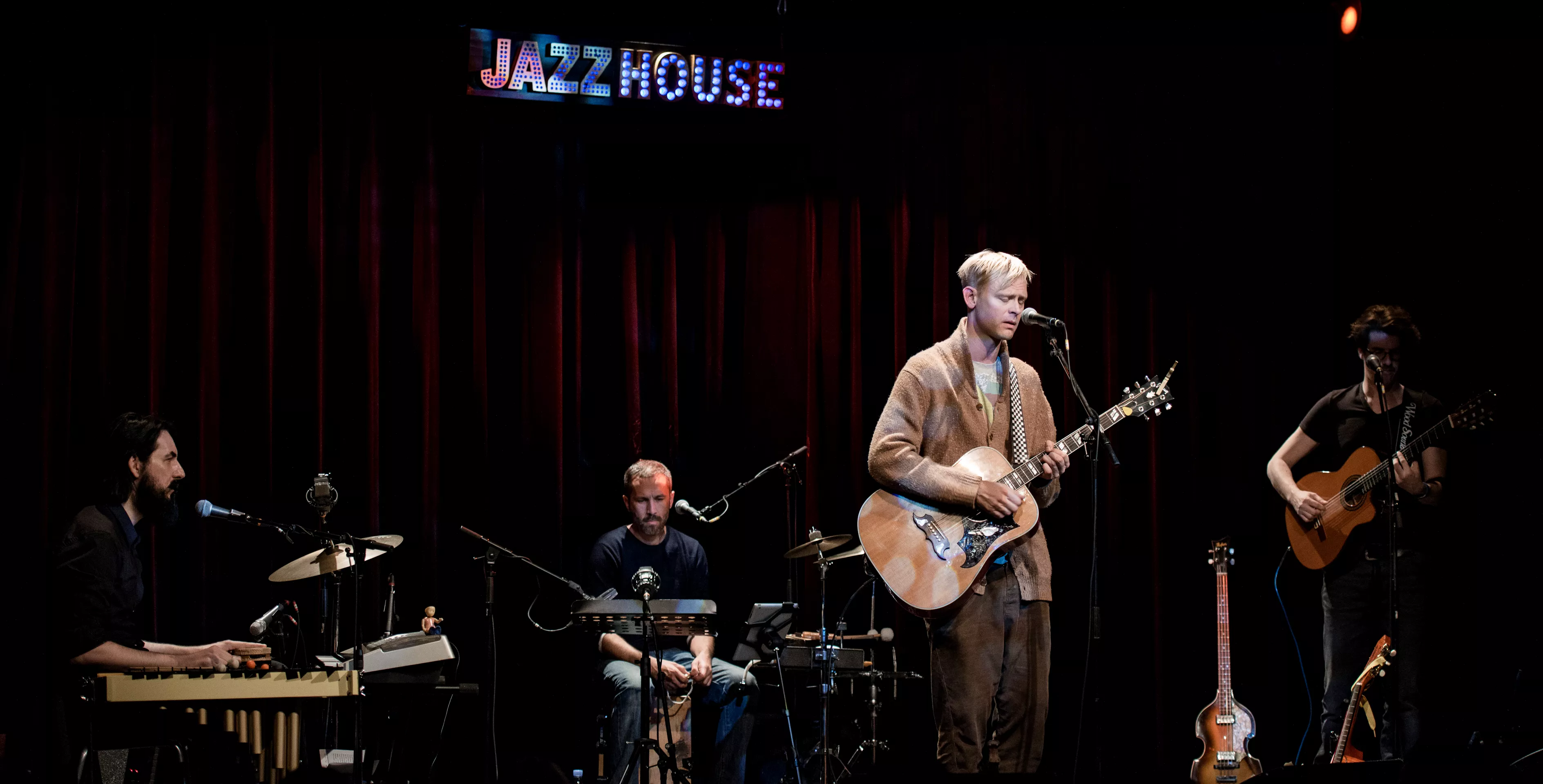 Hipsterlooket er komplet, da Nikolaj Grandjean betræder scenen i Jazzhouses nye smukke rammer med firserprint på T-shirten og kæmpe kameluldsstrik, som dog hurtigt ryger af grundet varmen. Mikkel Lomborg styrer keyboard og xylofon (og ikke mindst vokal), Christian Winther, der har valgt at forlade