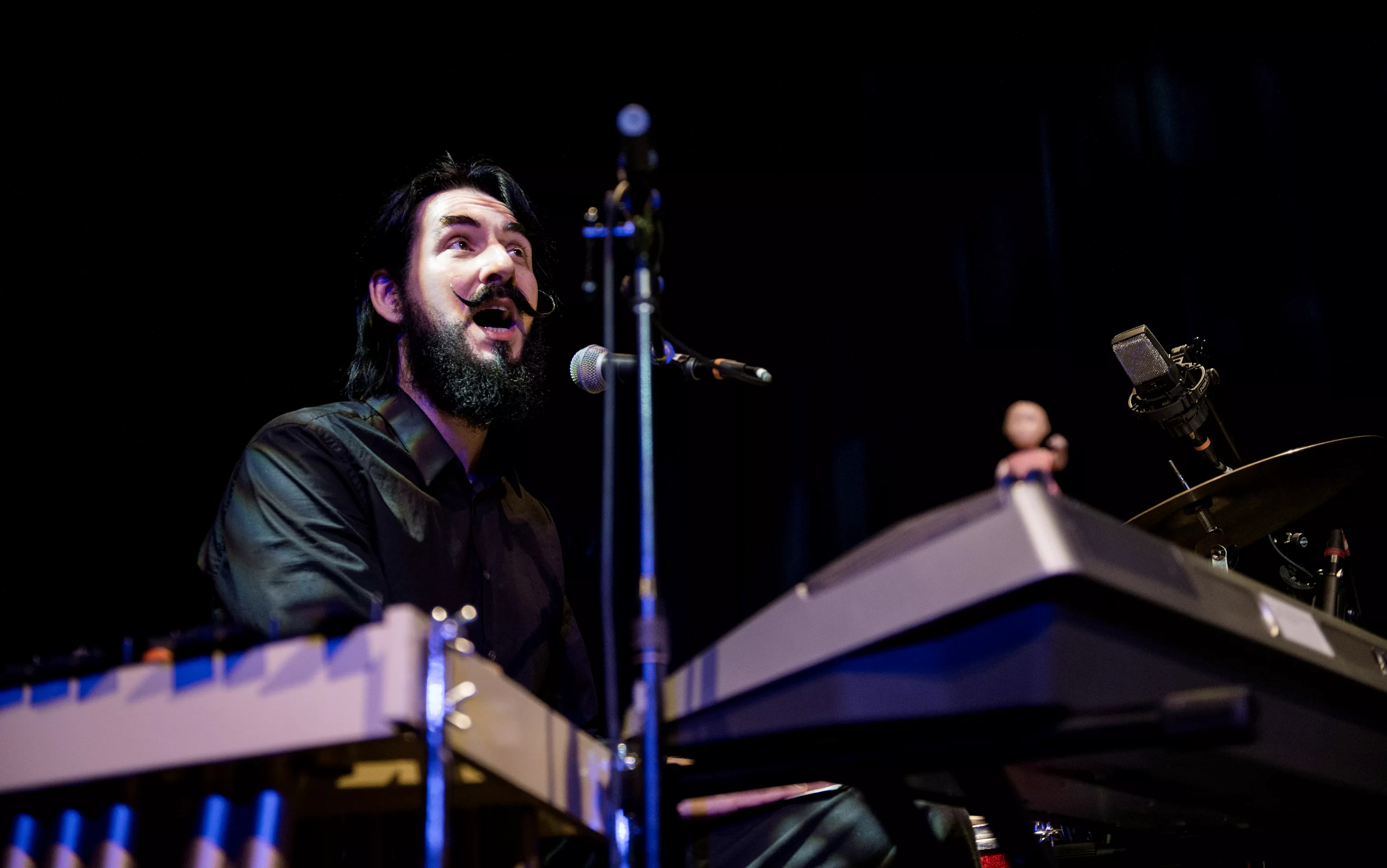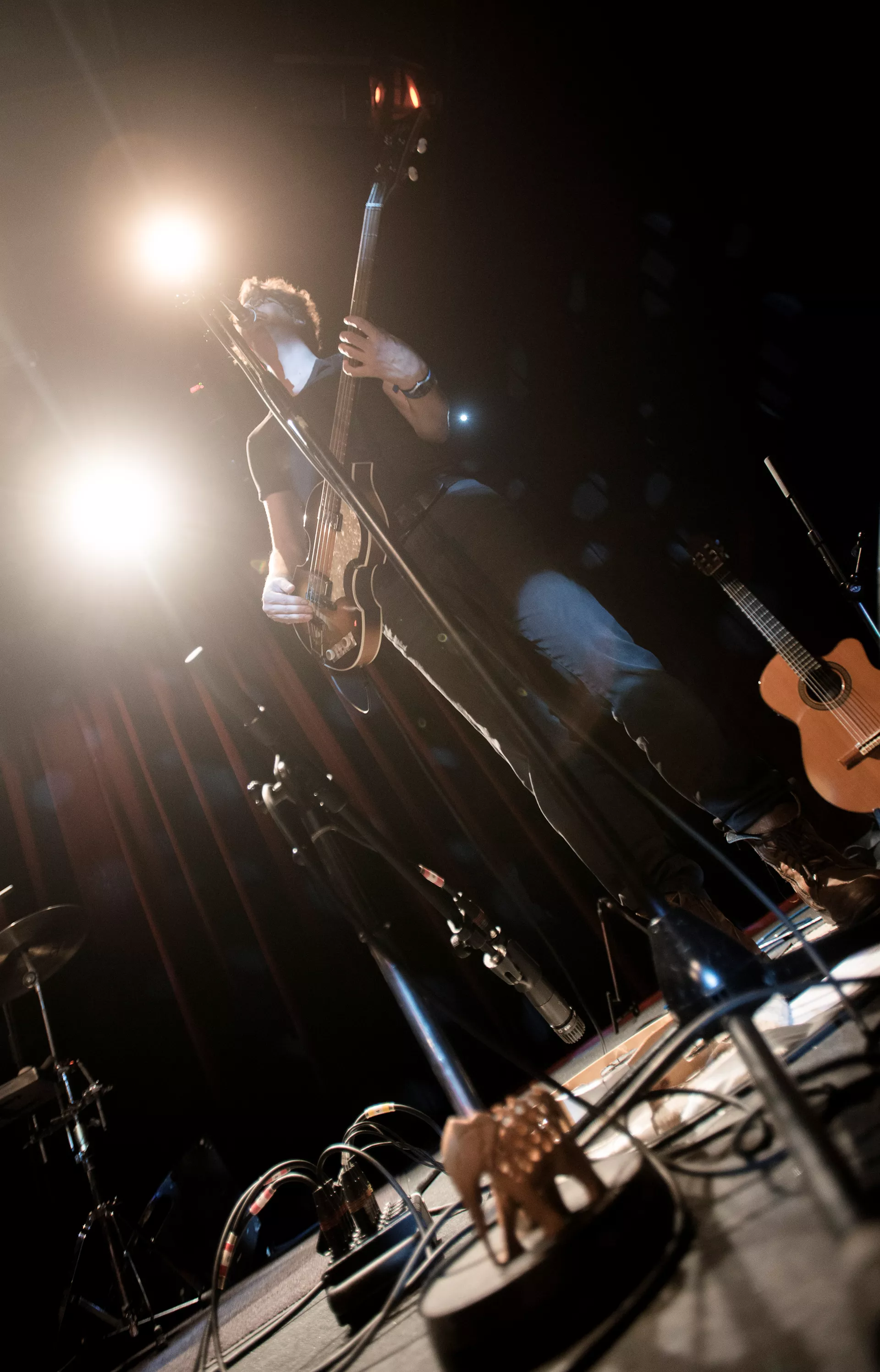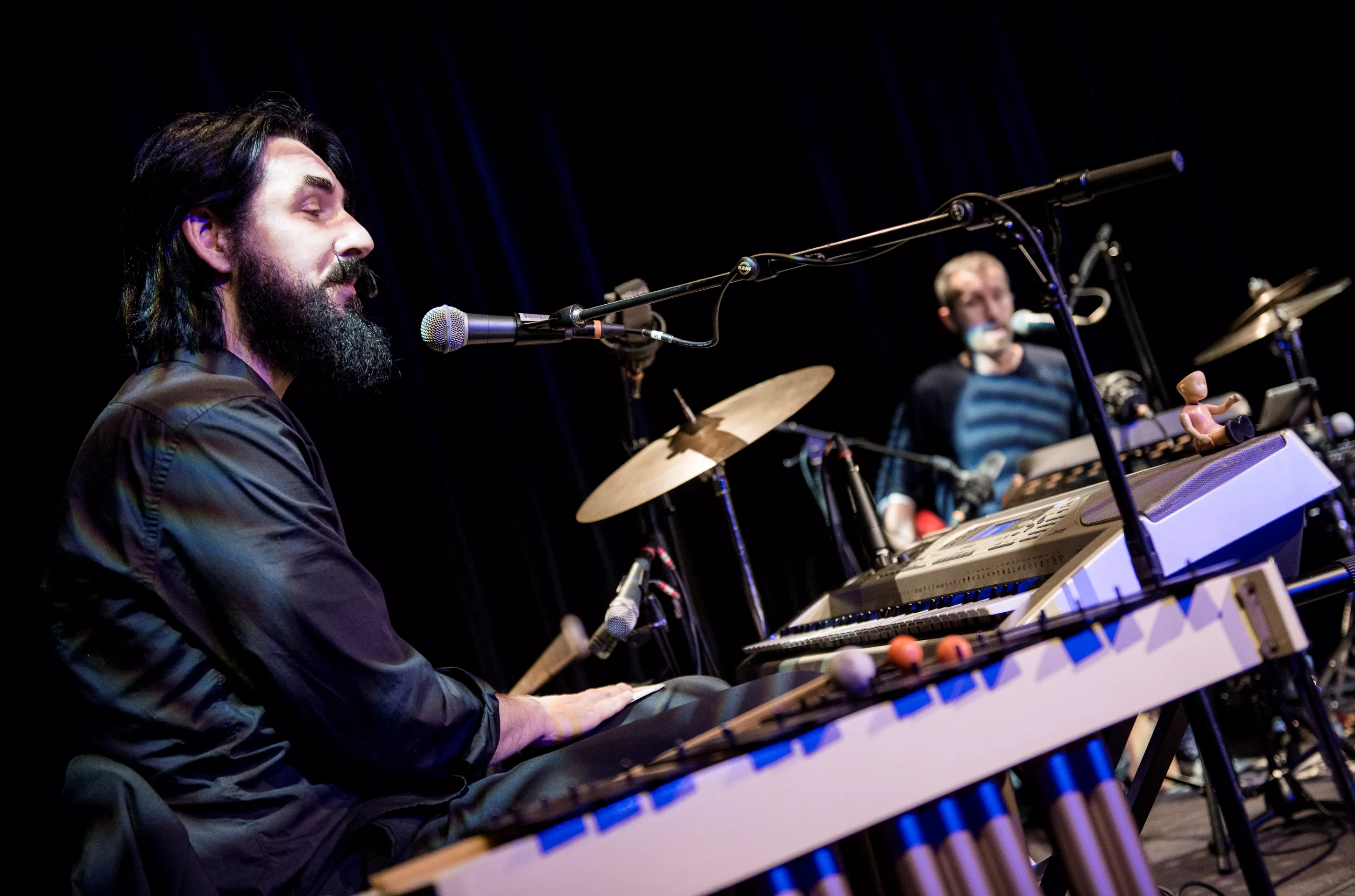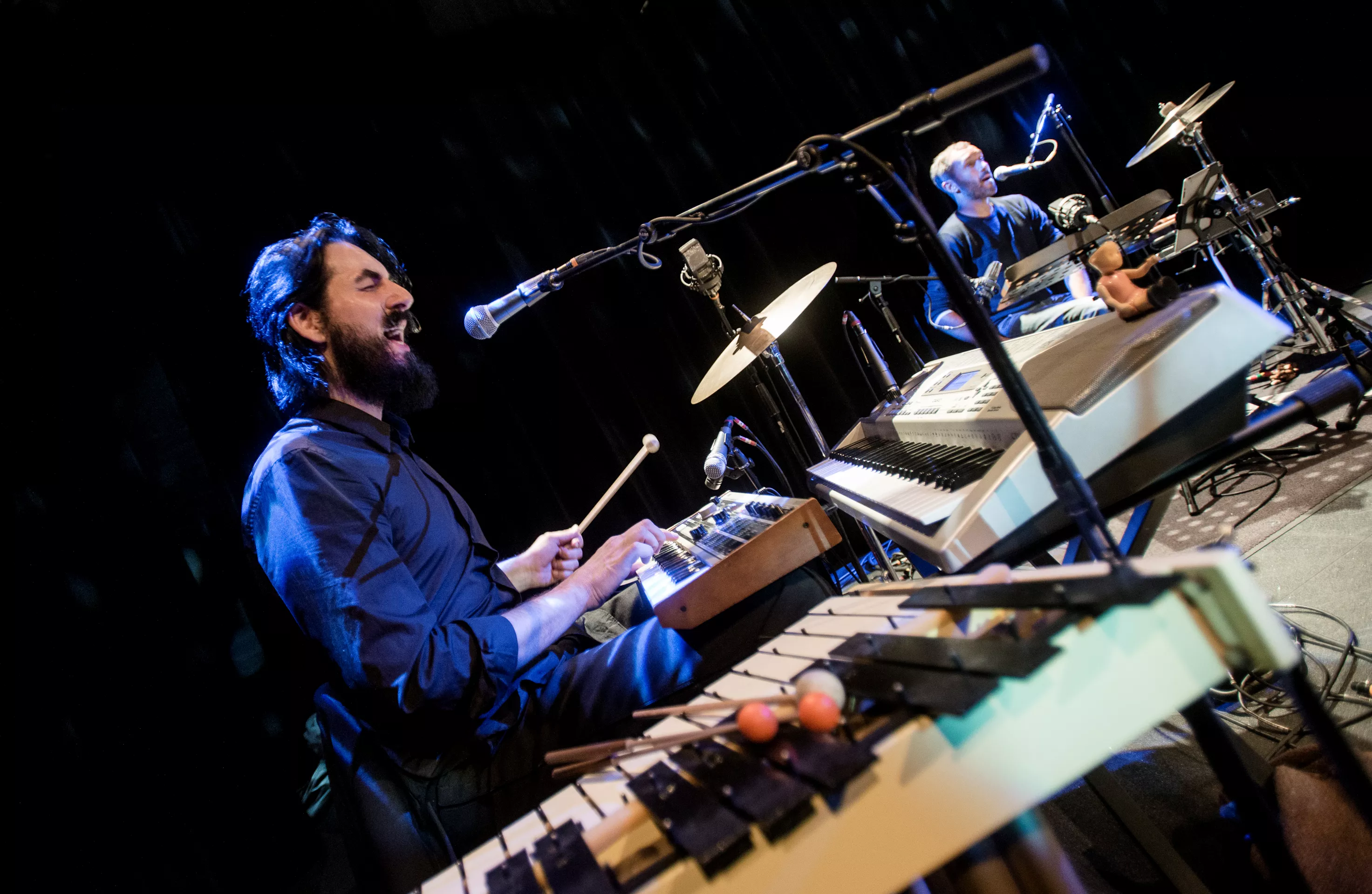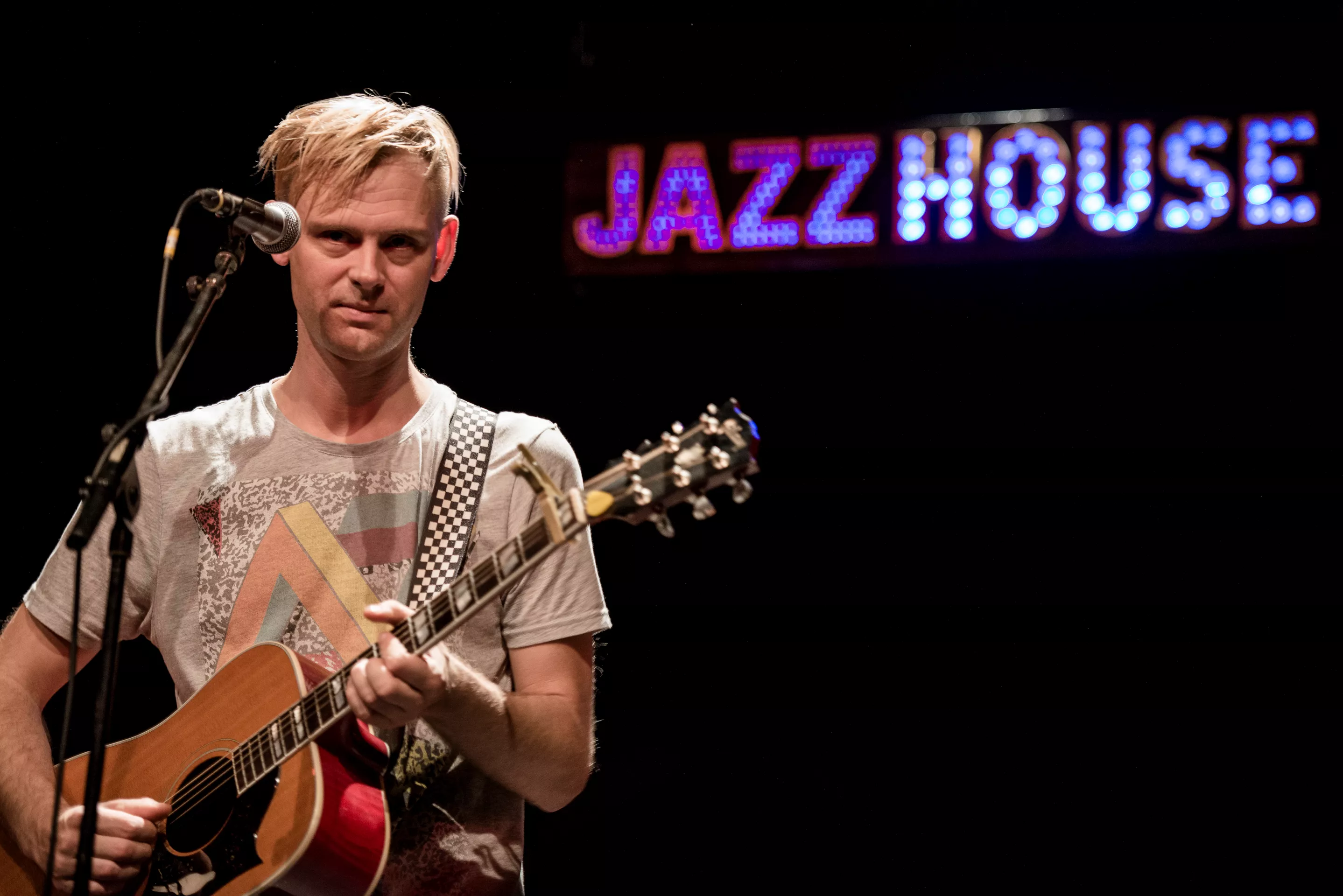 Hipsterlooket er komplet, da Nikolaj Grandjean betræder scenen i Jazzhouses nye smukke rammer med firserprint på T-shirten og kæmpe kameluldsstrik, som dog hurtigt ryger af grundet varmen. Mikkel Lomborg styrer keyboard og xylofon (og ikke mindst vokal), Christian Winther, der har valgt at forlade