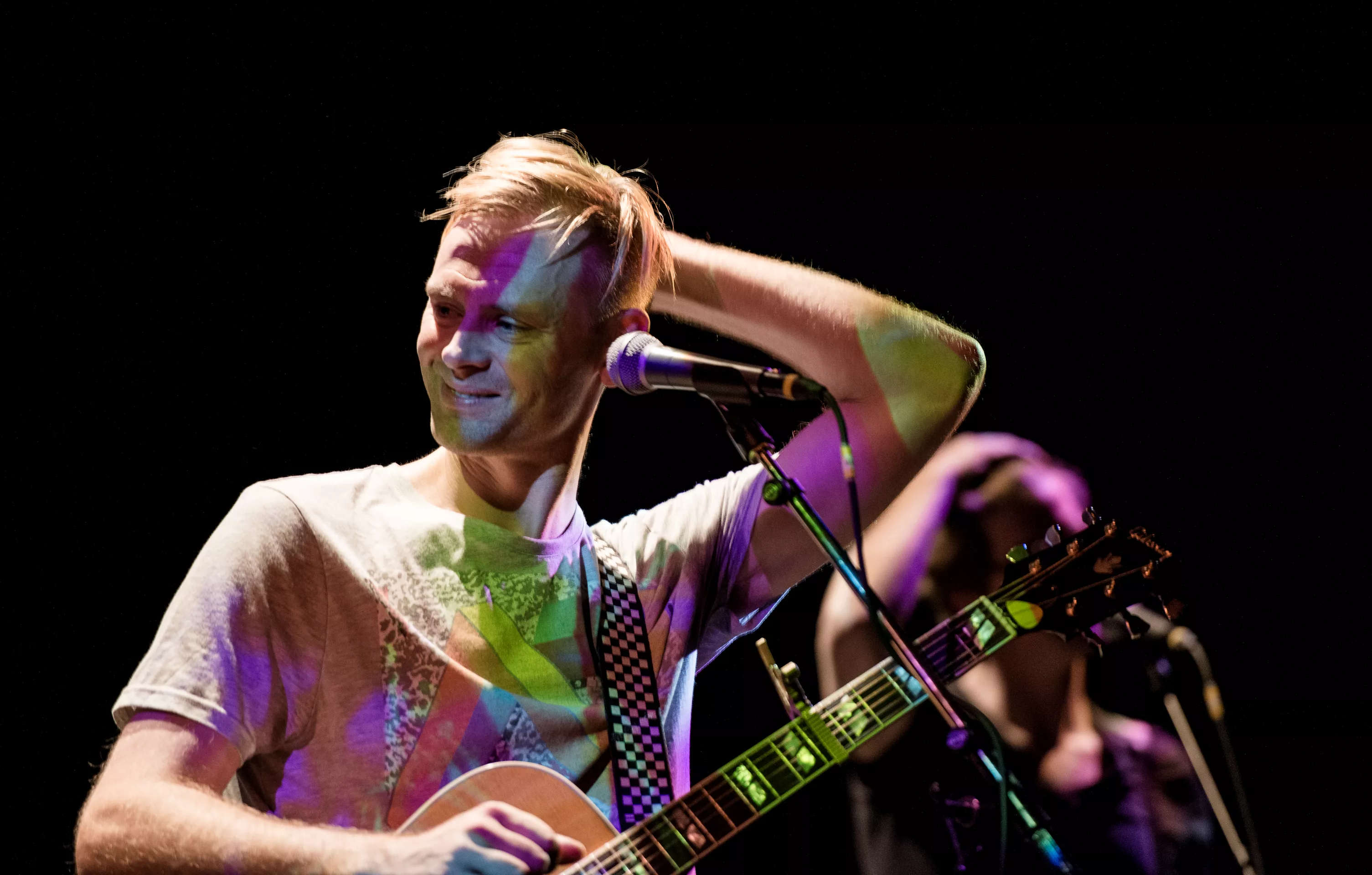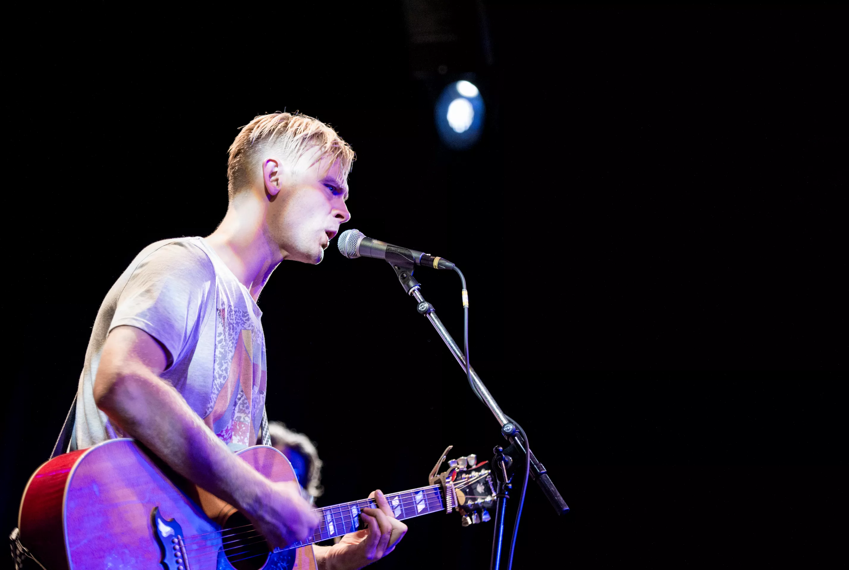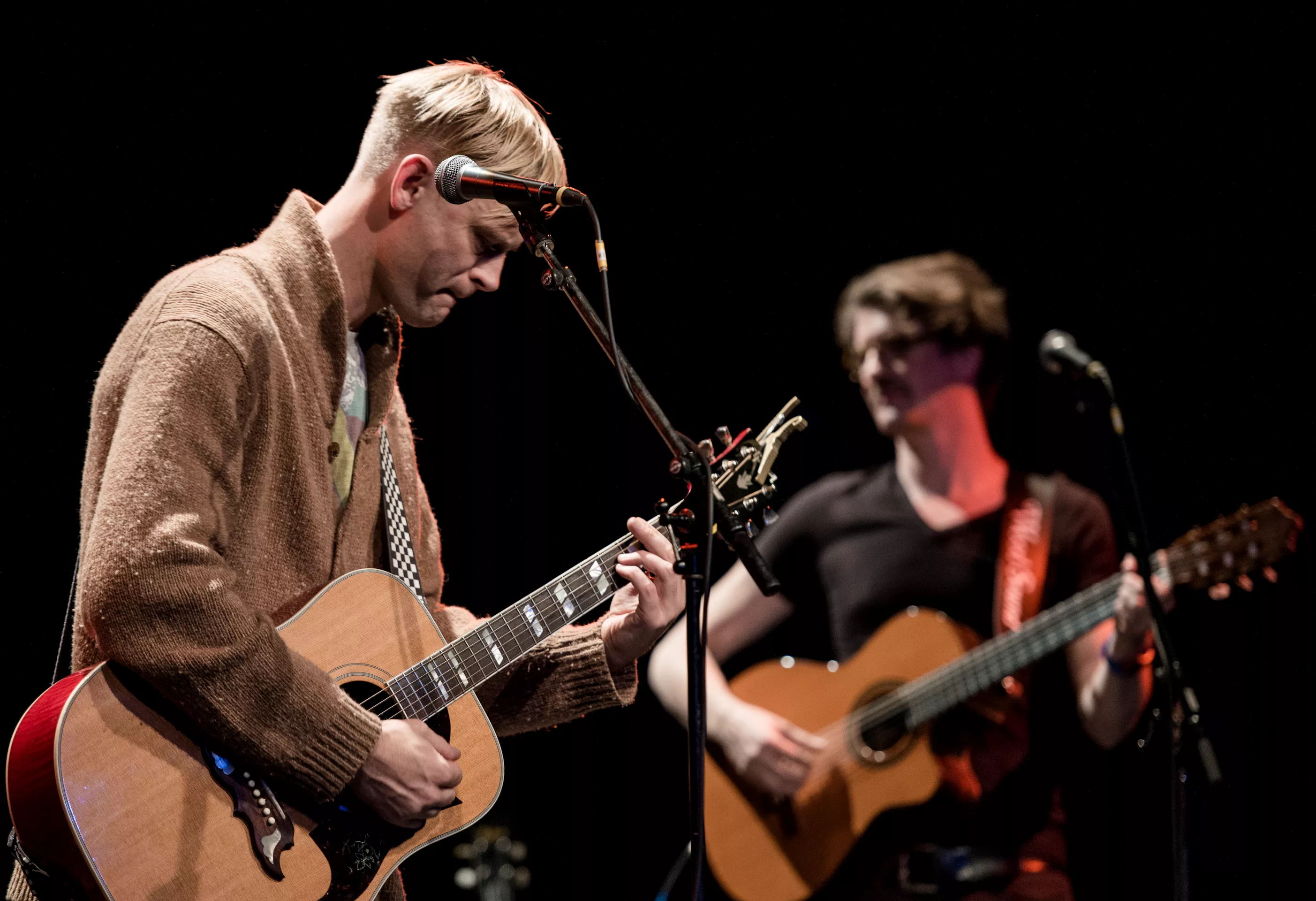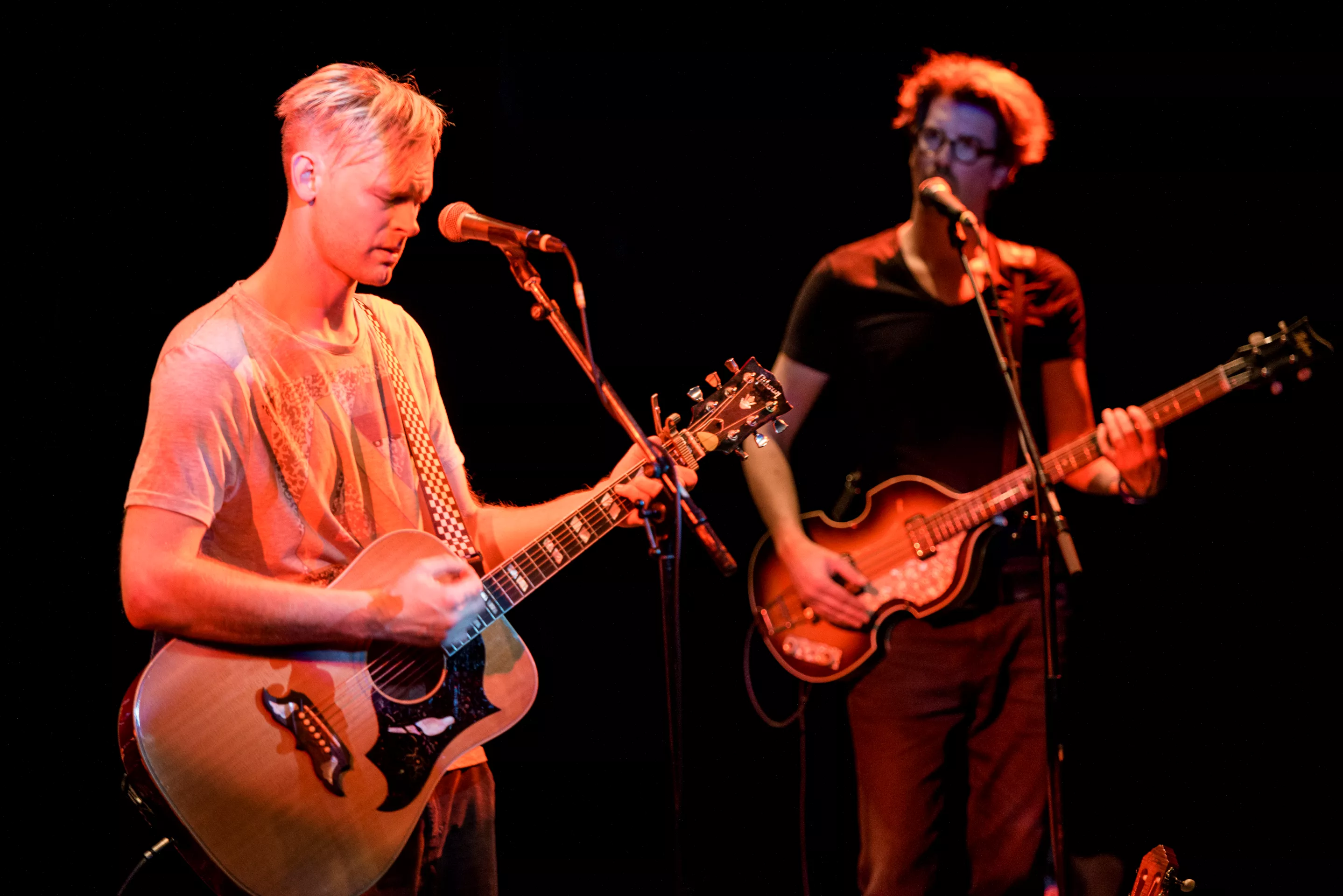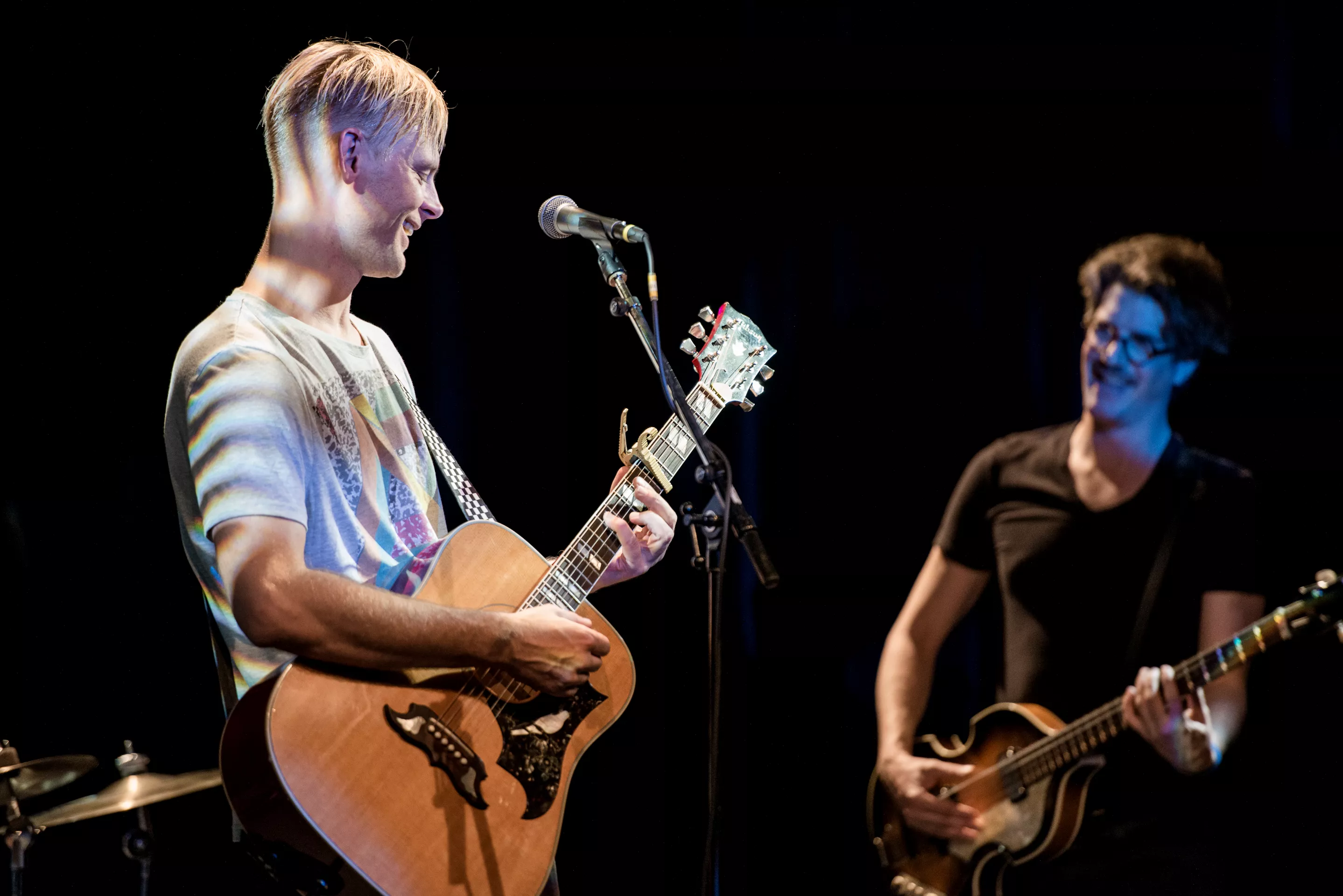 Hipsterlooket er komplet, da Nikolaj Grandjean betræder scenen i Jazzhouses nye smukke rammer med firserprint på T-shirten og kæmpe kameluldsstrik, som dog hurtigt ryger af grundet varmen. Mikkel Lomborg styrer keyboard og xylofon (og ikke mindst vokal), Christian Winther, der har valgt at forlade