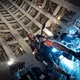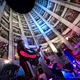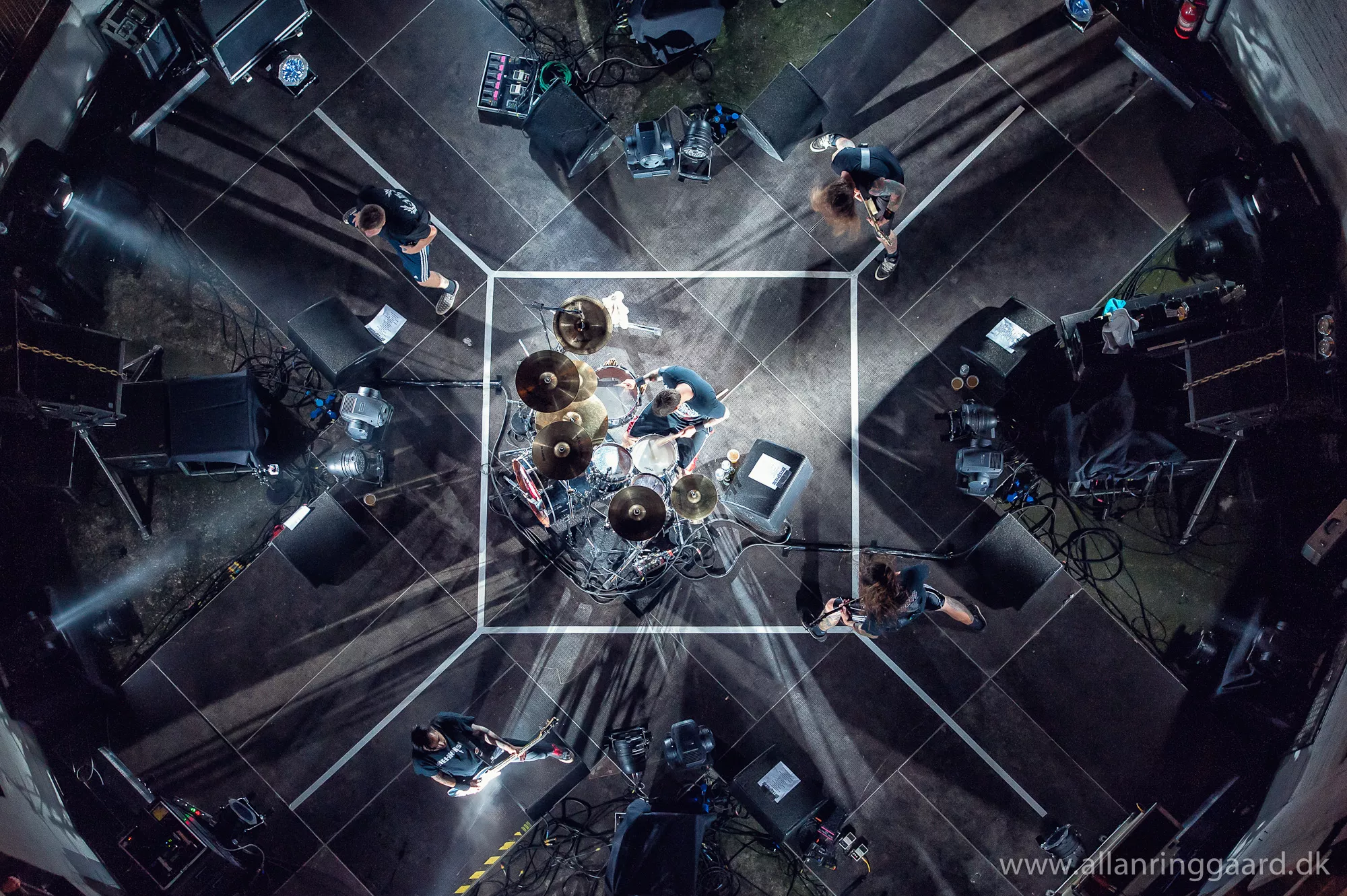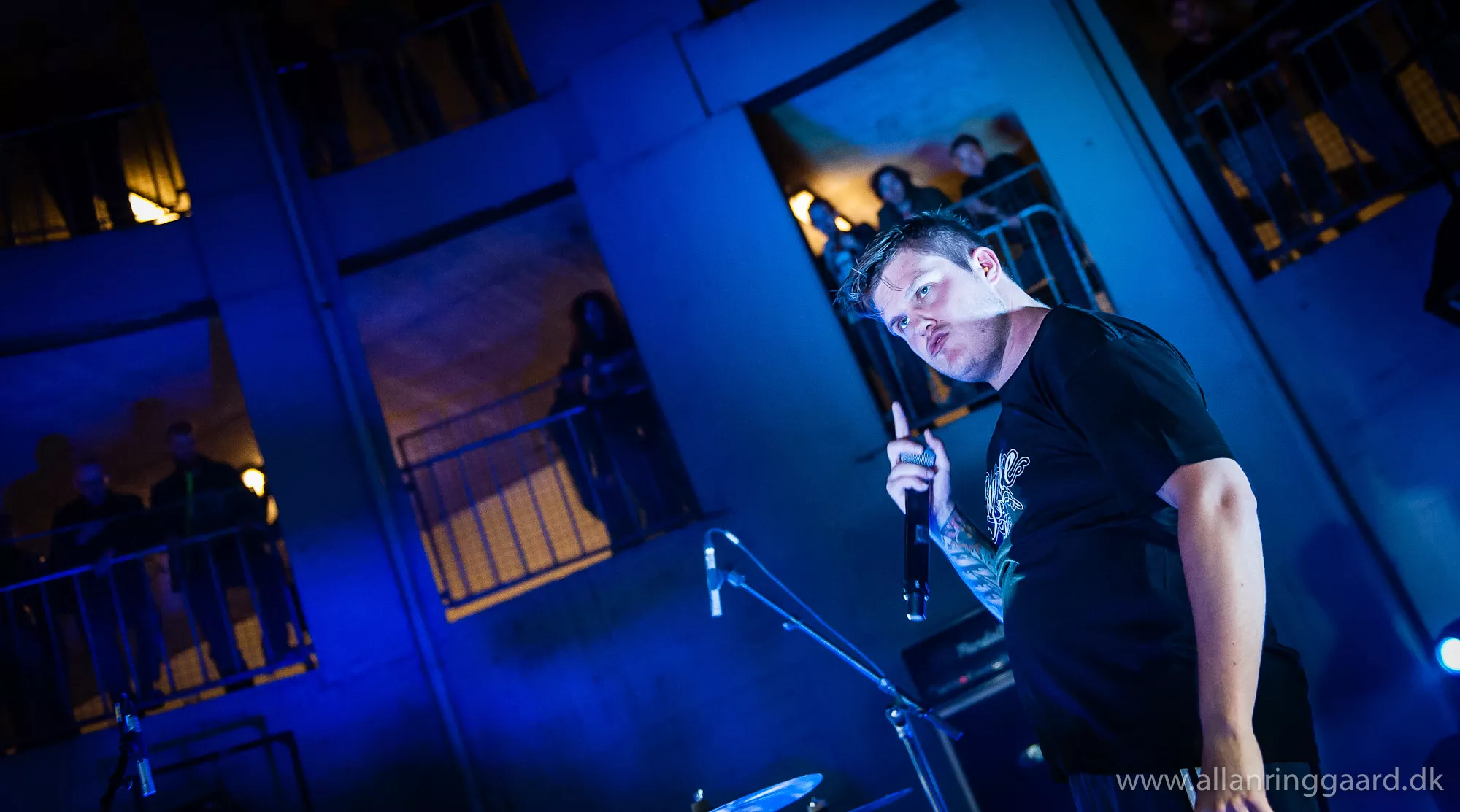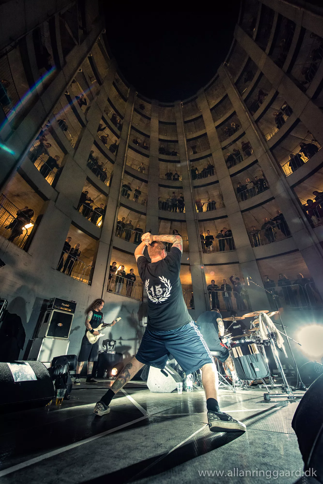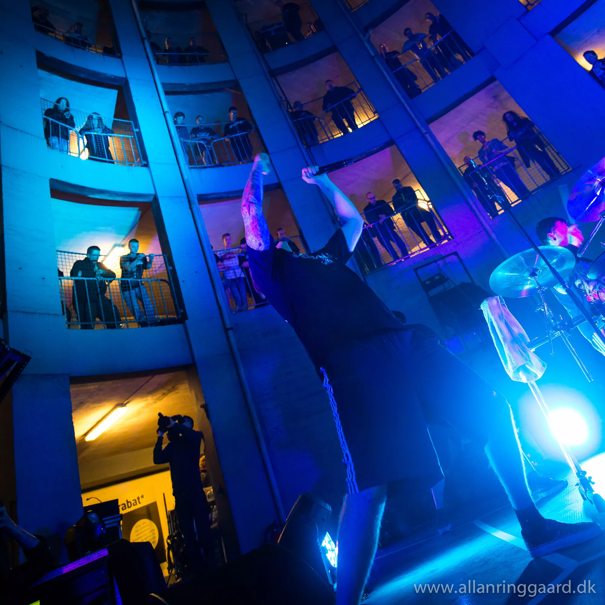 Publikum havde udsigt ned over Hatesphere, da de i aftes gav koncert i bunden af en syv-etagers betonrotunde i Sallings p-hus