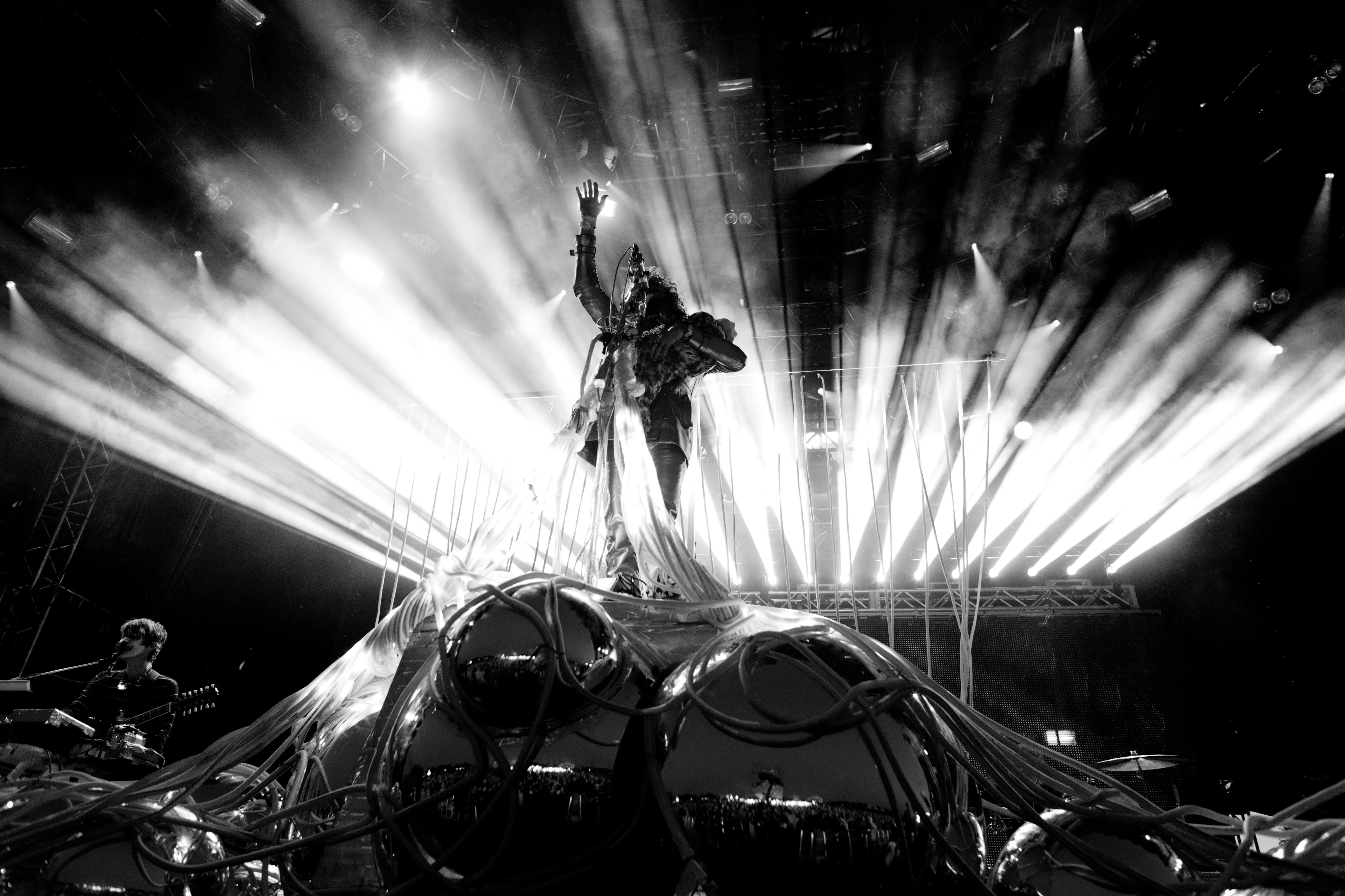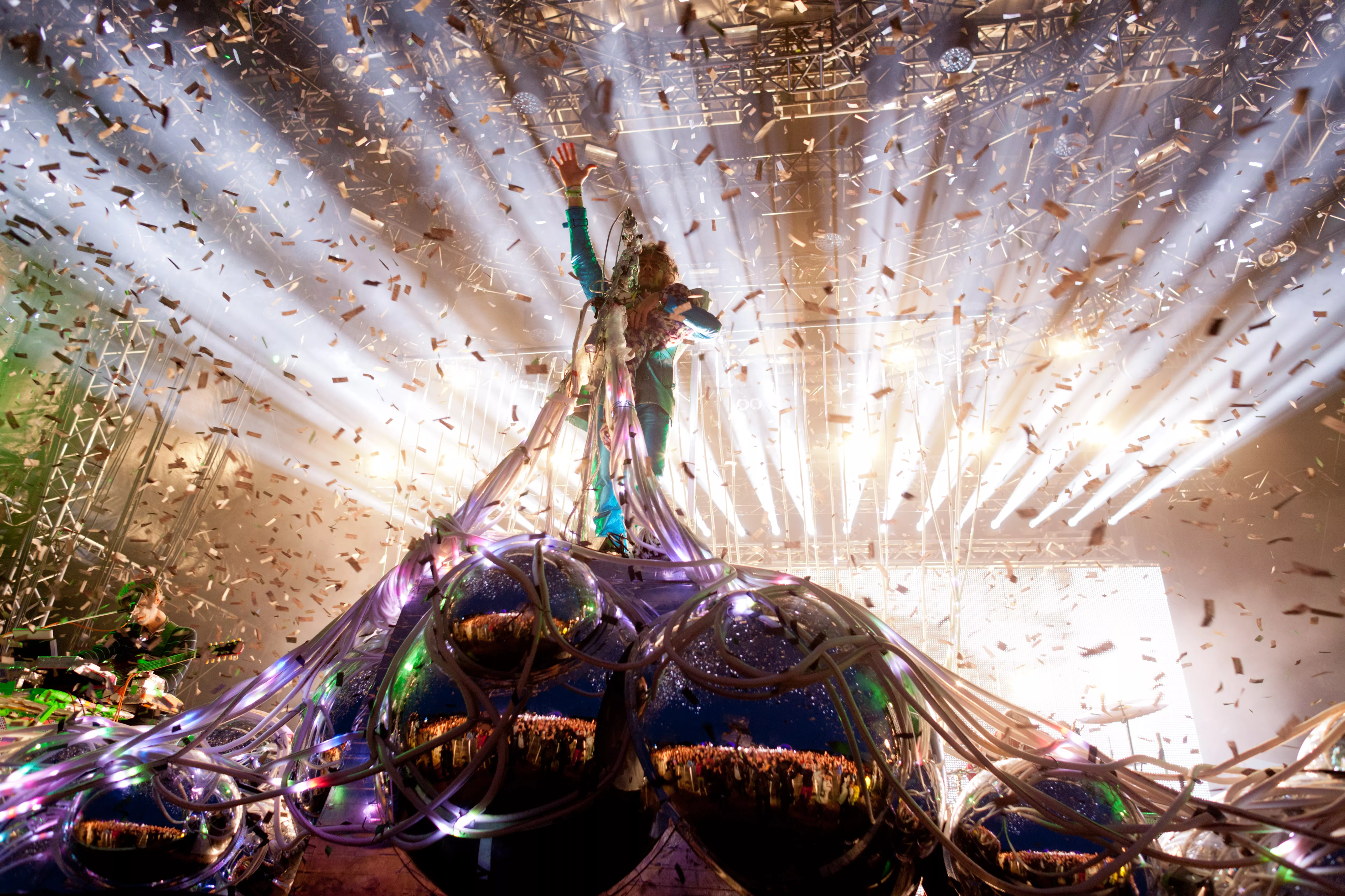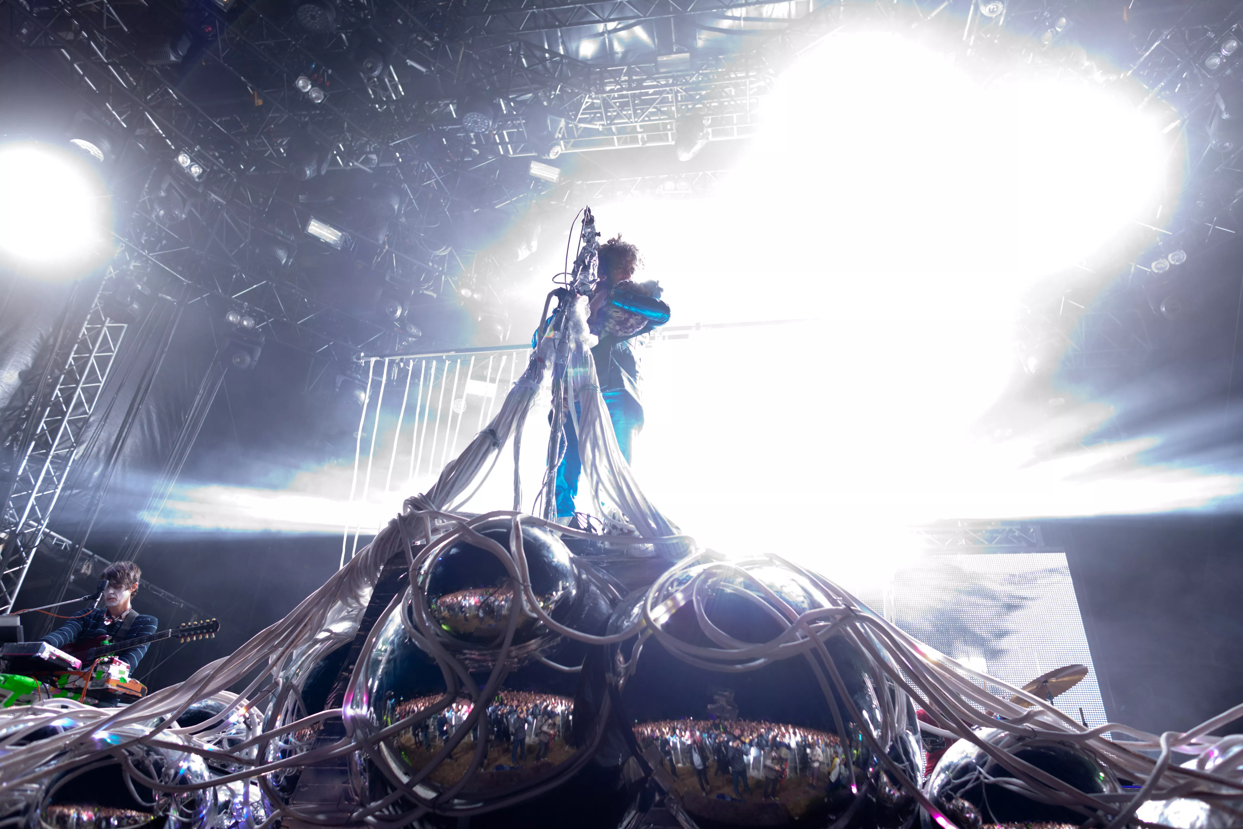 Wayne Coyne og kompagni er på, hvad der kunne ligne en umulig opgave i aften - som andet hovednavn i umiddelbar forlængelse af Nick Cave & The Bad Seeds' klassekoncert ovre på den grønne scene. Wayne ved det, for han overværede kollegaens koncert, som han senere fortæller os sent lørdag aften.
