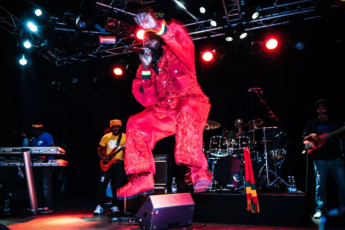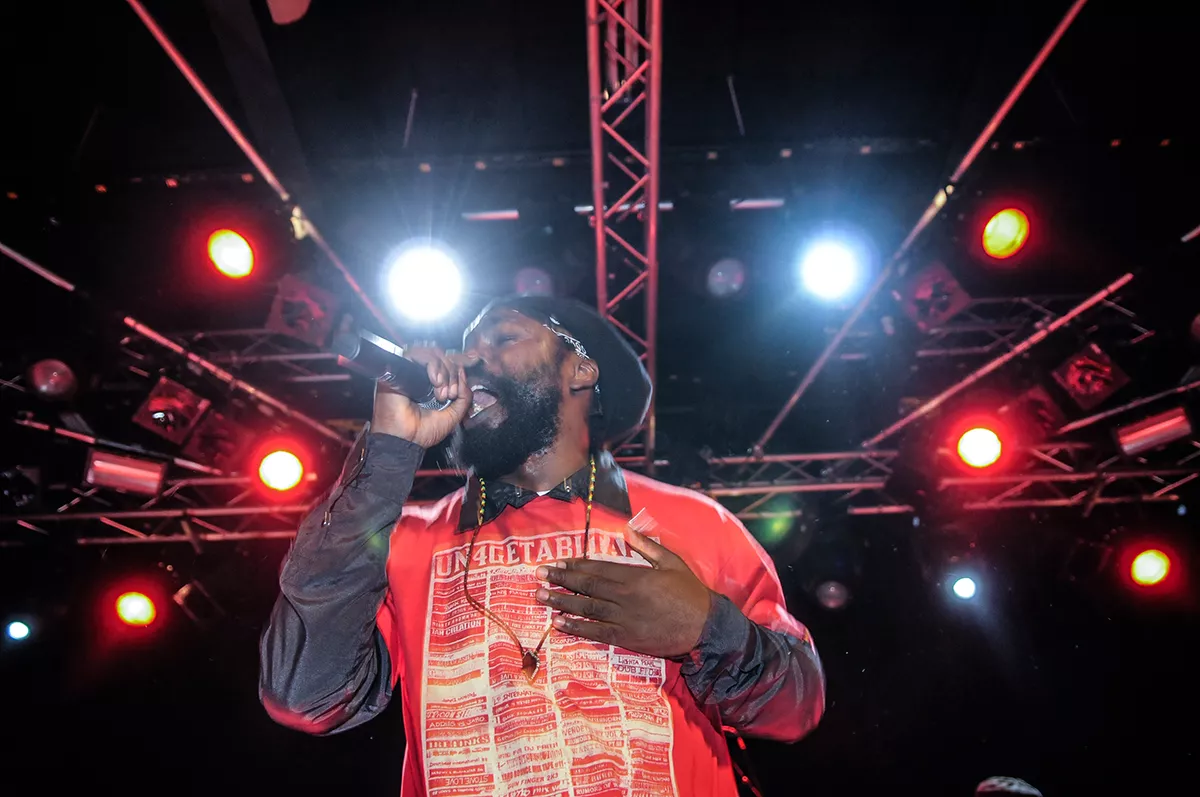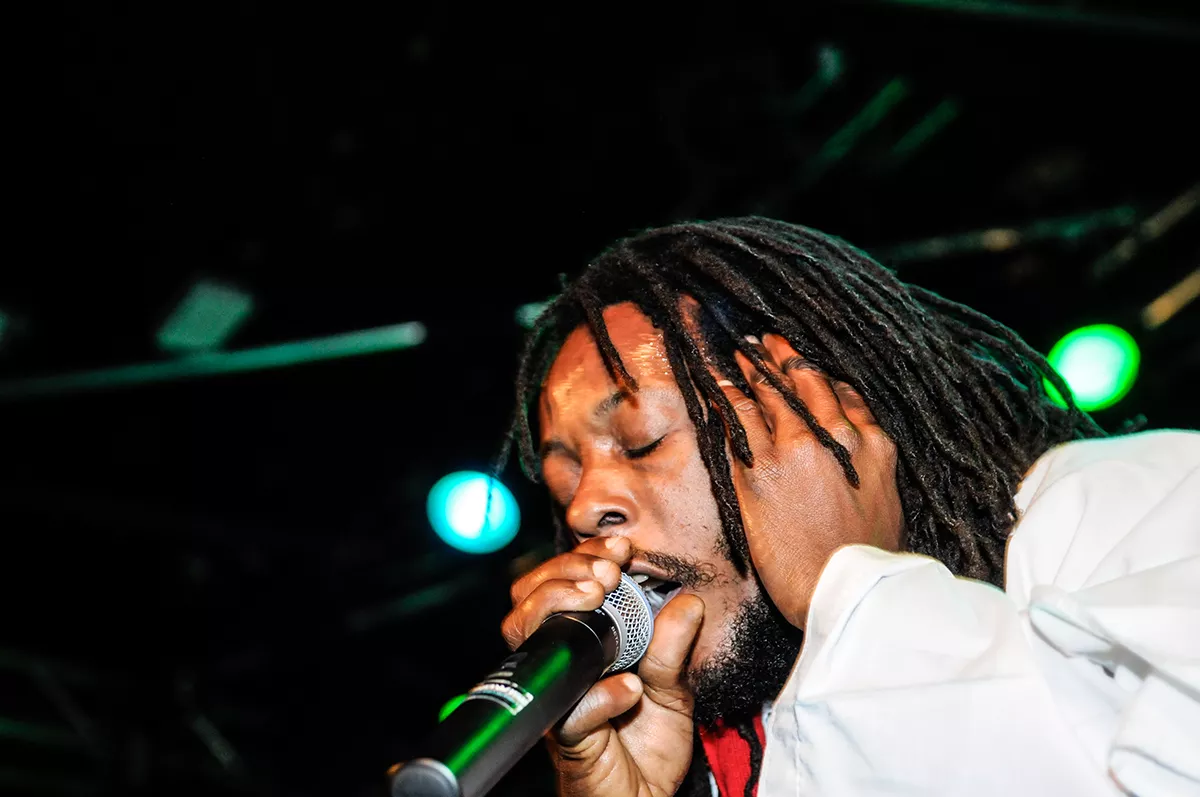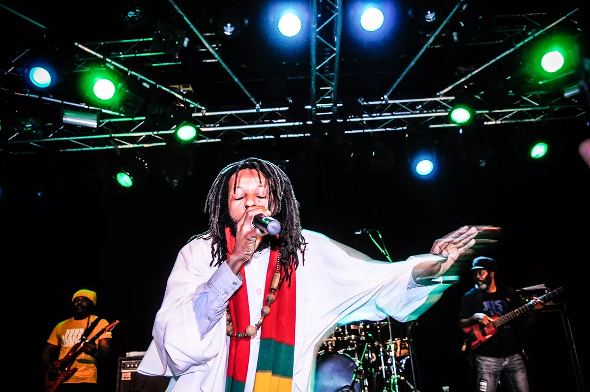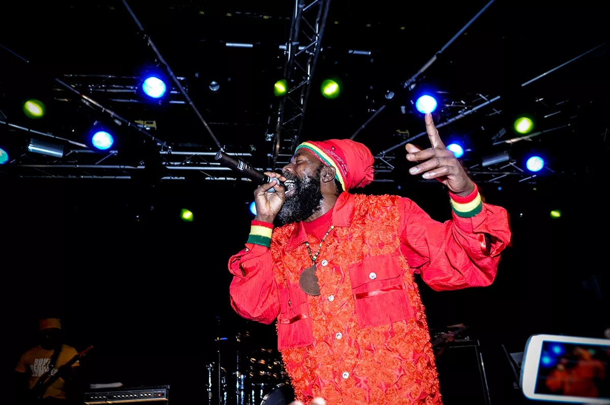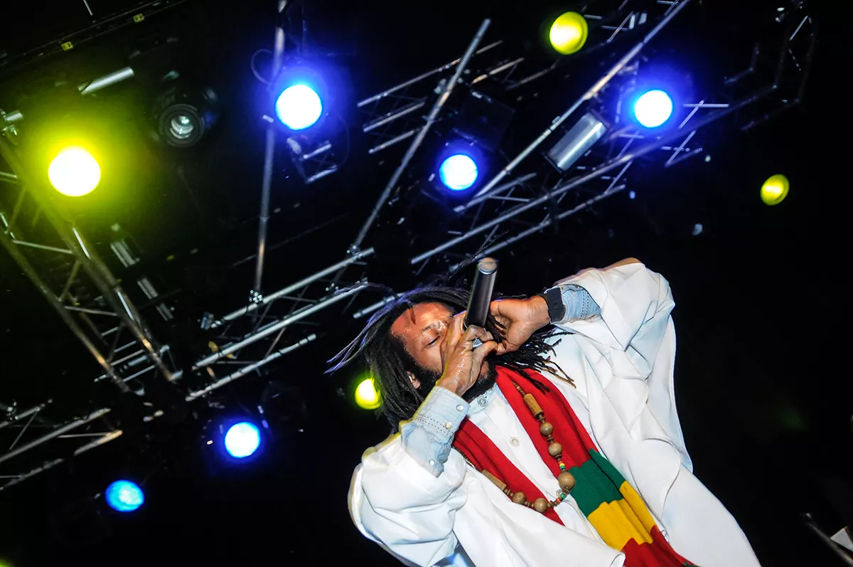 I timerne inden havde det aarhusianske reggaediskotek Kali-ma Sound varmet publikum op, og klokken 22:30 var det så tid til showtime. Med