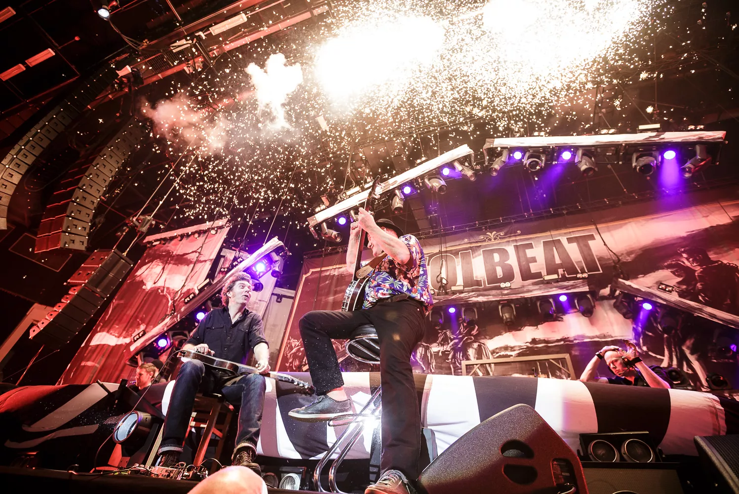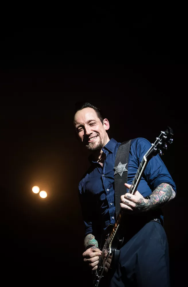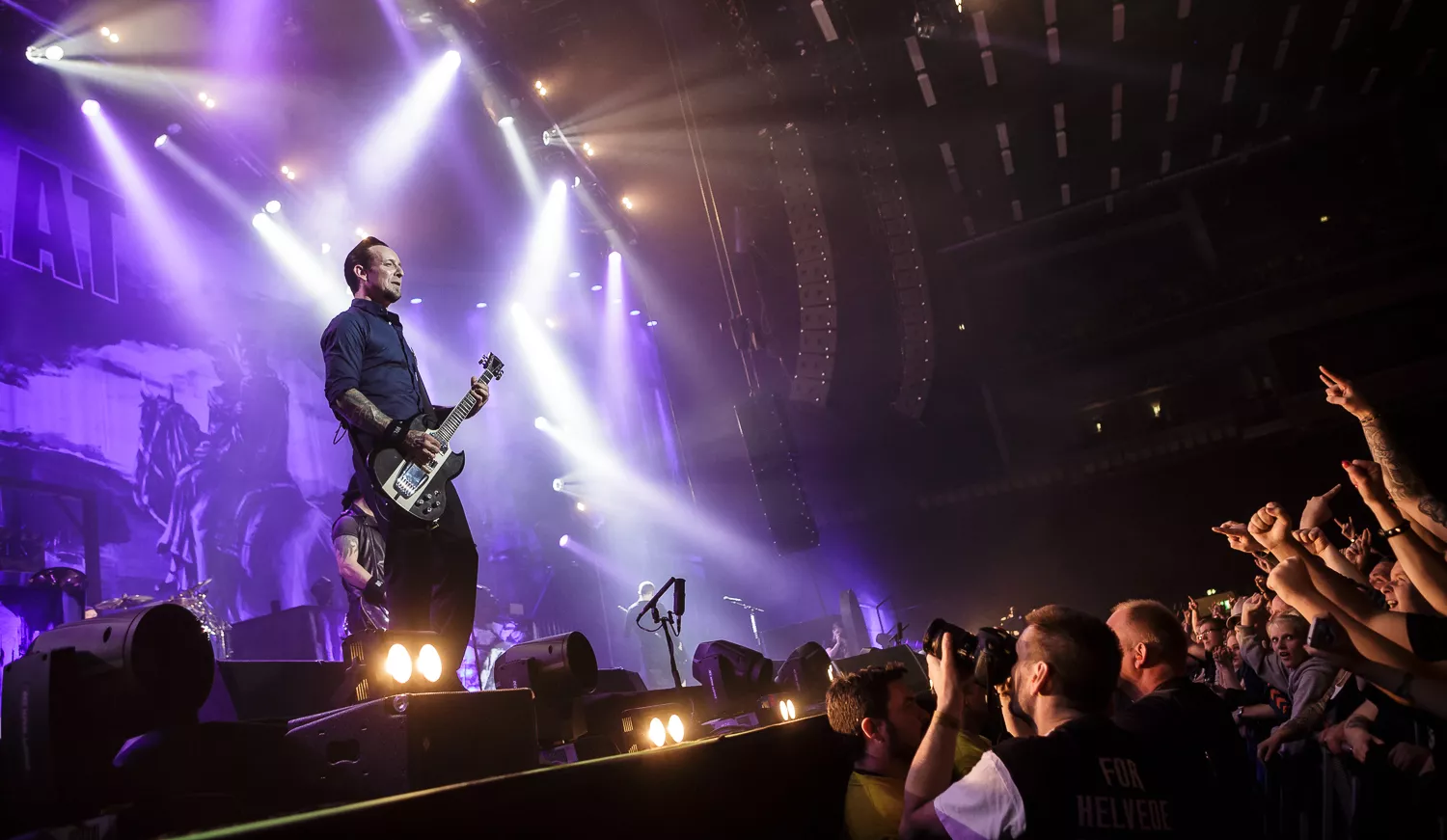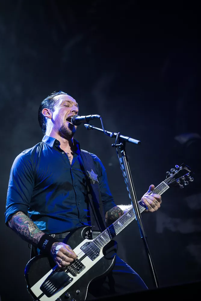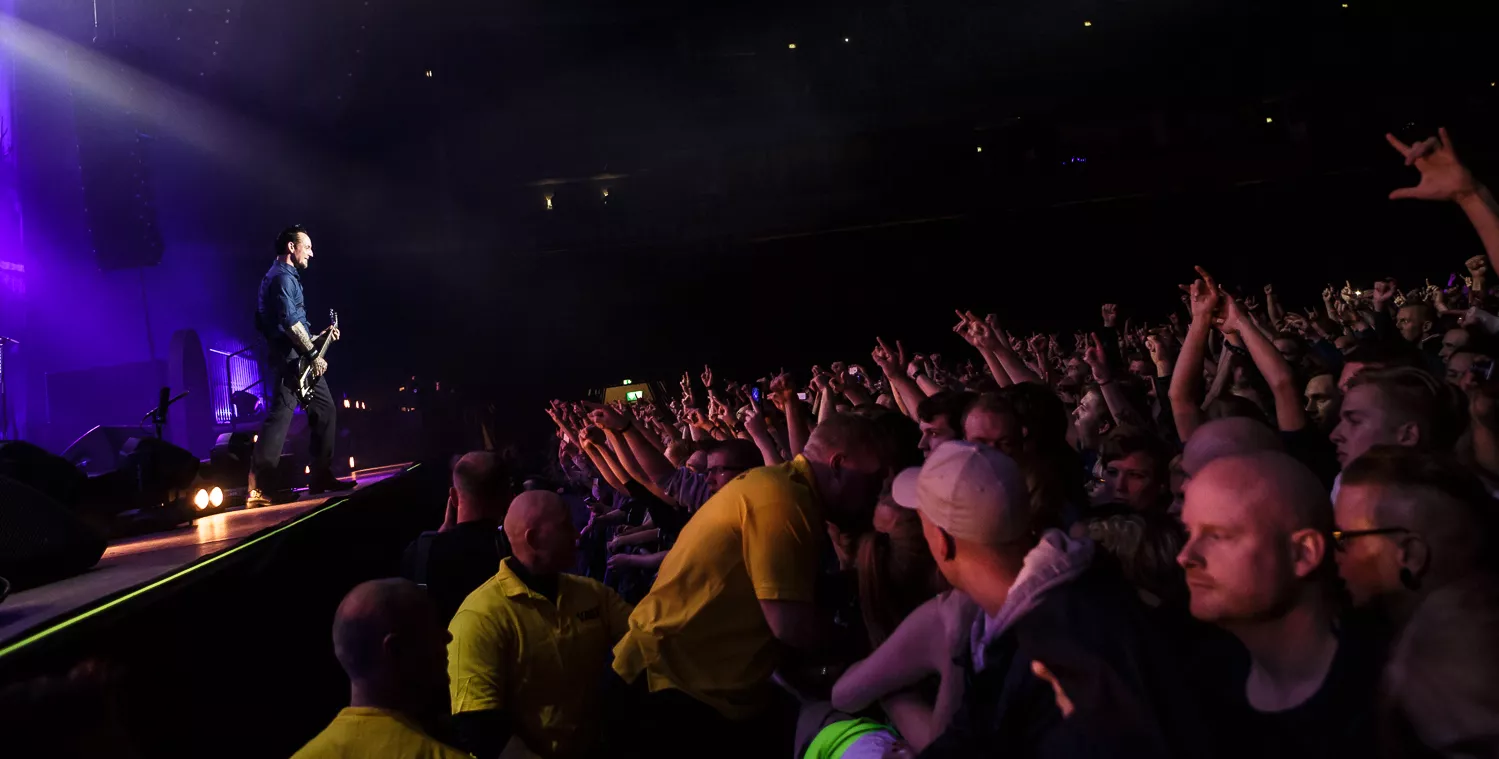 Det lykkelige og velsmurte band Volbeat leverede voldsomt mange numre denne aften, hvor der blev spillet nærmest indtil sidste sekund, bandet kunne tillade sig, hvorfor det klassiske sceneri med at klappe og vente på ekstranumre simpelthen var udeladt til fordel for mere tid sammen med publikum. Showet