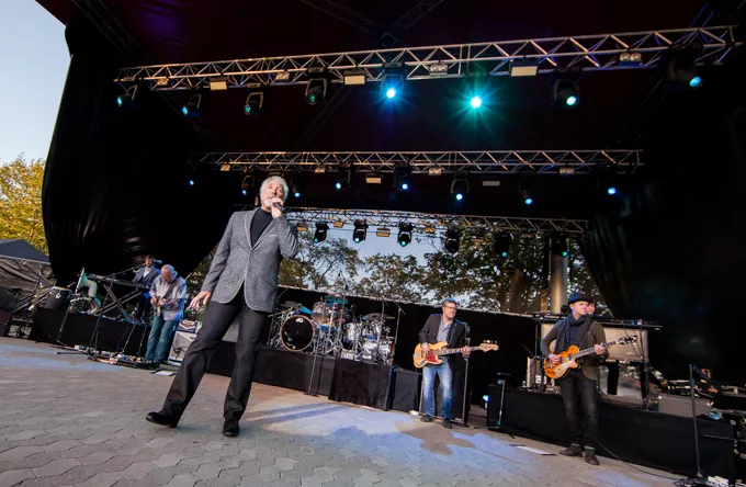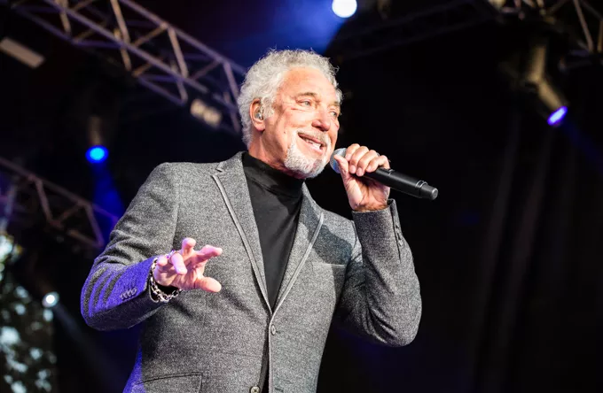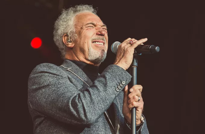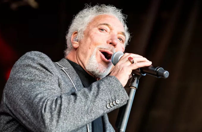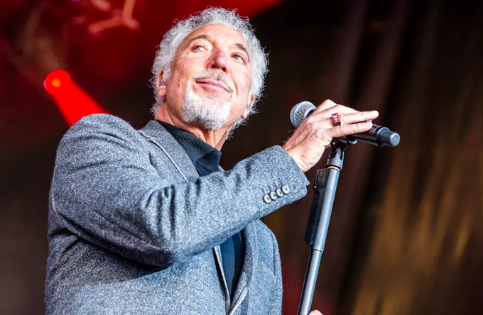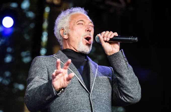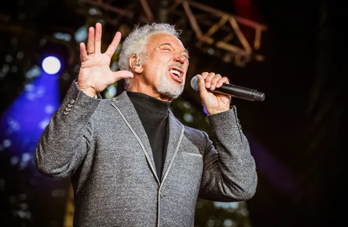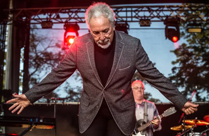 Klædt i sorte bukser, rullekravsbluse og skræddersyet grå jakke gik Tom Jones på scenen til tunge elektriske guitarer. Han beviste med det samme, at han stadig har testosteron-stemmen i behold og lagde fra kaj med "Burning Hell" fra det roste album "Praise & Blame" fra 2010, Jones' næstnyeste