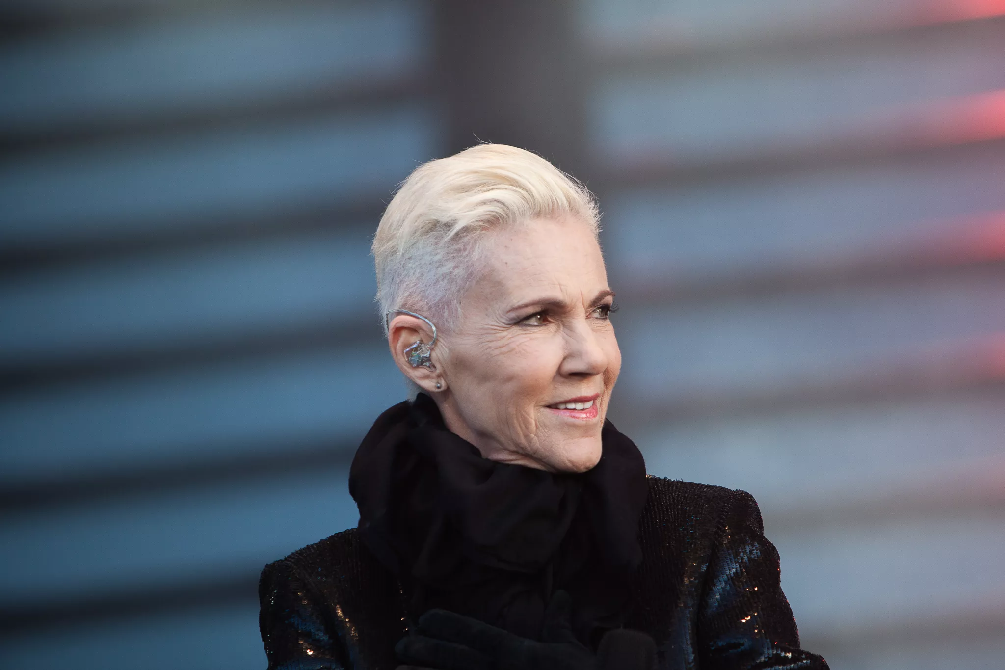 56-årige Marie Fredriksson, den ene halvdel af Roxsette-duoen, blev forsigtigt hjulpet på scenen og støttet over til sin lave stol på scenekanten, hvor hun sad resten af koncerten og lignede en syg og kraftløs person. Foran sig havde hun en varmekanon, som blev udskiftet og tilset med jævne mellemrum,
