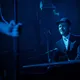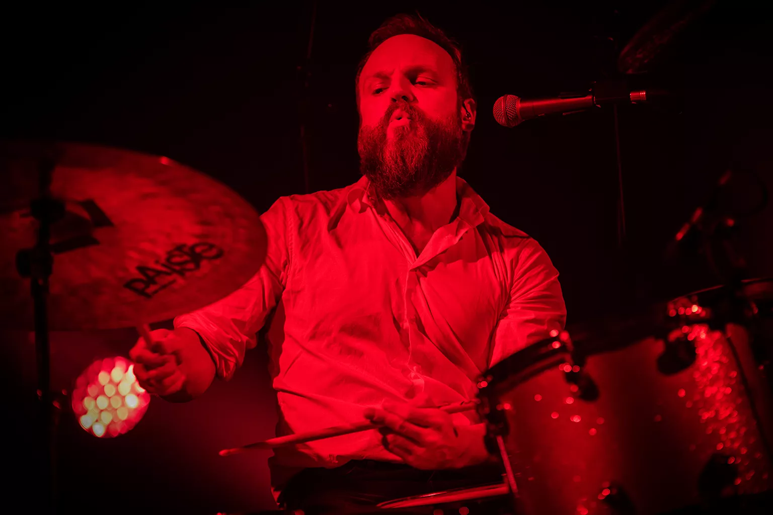 De står på række, de fem musikere i livebandet Love Shop. Holder hinanden om skuldrene og bukker. Yderst til venstre står Thomas Duus, den kraftfulde trommeslager med fuldskægget. Derefter kommer den eksplosive guitarist Mika Vandborg, der med sit franske moustache og trekantede underskæg snildt kunne