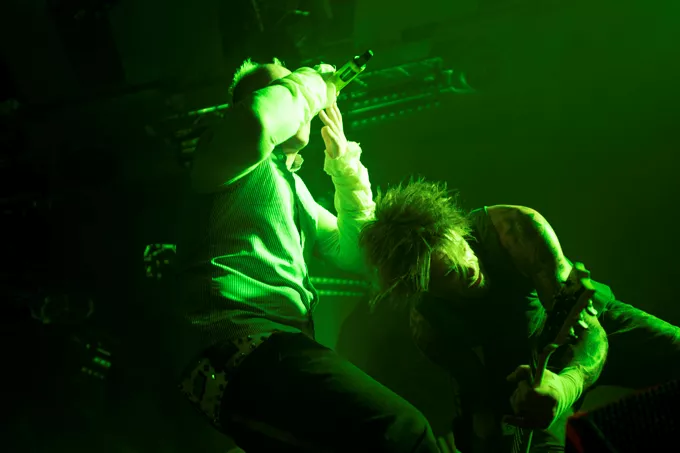 Stemningen i salen var løssluppen og street i ventetiden op til klokken 21. Vagterne foran scenen hilste på de forreste publikummer, kastede håndtegn og satte en stemning langt fra det hårdtpumpede og bidske univers, der blev sluppet løs klokken 21.07.