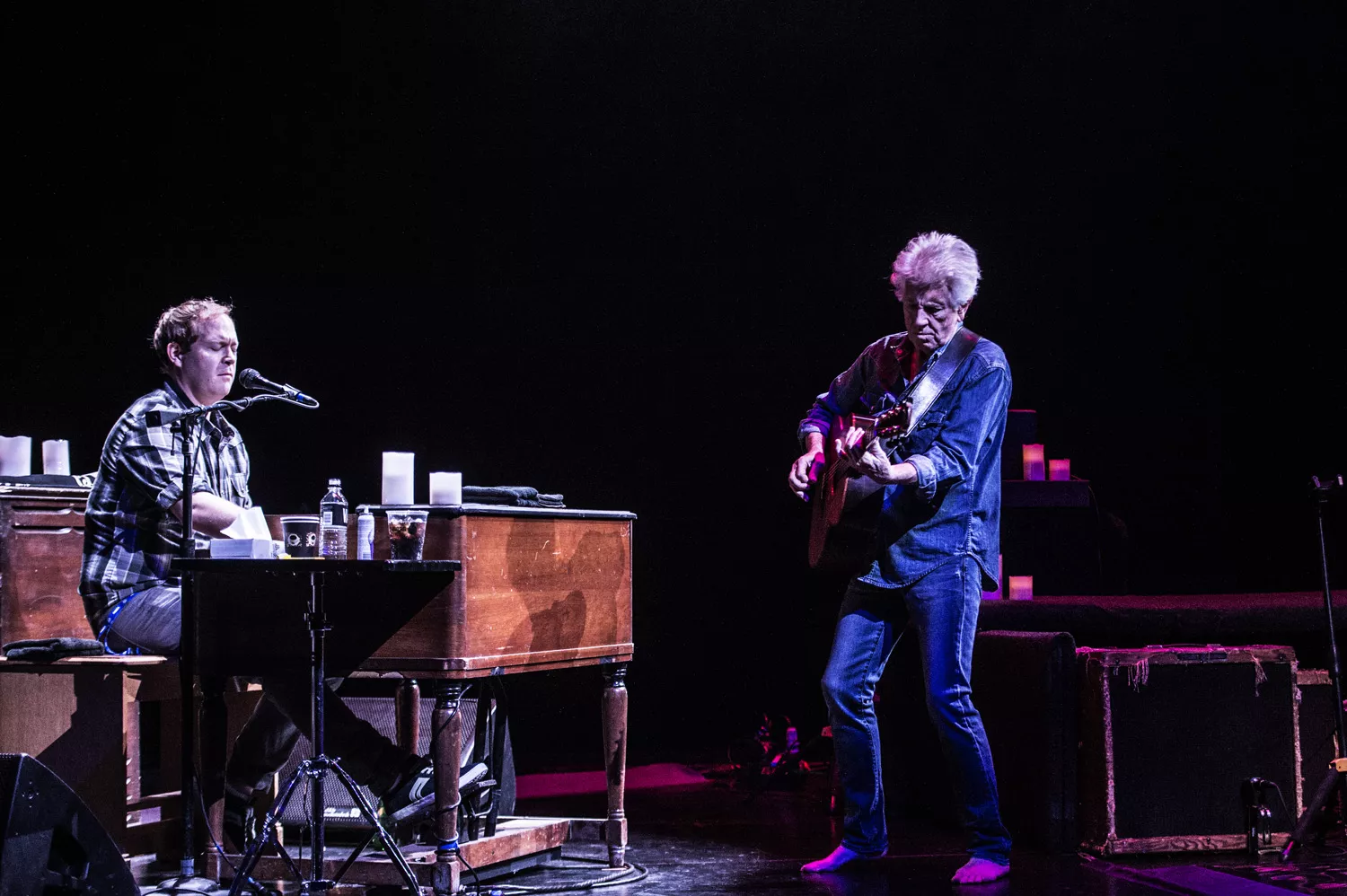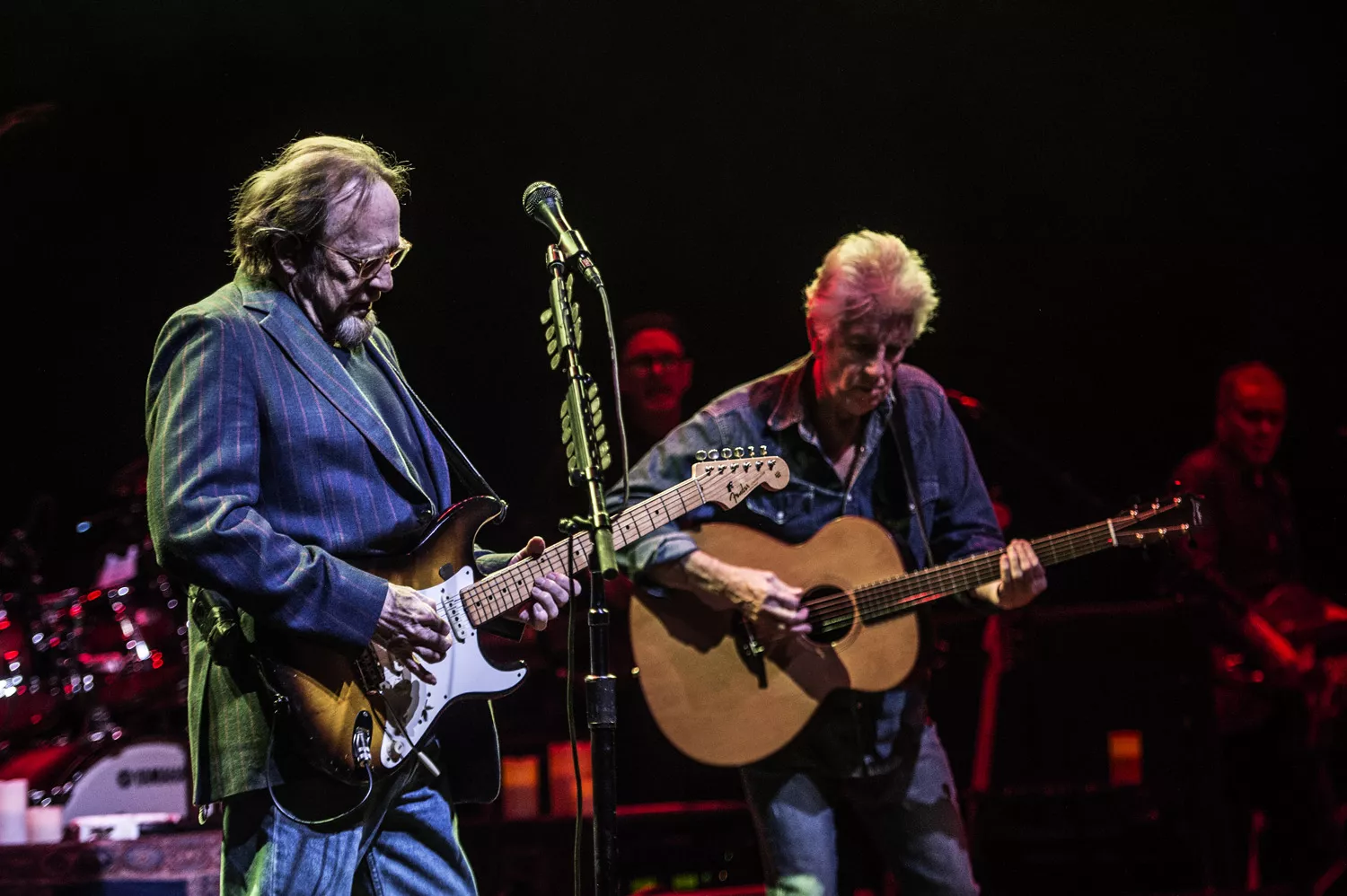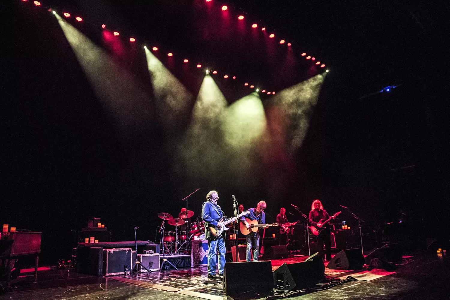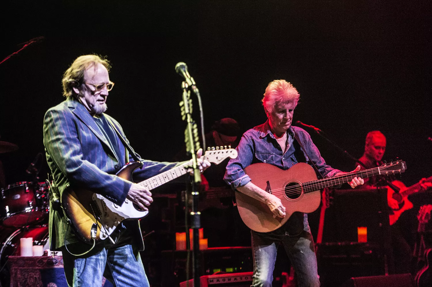 Der er lagt arabiske tæpper ud på scenegulvet, salen summer af forventning, og så kommer de ind. Tre gamle, musikalske makkere: Graham Nash i denimtøj og bare tæer, rocklegenden David Crosby i jakkesæt og Stephen Stills klar til at bekræfte, at han – som Nash siden proklamerer – stadig