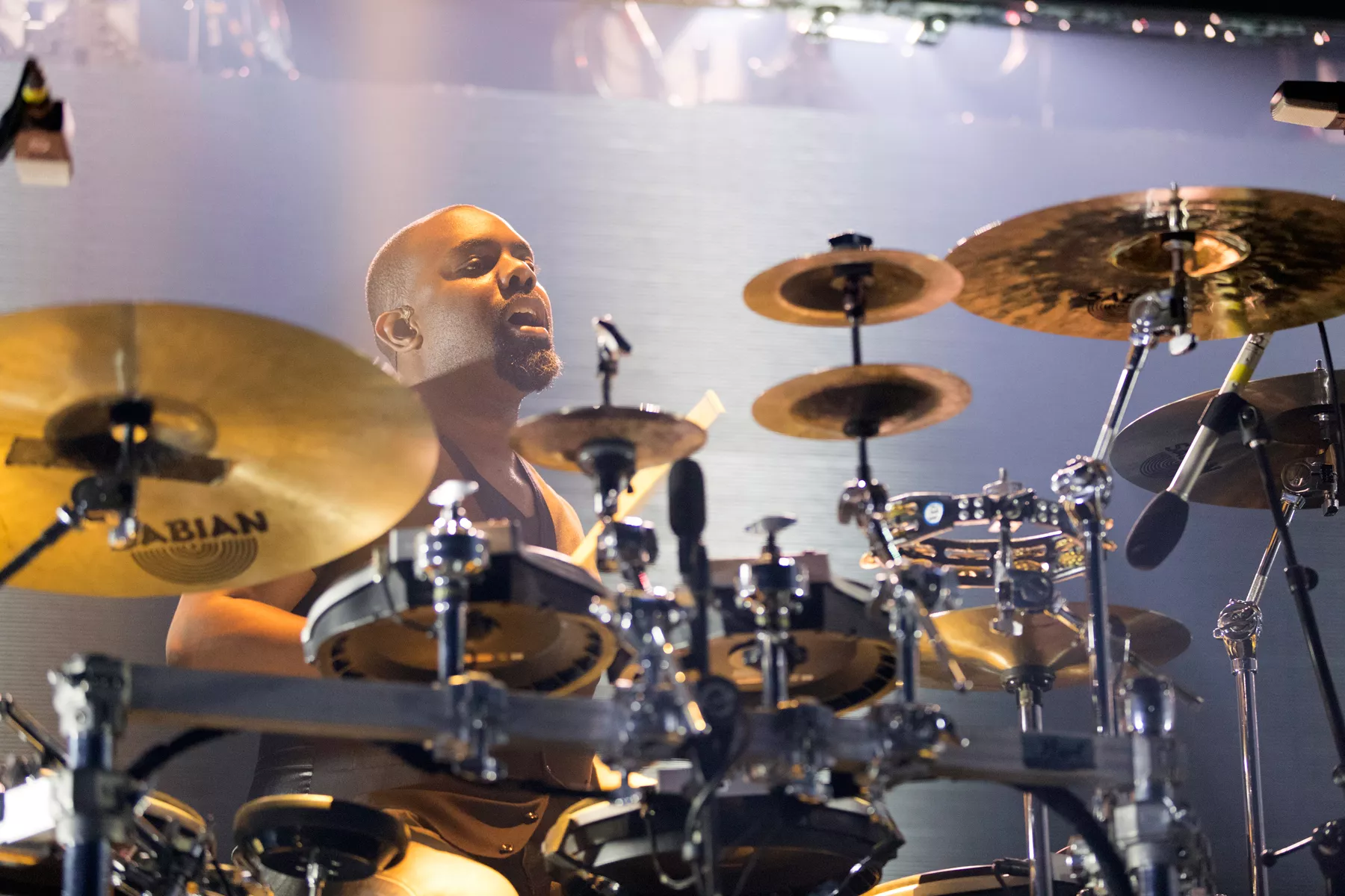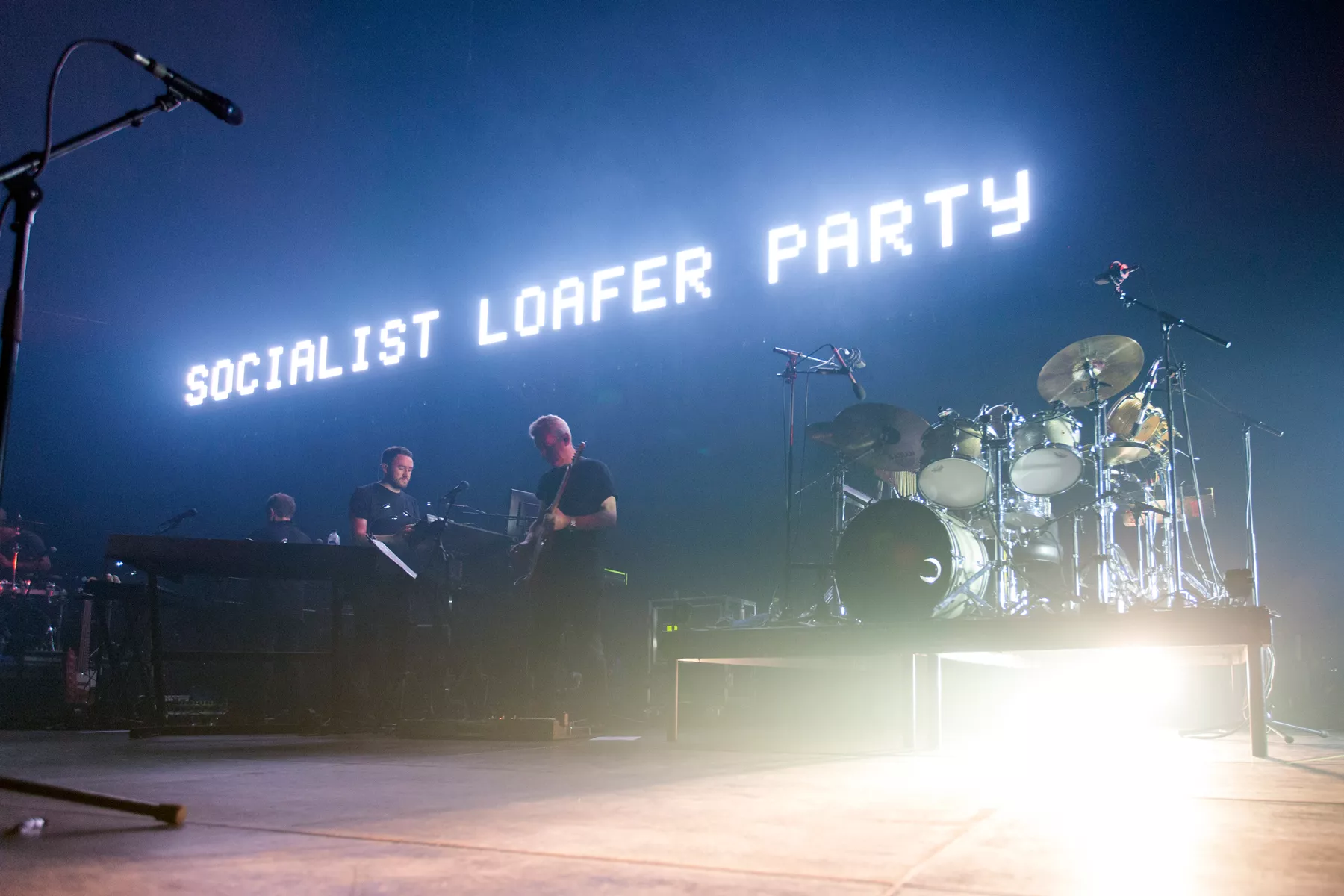 Det gigantiske bagtæppe lyses op af tusindvis af dioder, der blinker med paradoksale budskaber, der i i disse “Stranger Things”-dage leder tankerne hen på at kommunikere med vrangsiden – der, hvor det ubevidste, hinsides lever. På en måde er Massive Attack
