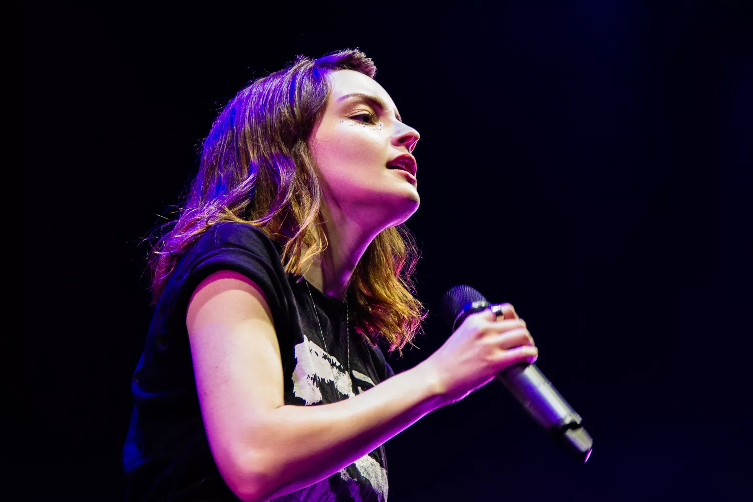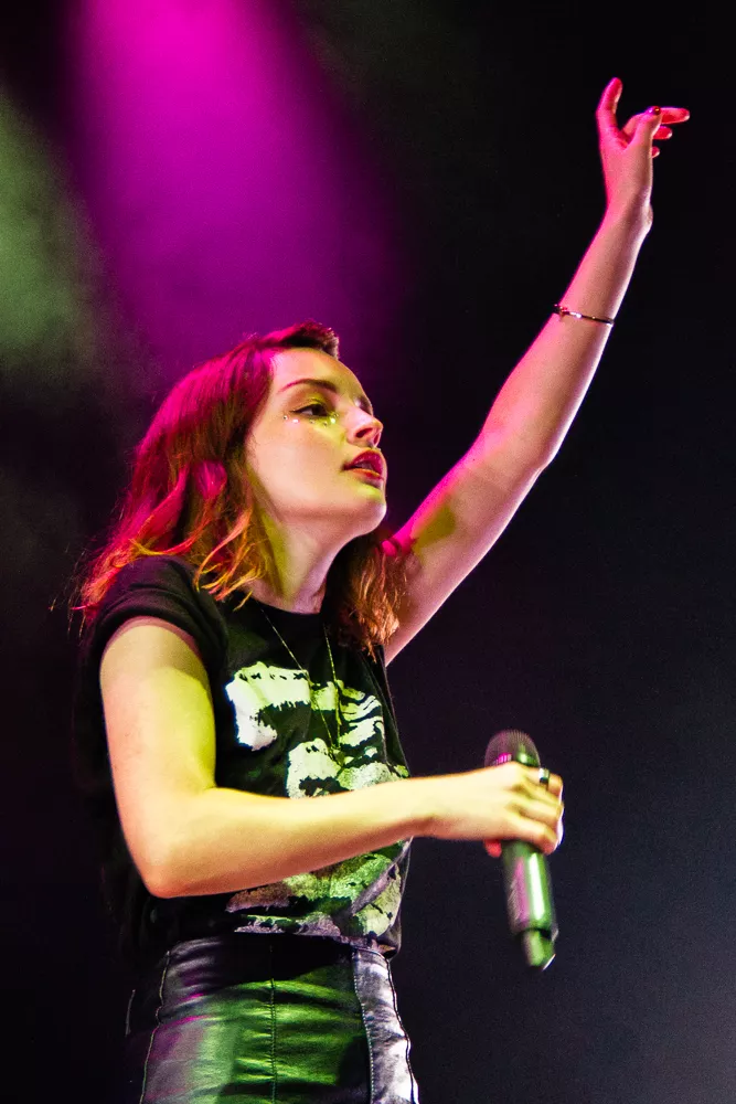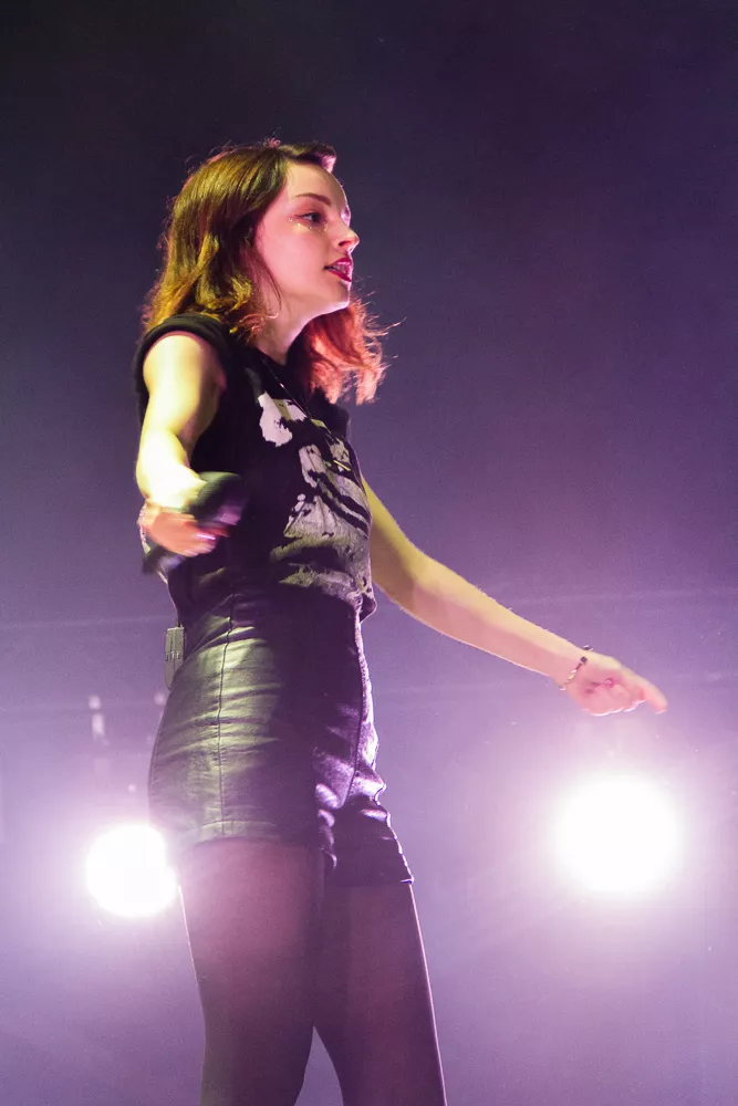 Pigerne ved siden af mig diskuterede livligt, om man kunne danse til Chrvches midnatskoncert på Arena og om, hvilken slags musik, de spiller. Et vigtigt parameter for de unge damer, der havde entreret teltet i håbet om en fest. En fest det fik de, for de britiske