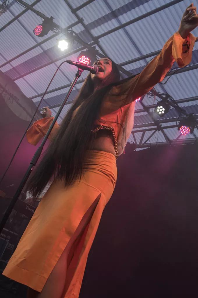 Den unge danske r&b/soul-sangerinde Emilie Ramirez har i år haft et pænt hit med ”Tranquilizer” fra debut-ep’en ”Grandma Said”, og tidligt lørdag aften står hun på Danmarks Grimmeste Festival intime Bonzai-scene med et lille band bestående