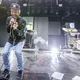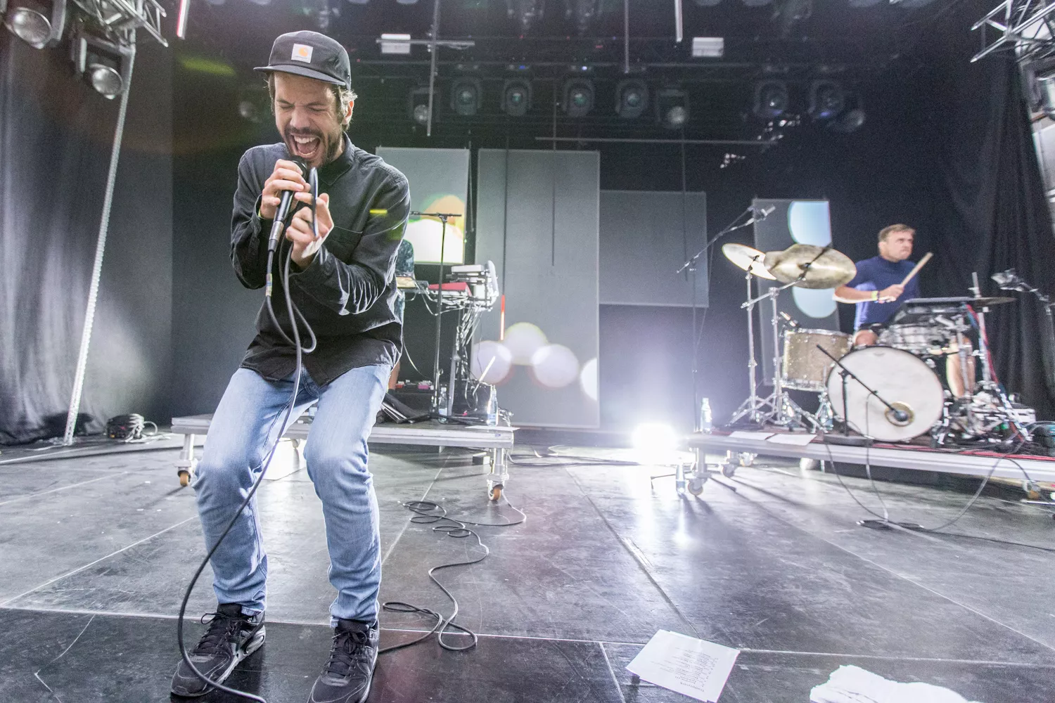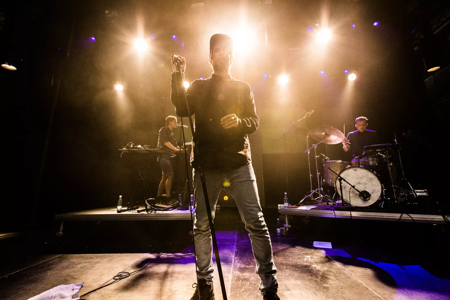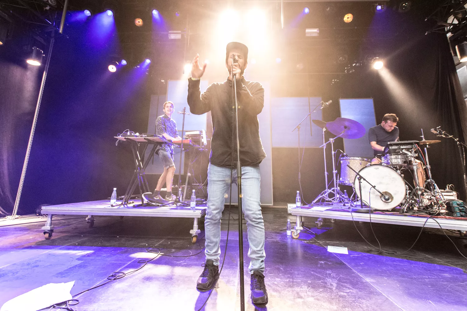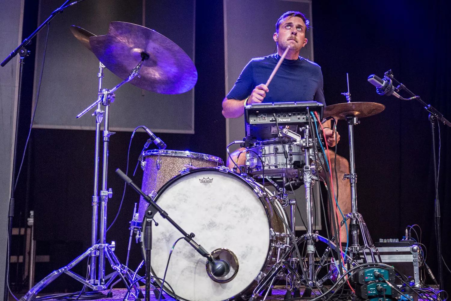 Peter Wangel og hans sidemen på Royal Stage var begunstiget af, at der fredag i minutterne før koncertstart kom noget, der mindede om et øjebliks skybrud. Selv de mest hårdkogte blandt publikum måtte søge ly for vandet, som stod ned i stænger. Og ly var