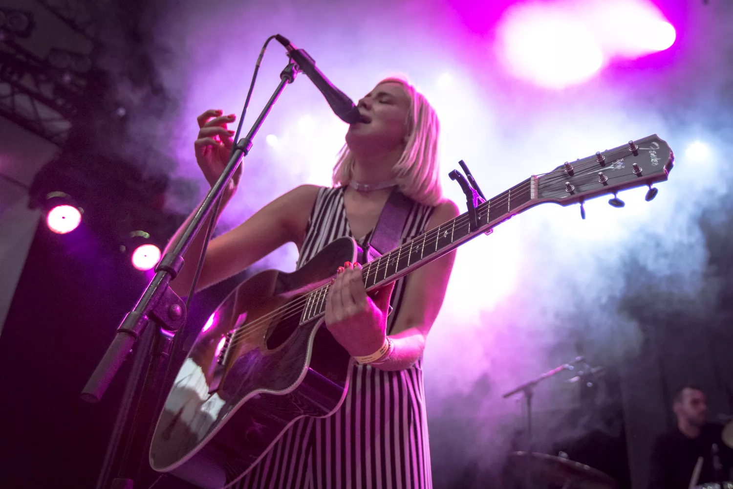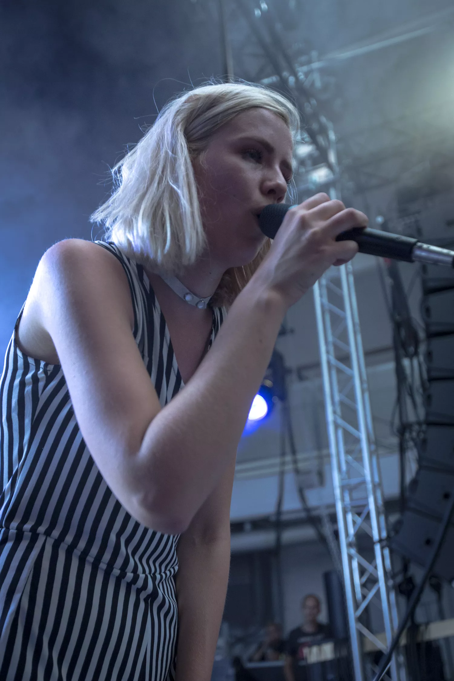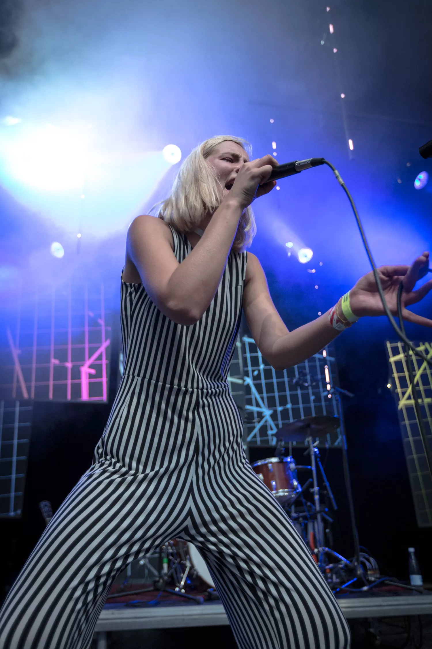 Den norske sangerinde Dagny indtog med sine lange stænger og striber Trailerpark Festivals Royal Stage fredag kl. 20 – på et tidspunkt, hvor der var langt imellem publikummerne på gulvet. Dagny var helt tydeligt ikke et navn, der på forhånd havde tiltrukket sig
