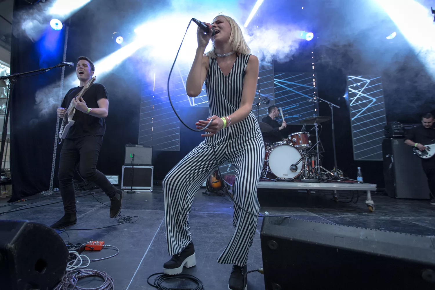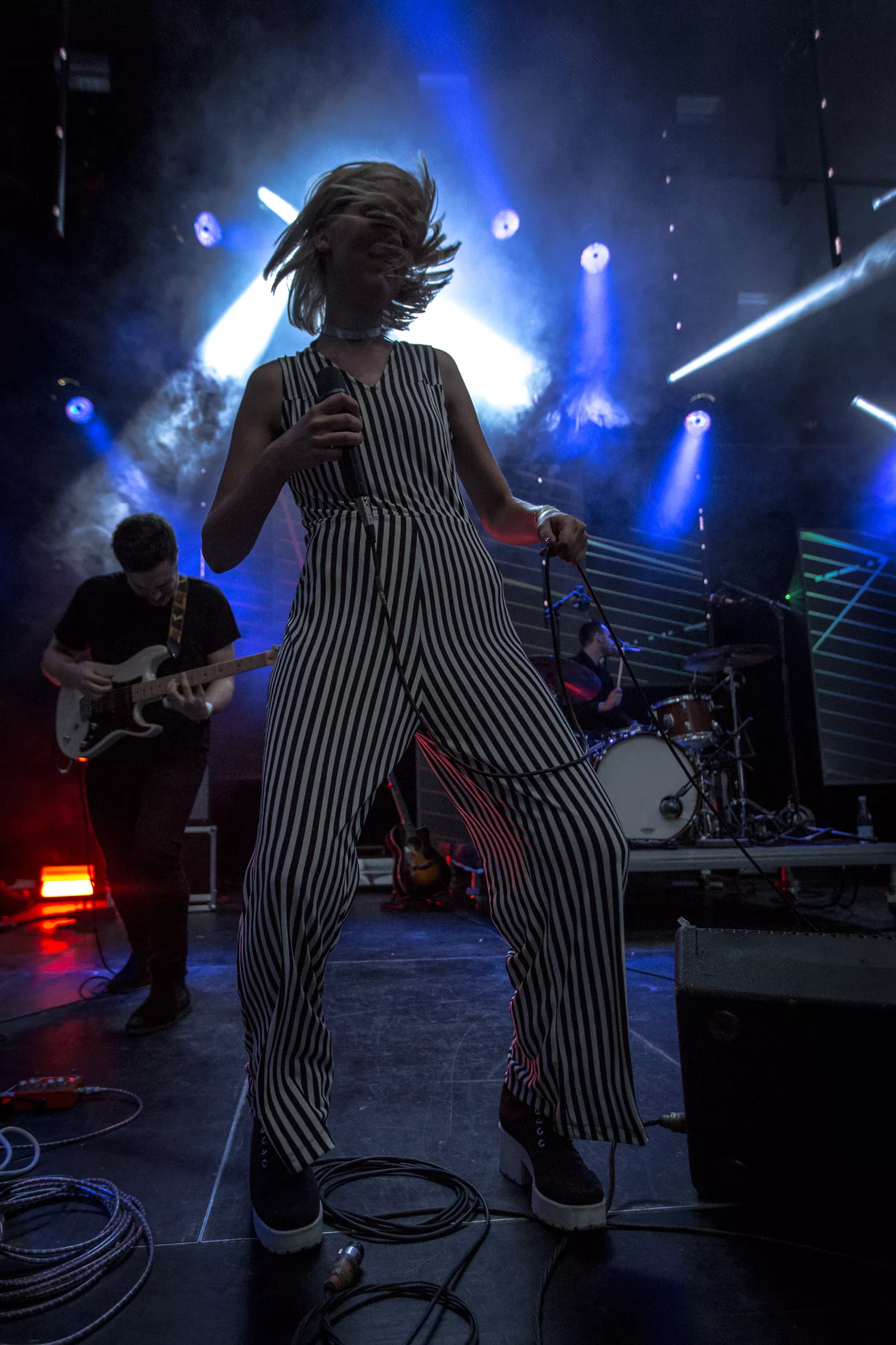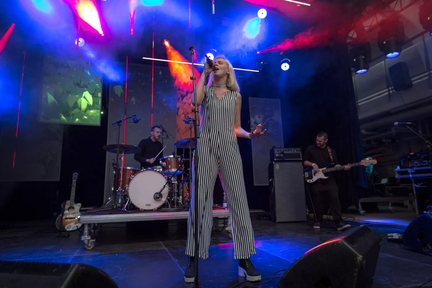 Den norske sangerinde Dagny indtog med sine lange stænger og striber Trailerpark Festivals Royal Stage fredag kl. 20 – på et tidspunkt, hvor der var langt imellem publikummerne på gulvet. Dagny var helt tydeligt ikke et navn, der på forhånd havde tiltrukket sig