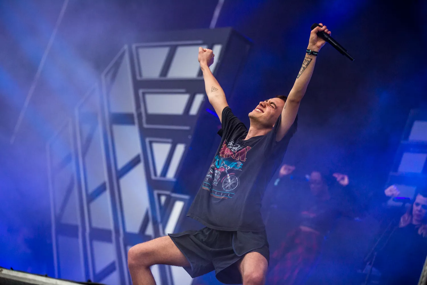 Det er en stor skare, der har fundet vej til Blå Scene klokken 20.05, da den engelske elektropoptrio Years and Years går på scenen. Gruppen har da også haft to megahits fra sidste års debutalbum ”Communion”, ”Desire” og ”King”, og i